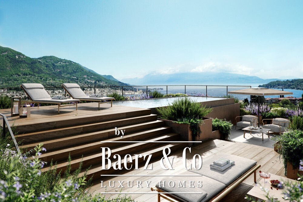 Luxury apartment Salo' Gardameer is set in a first class park-like environment along the southwest shore of Lake Garda, combining architectural excellence and natural surroundings. With 310 m² of living space, this residence offers three bedrooms and three bathrooms, featuring design by Matteo Thun and landscaped exteriors by João Nunes. The interiors are available in two exclusive lines, fully furnished, and emphasize privacy, comfort, and connection to the outdoors with balconies, gardens, or penthouse terraces that may include a private pool or whirlpool.