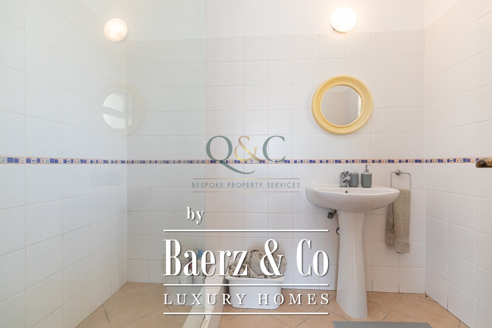 Stairs descend to a substantial games room with its own kitchen and bathroom, adaptable as a fourth bedroom or an independent apartment. Terraces, a roof level with broad vistas, mature gardens, and an expansive pool create opportunities for calm, conviviality, or discreet retreat. Features include air conditioning throughout, double glazing, barbecue, irrigation system, drive way parking, and mains water. This villa offers immediate connection to the rhythms of Algarve country life within reach of urban necessities.