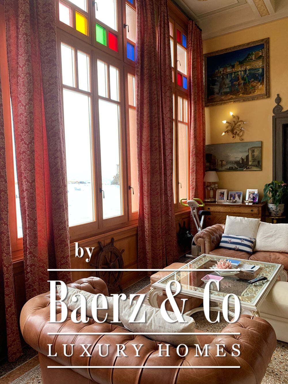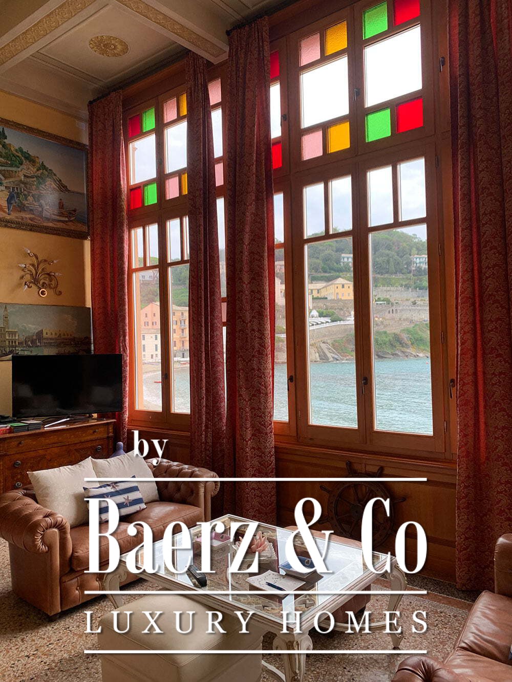 Apartment Sestri Levante offers a rare opportunity to inhabit a residence of distinguished provenance, set in the heart of Baia del Silenzio. This 250 m² apartment commands an unrivalled seafront position, the only aristocratic palace overlooking the bay, shaped by centuries of Ligurian history. Within, light fills the 80 m² living room, where nine-metre ceilings and a Genoese-style fireplace set a stately cadence. An expansive veranda of 40 m², graced by a five-metre stained glass window, frames gentle Mediterranean vistas, merging heritage with a sense of place.