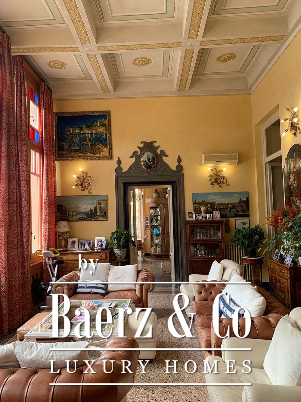 The layout balances formality and intimacy: five bedrooms and four bathrooms offer comfort and privacy for residents and guests alike. Antique but pristine furnishings and Genoese Venetian floors reflect a deliberate curation, each element reinforcing a sense of enduring quality. Two attic spaces allow for further adaptation or study, harmonising with the main living areas.