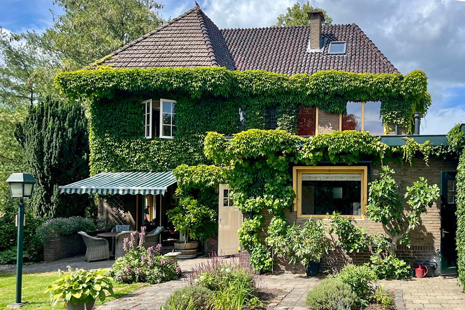 The house is surrounded by a beautiful garden. There is a wooden garage with an adjoining carport, providing space for two cars to be parked in the dry. Garden equipment can also be stored here neatly and sheltered. Due to the orientation of the house, there is a lovely sun terrace behind the property. There are cosy seating areas scattered throughout the garden. The plants are diverse, colourful and carefully chosen, making it a real treat for the senses. There are beautiful sightlines, a small flock of chickens in a cosy run and the dahlias can quietly awaken from their hibernation in the greenhouse. There are two water features and you will enjoy a great deal of privacy here thanks to the secluded location, the man-sized hedges and the mature trees.