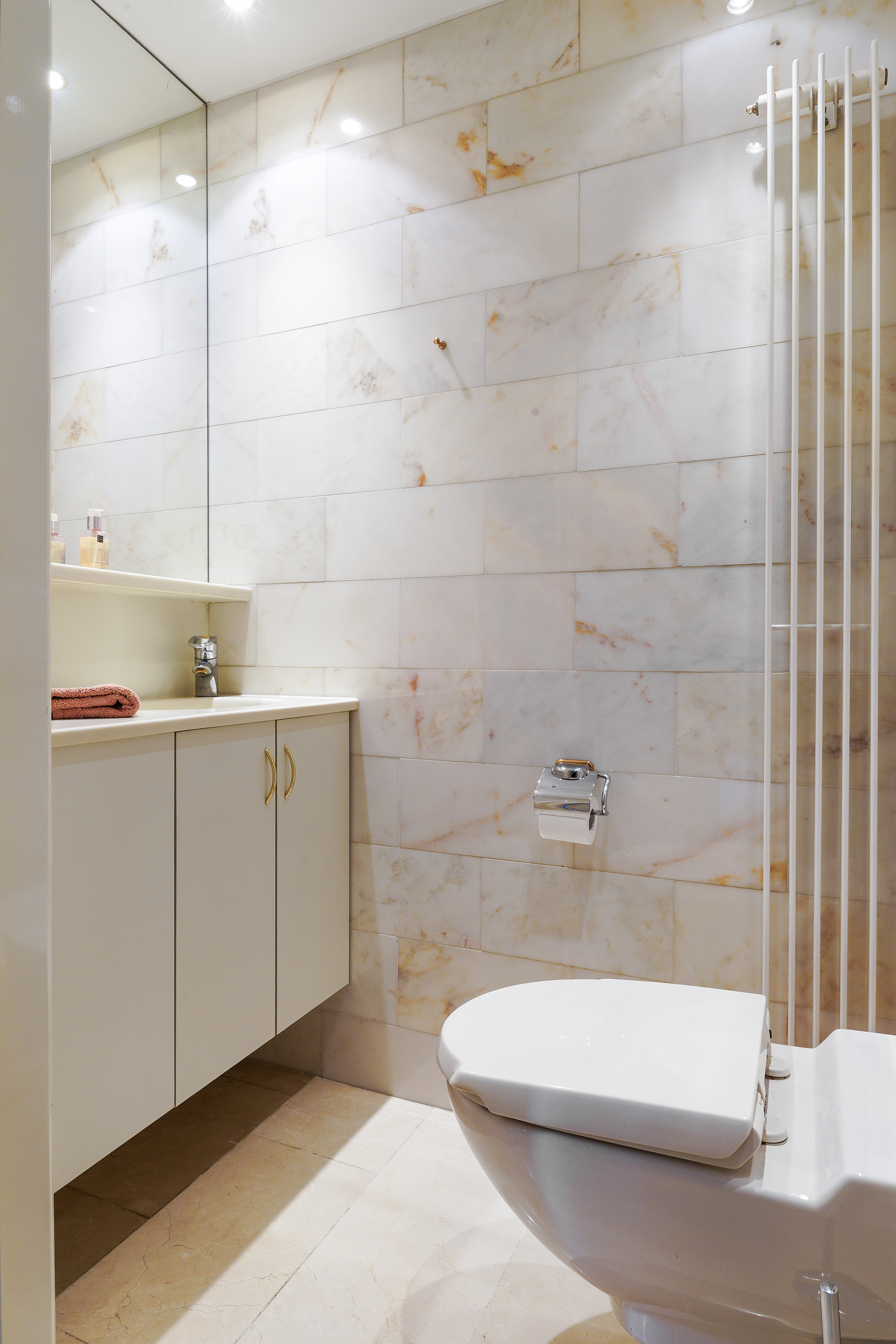 The ground floor exudes a sense of space and elegance. The expansive living area of around 70 m² is divided into a sitting room, dining area and open-plan kitchen — all seamlessly connected yet each with its own atmosphere. Large windows allow for an abundance of natural light and offer stunning views of the green surroundings. The travertine floor, light walls and ceilings create a serene and stylish foundation.