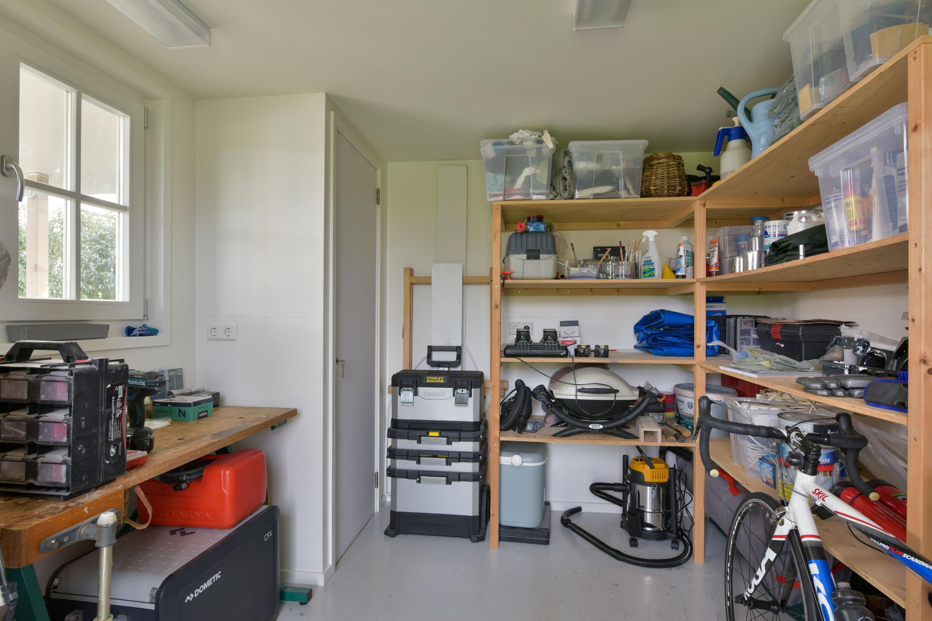 A separate laundry room with space for a washing machine and dryer, a small kitchenette, and a neatly concealed central heating system (2020) complete the ground floor. From this utility room, you have direct access to the garden.