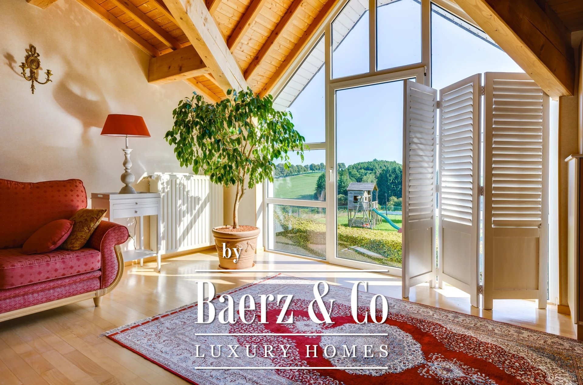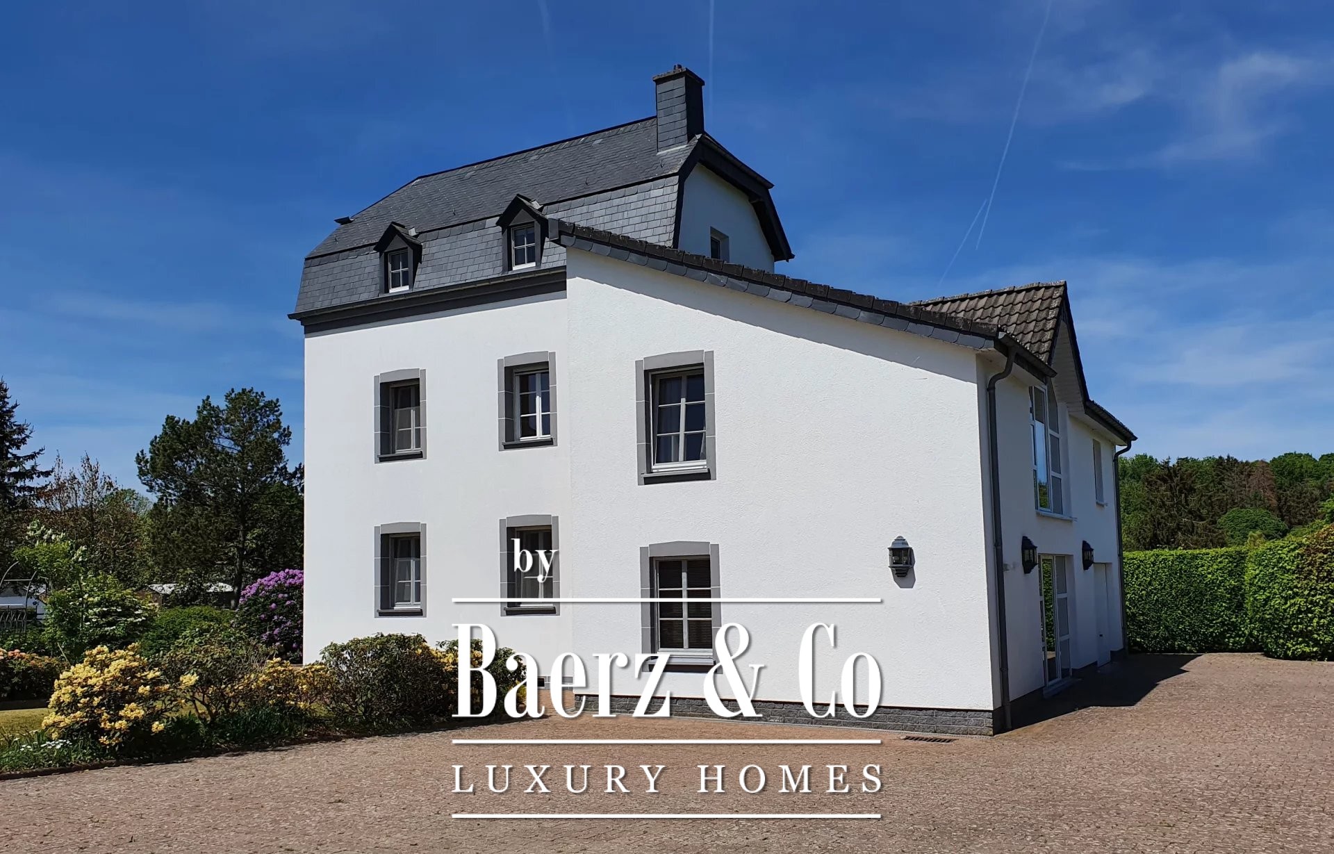 Historic house Wincrange offers an exceptional opportunity to own a property that marries nearly a century of architectural character with understated modern luxury. This renovated former post office overlooks the picturesque valley, its windows and landscaped garden framing sweeping views across forest, countryside, and private greenery.