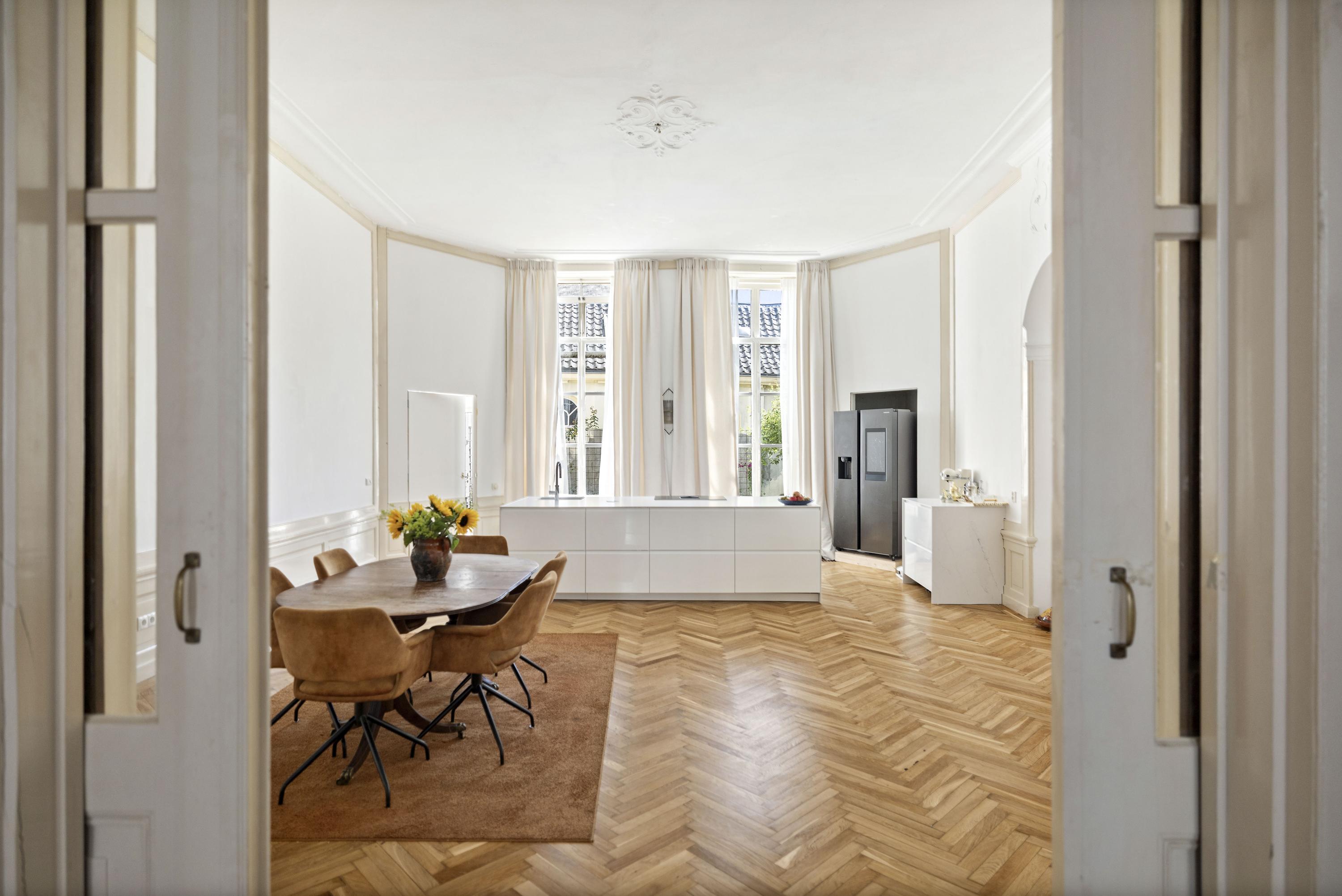 For lovers of homes with a story to tell: this eye-catching property stands proudly on the Zaadmarkt. You may recognize it from passing by, from visits to the market, or from simply wandering the charming streets of Zutphen. It’s undoubtedly a remarkable property. Does your heart skip a beat for high ceilings, floral plaster motifs, or windowsills with acanthus-leaf consoles? Are you looking for an abundance of living space for the whole family, right in the heart of the city? Then this striking and distinguished townhouse, on the corner of Bernardsteeg and Zaadmarkt, is definitely worth a visit.