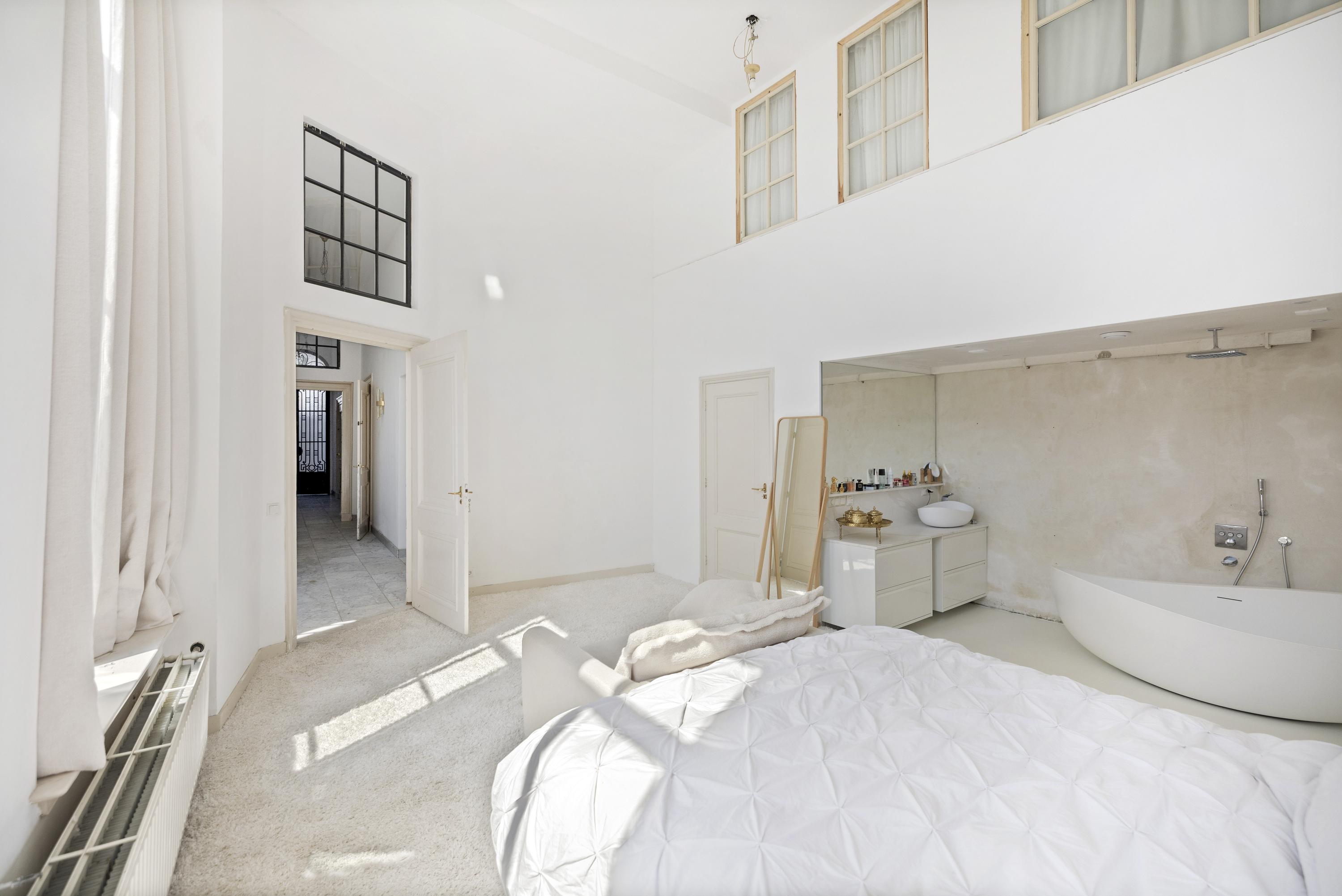 From the master bedroom, you access a mezzanine with a walk-in closet and the charming fourth bedroom, complete with built-in closets and a private bathroom with shower, WC, and sink. This room can also be reached via a private entrance from the main staircase.