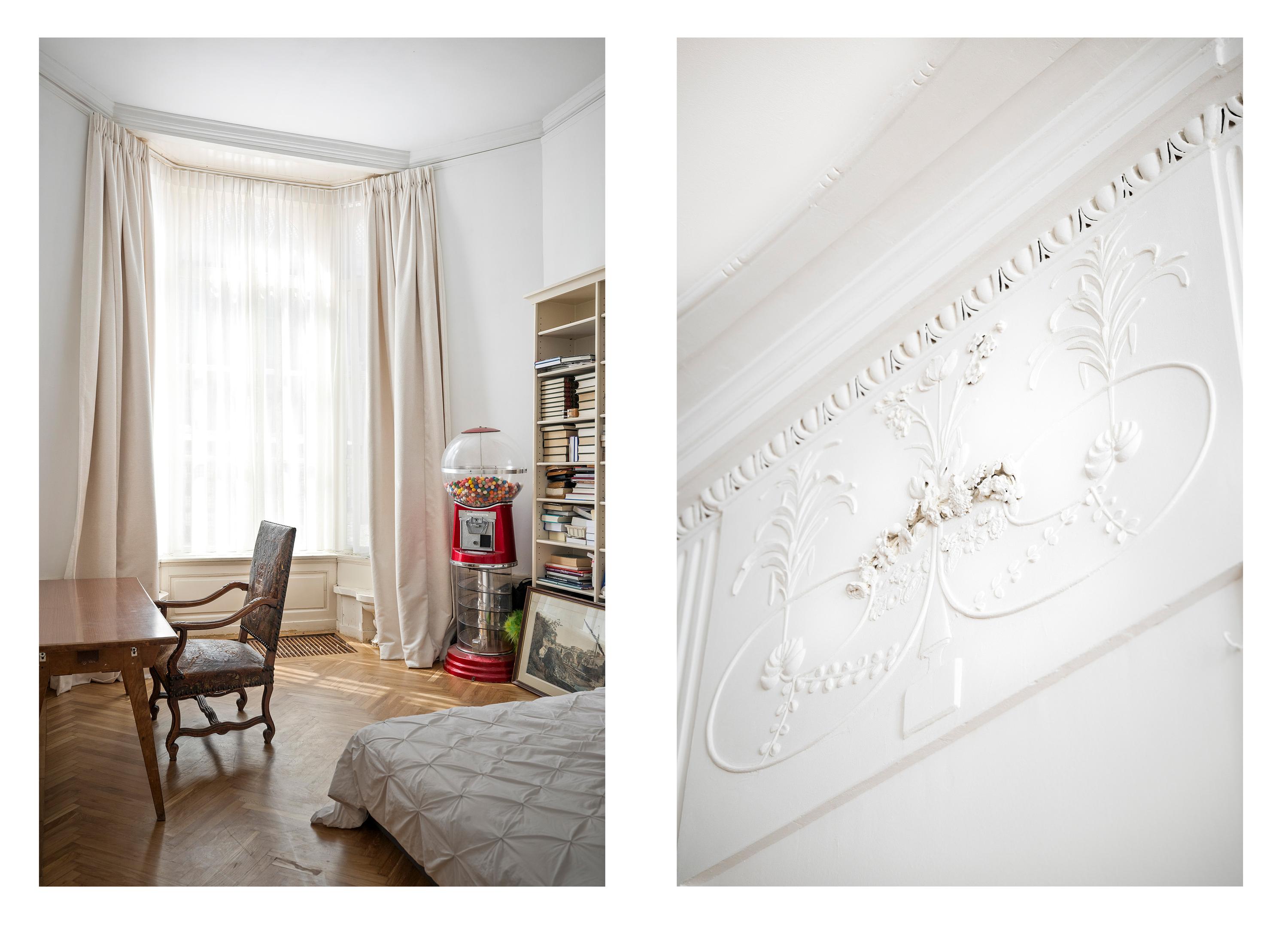 The living room itself is a spacious 43 m², with original window benches and an elegant mantelpiece.