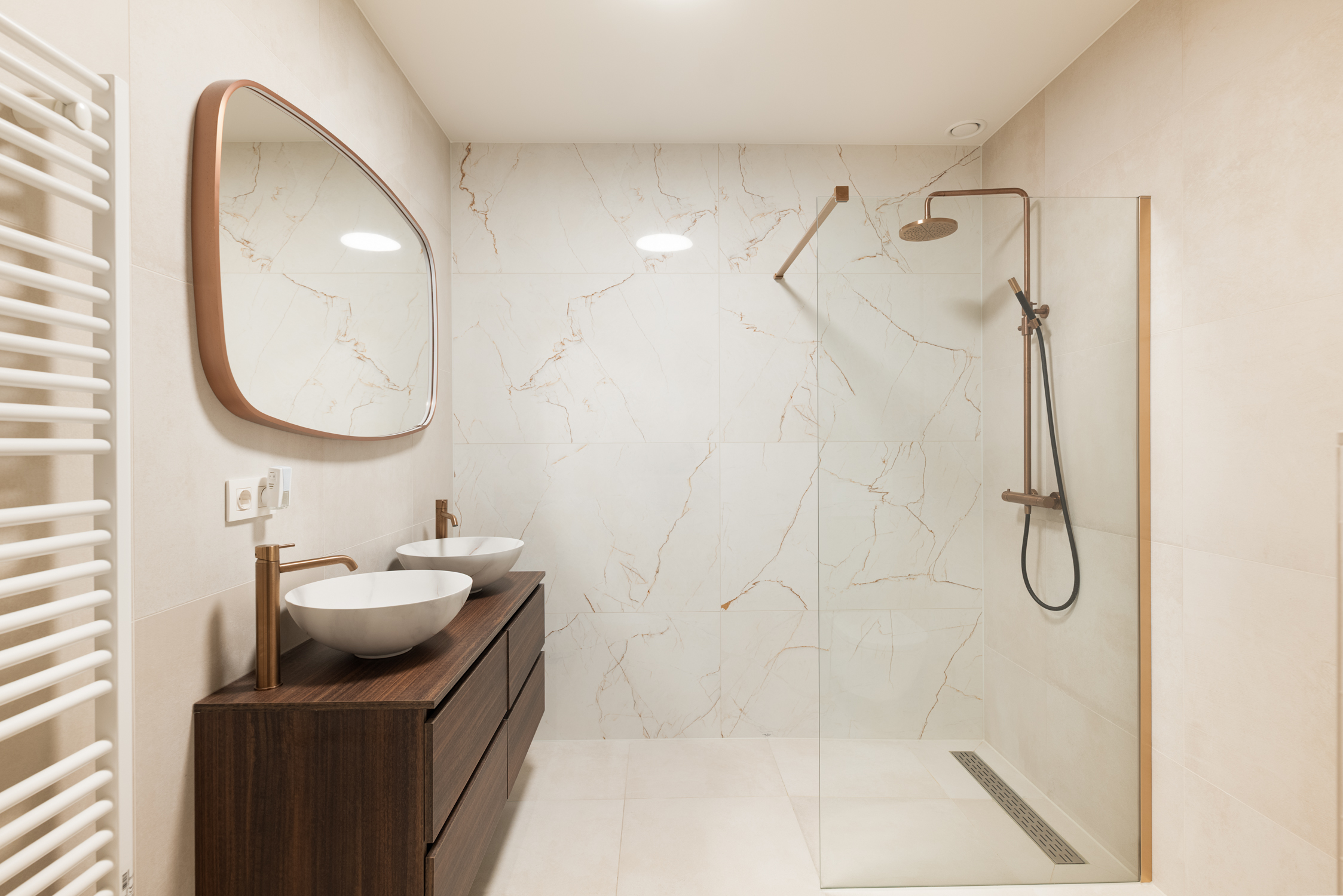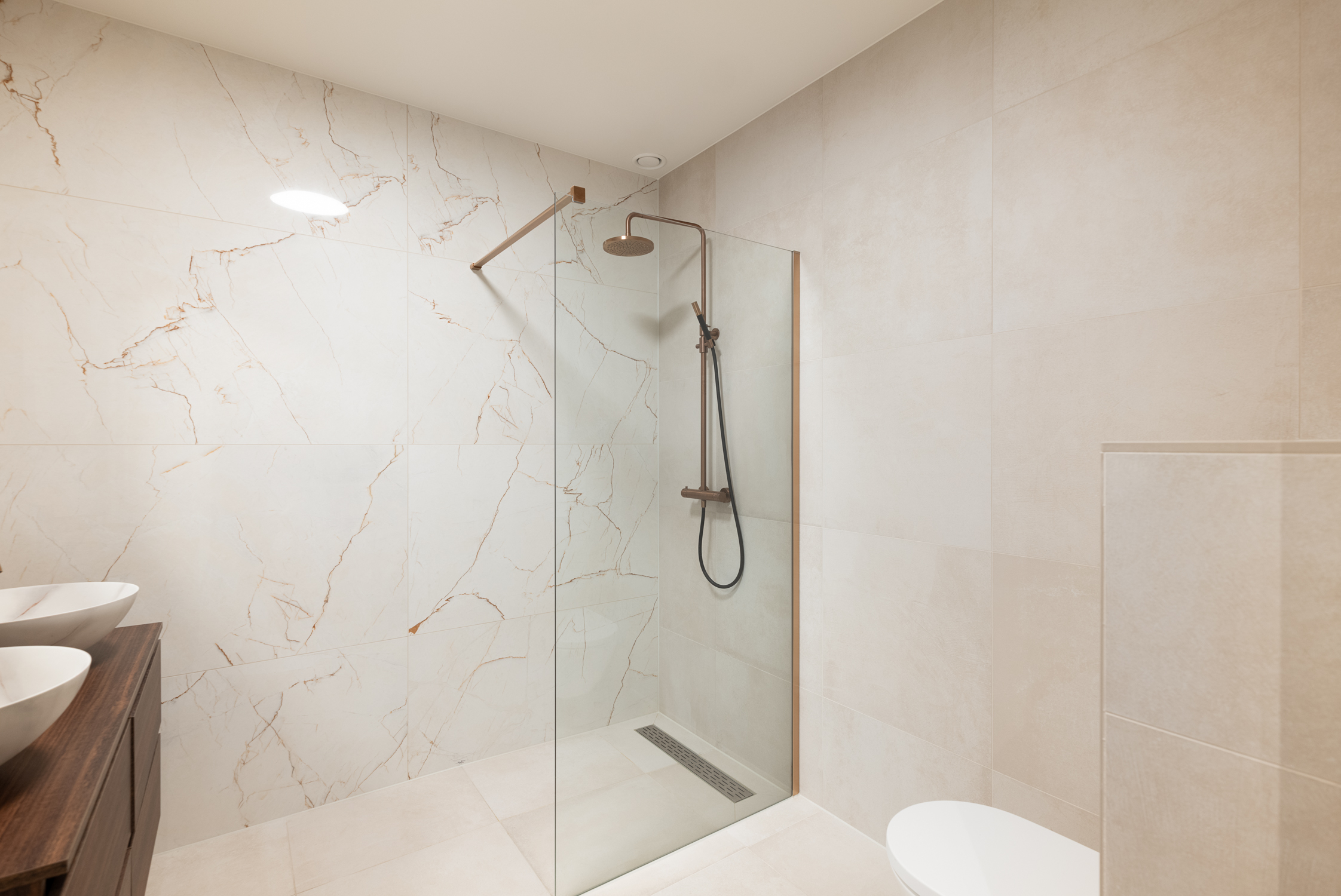 Trois chambres spacieuses accueillent notamment une suite parentale paisible avec sa propre salle de bain luxueuse. Une deuxième salle de bain, idéalement située au centre, répond aux mêmes exigences de standing. Les rangements sont généreux, avec deux celliers intérieurs et une pièce de stockage privée de 21 m² accessible depuis la résidence ou le parking souterrain, qui bénéficie de deux places de stationnement exclusives.