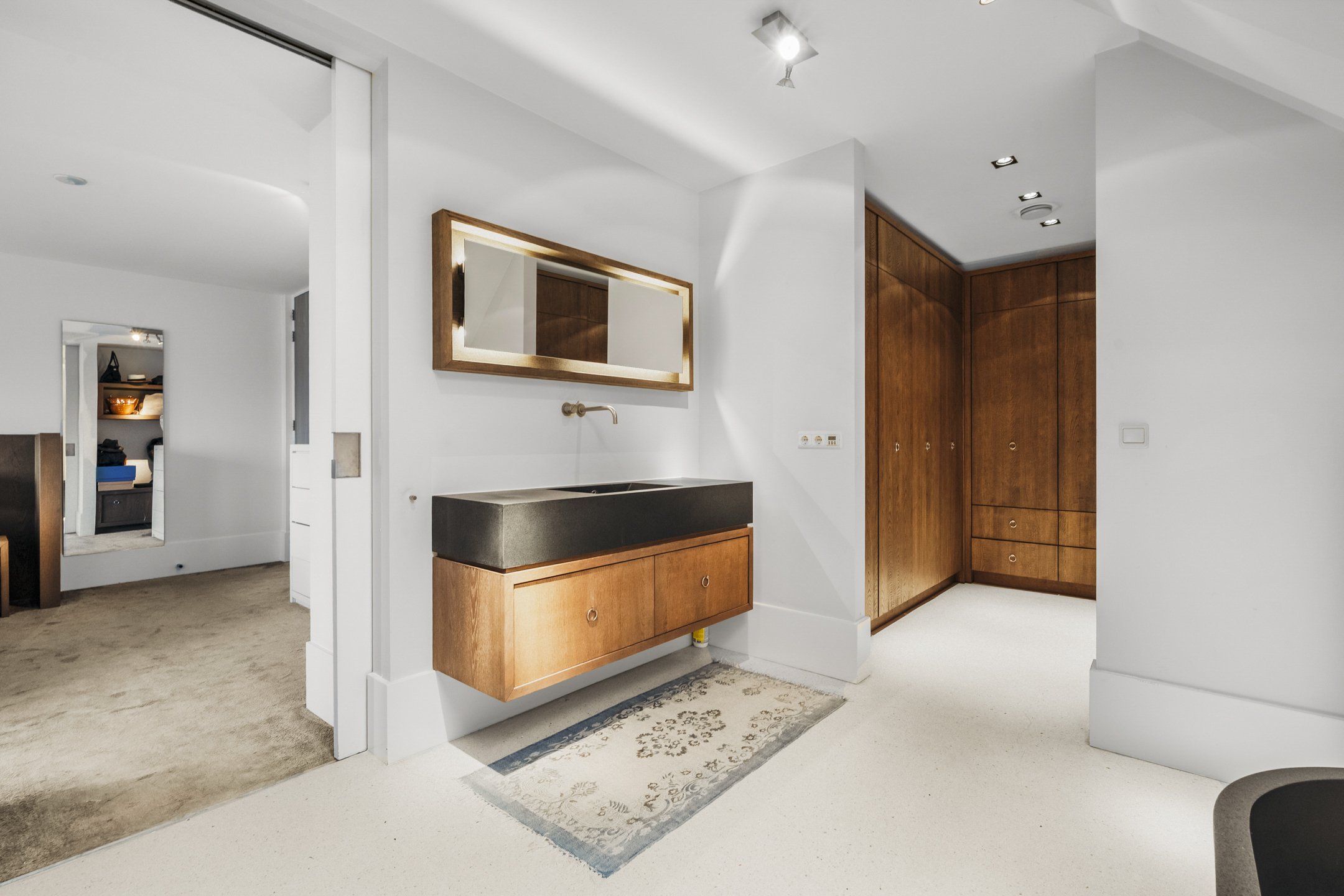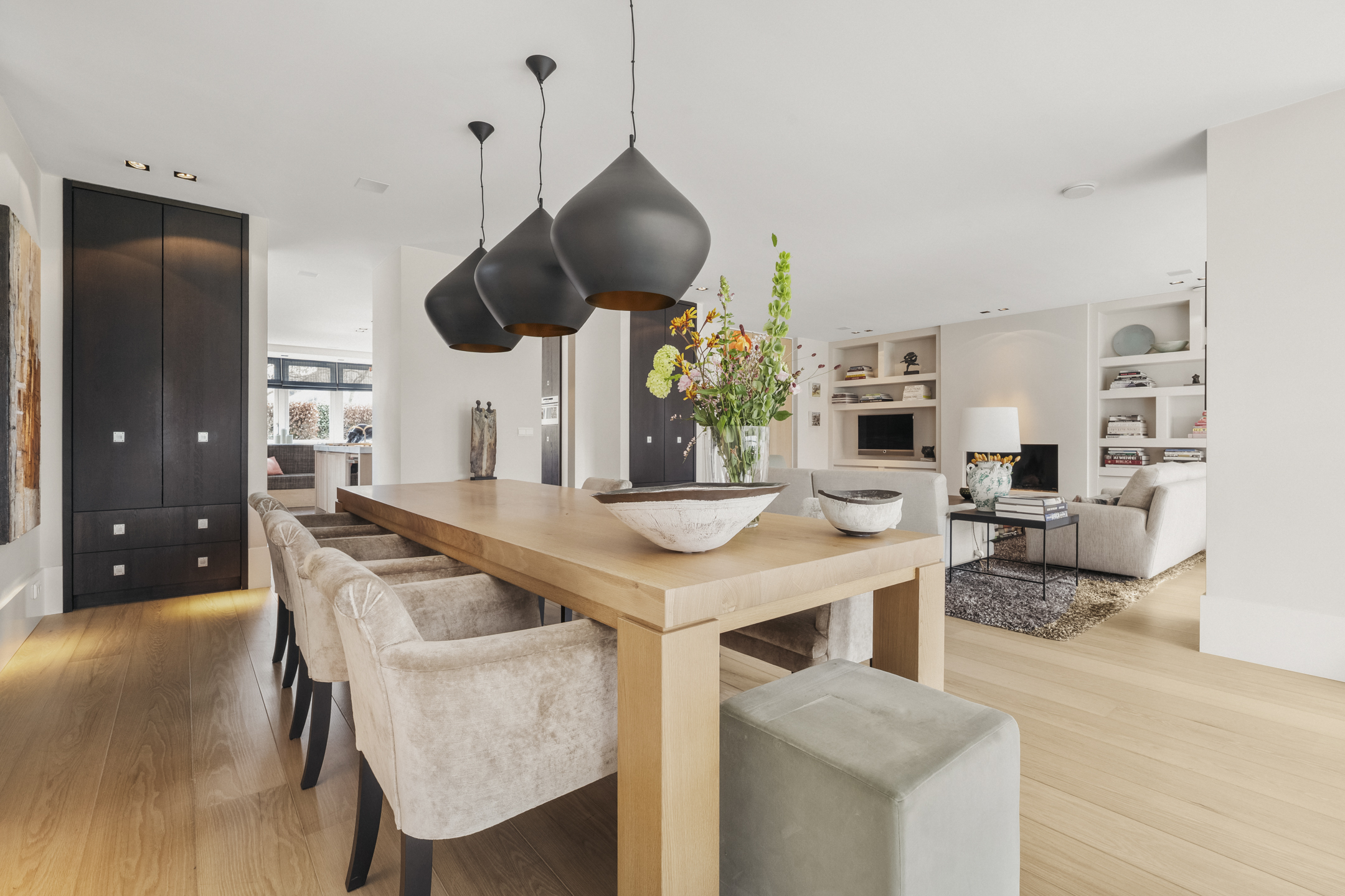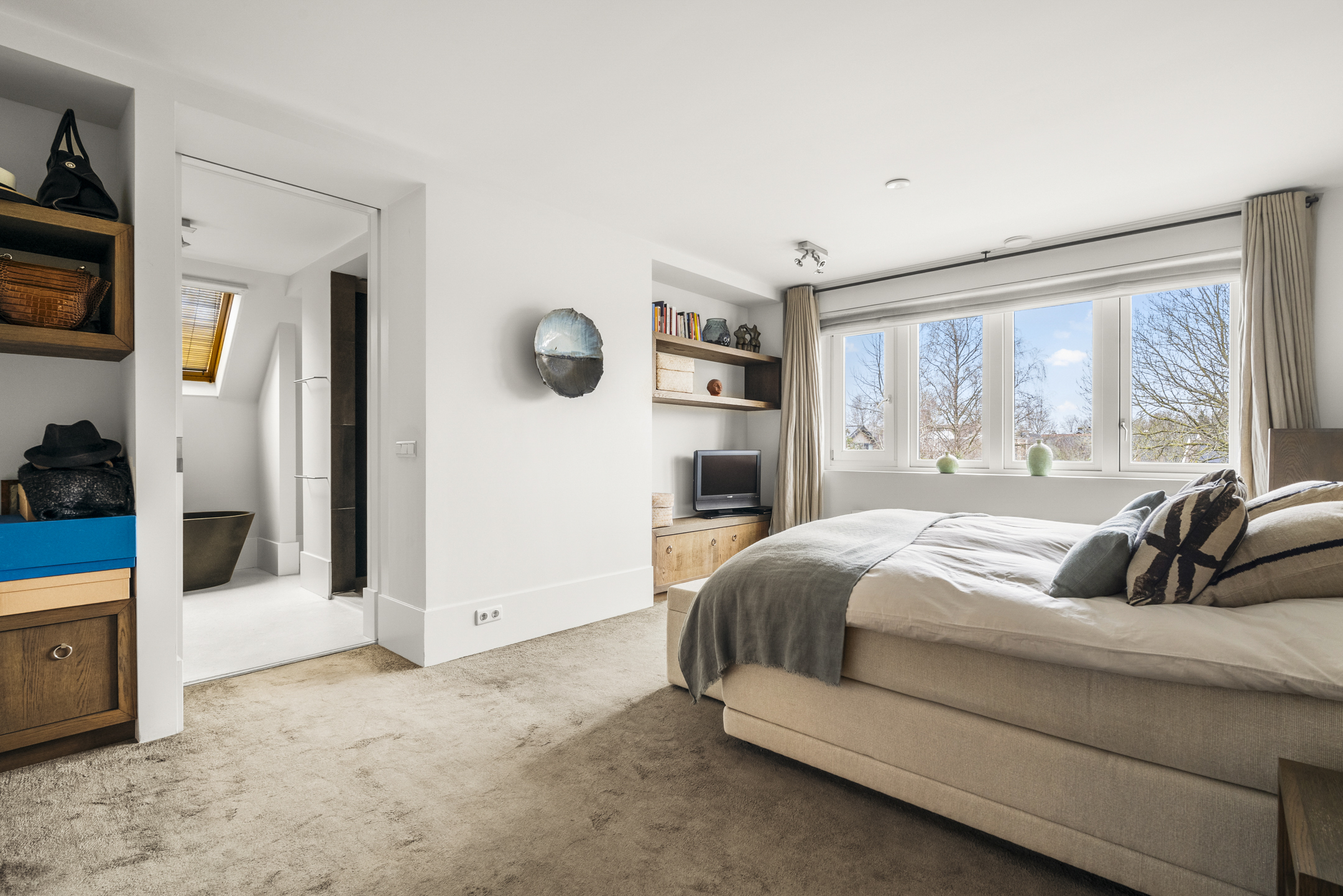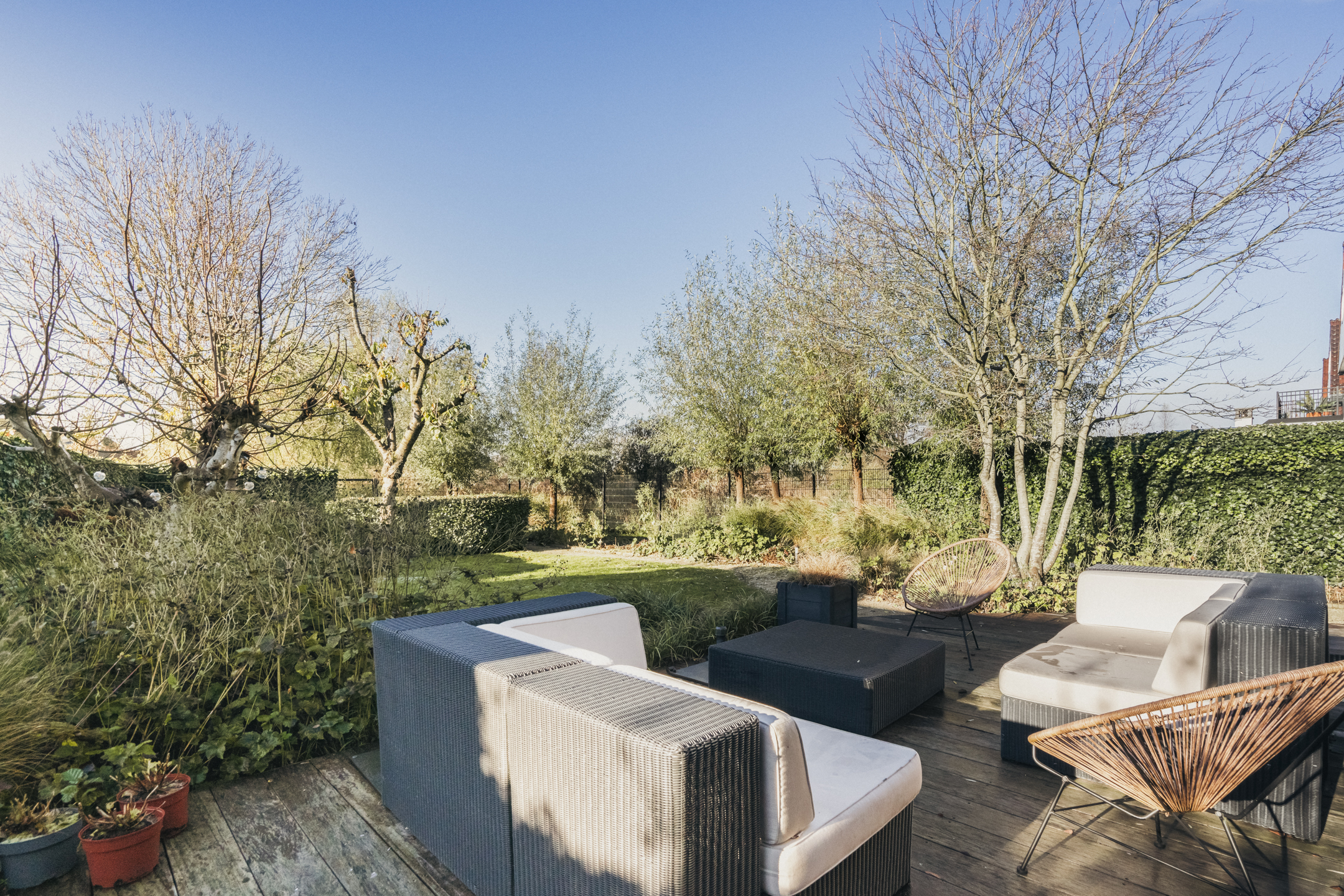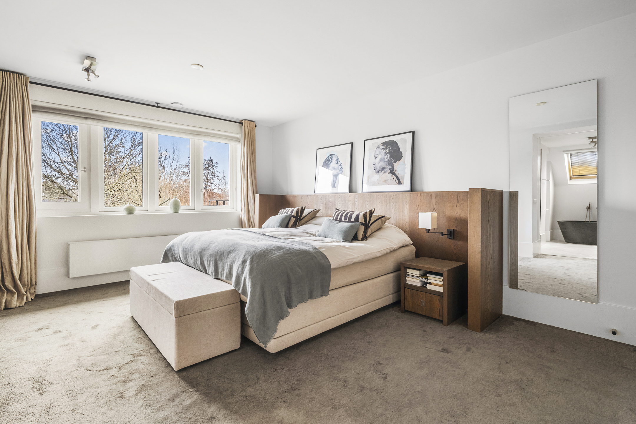Cinq chambres spacieuses se répartissent aux étages supérieurs, dont une suite parentale avec dressings sur mesure, penderie et balcon privé. Trois salles de bains, dont une avec cabine de vapeur, accueillent famille et invités, tandis qu’un grenier polyvalent et des espaces de rangement dédiés structurent harmonieusement la maison. La durabilité est omniprésente, de l’isolation aux 13 panneaux solaires et aux systèmes de chauffage modernes. La vie extérieure se vit sur la terrasse et la cuisine exposées à l’ouest, une scène privée idéale pour de longues soirées et une tranquillité rare. Face à De Poel, à proximité d’écoles internationales, de restaurants et des grands axes, cette villa indépendante d’Amstelveen se positionne comme une adresse extrêmement privée, dédiée aux amateurs de design, de confort et de valeur pérenne.