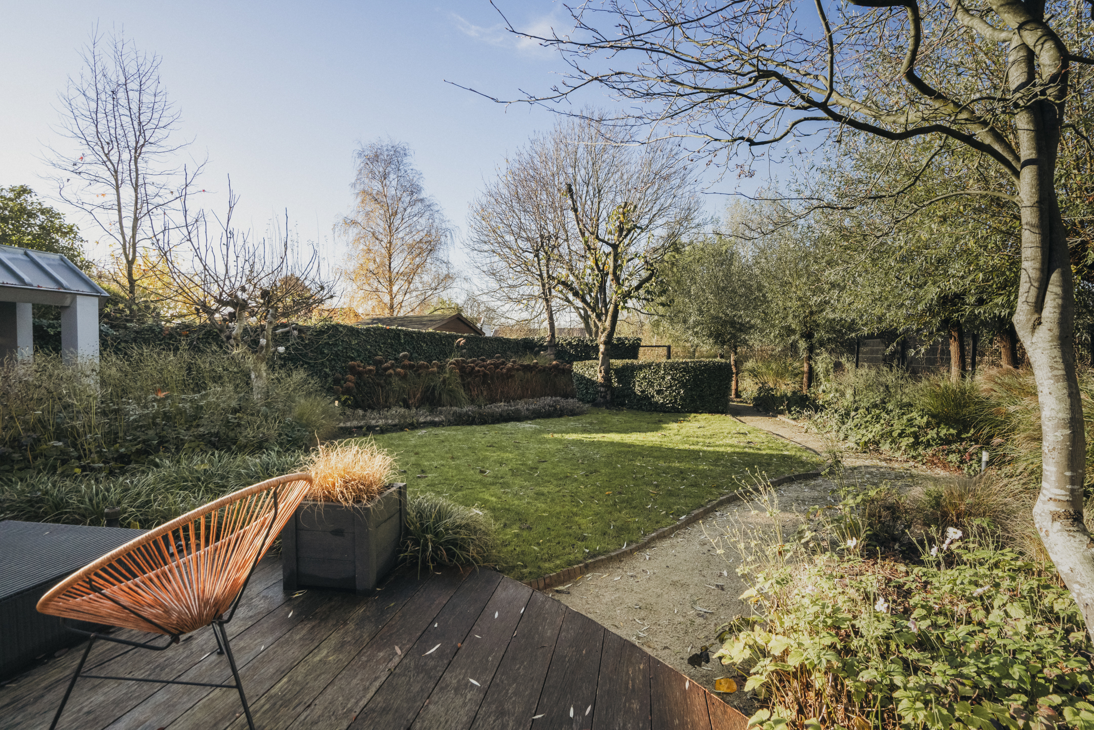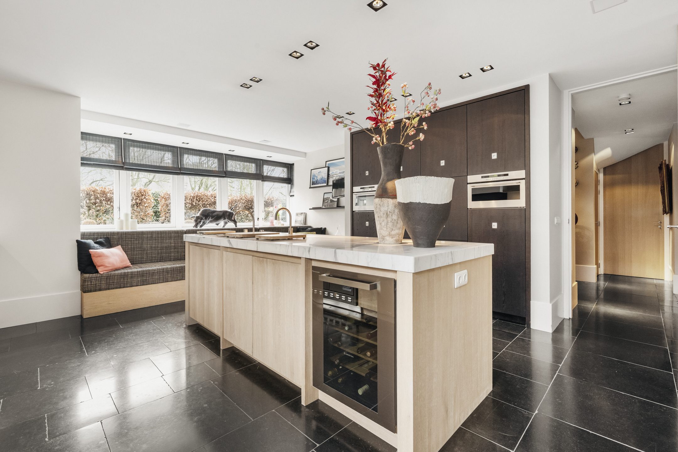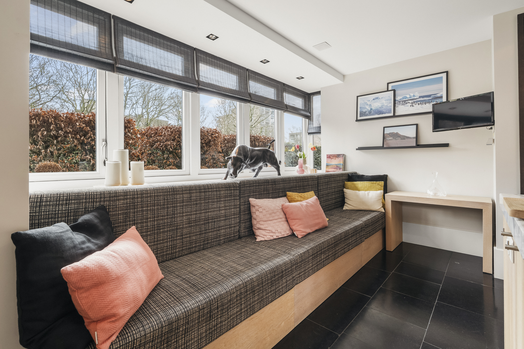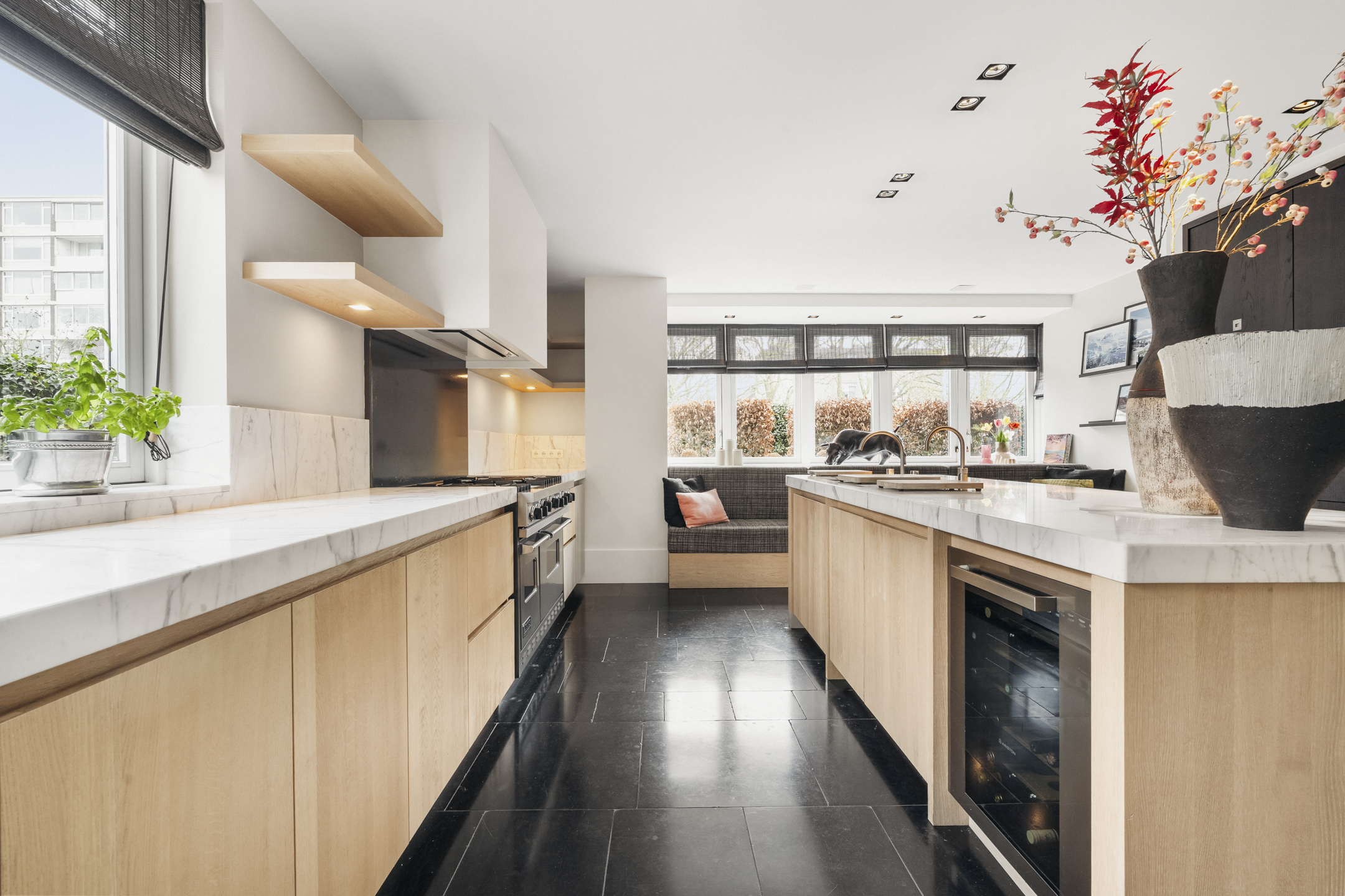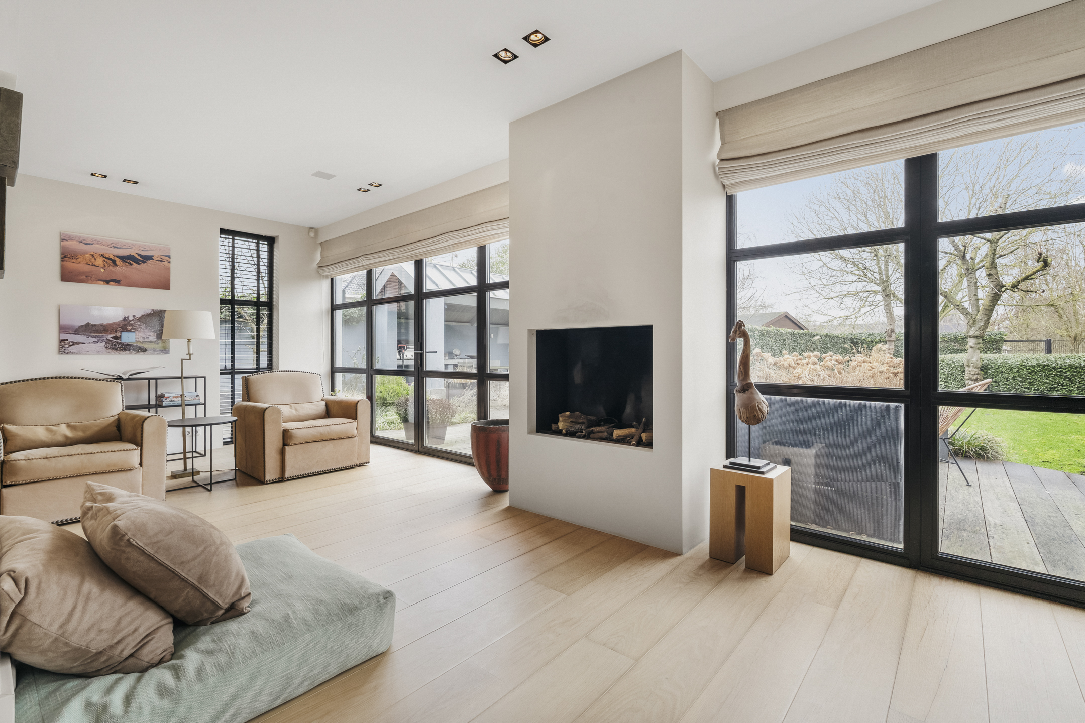 Cinq chambres spacieuses se répartissent aux étages supérieurs, dont une suite parentale avec dressings sur mesure, penderie et balcon privé. Trois salles de bains, dont une avec cabine de vapeur, accueillent famille et invités, tandis qu’un grenier polyvalent et des espaces de rangement dédiés structurent harmonieusement la maison. La durabilité est omniprésente, de l’isolation aux 13 panneaux solaires et aux systèmes de chauffage modernes. La vie extérieure se vit sur la terrasse et la cuisine exposées à l’ouest, une scène privée idéale pour de longues soirées et une tranquillité rare. Face à De Poel, à proximité d’écoles internationales, de restaurants et des grands axes, cette villa indépendante d’Amstelveen se positionne comme une adresse extrêmement privée, dédiée aux amateurs de design, de confort et de valeur pérenne.