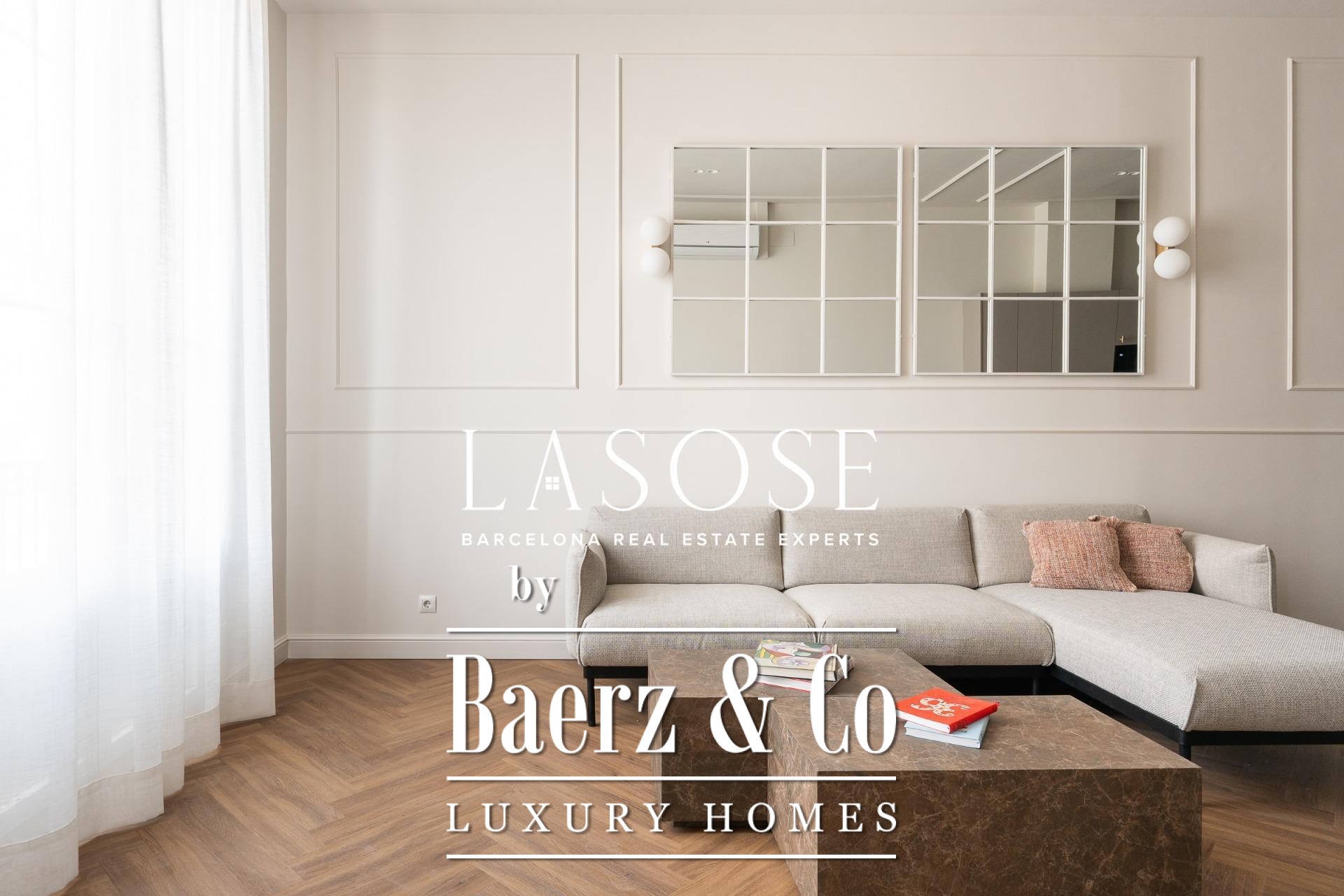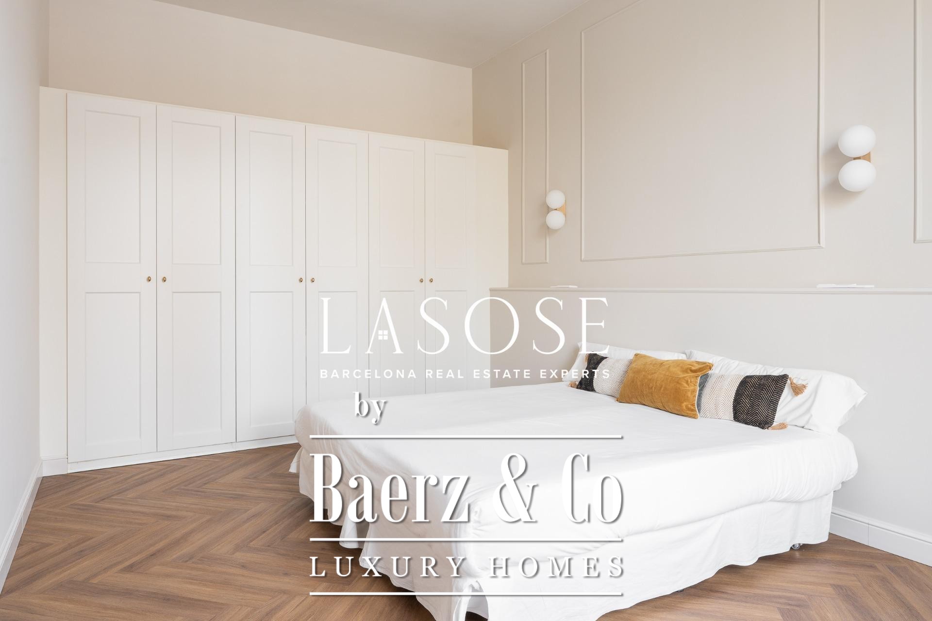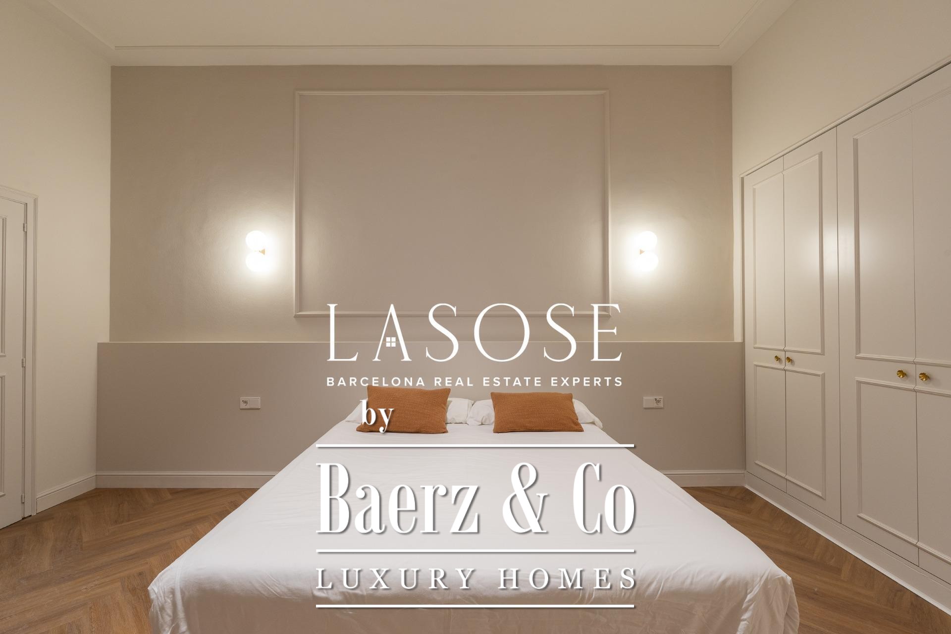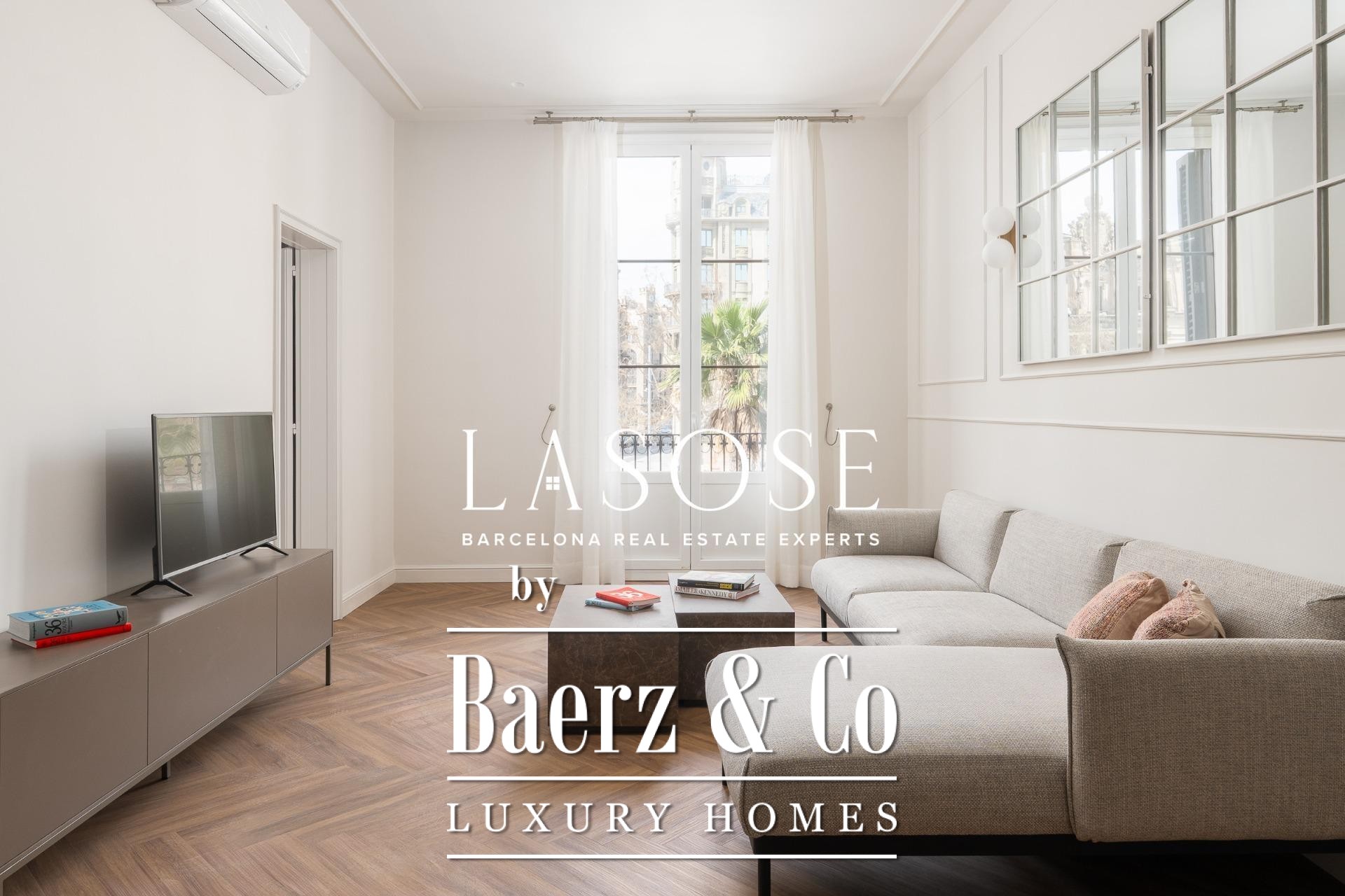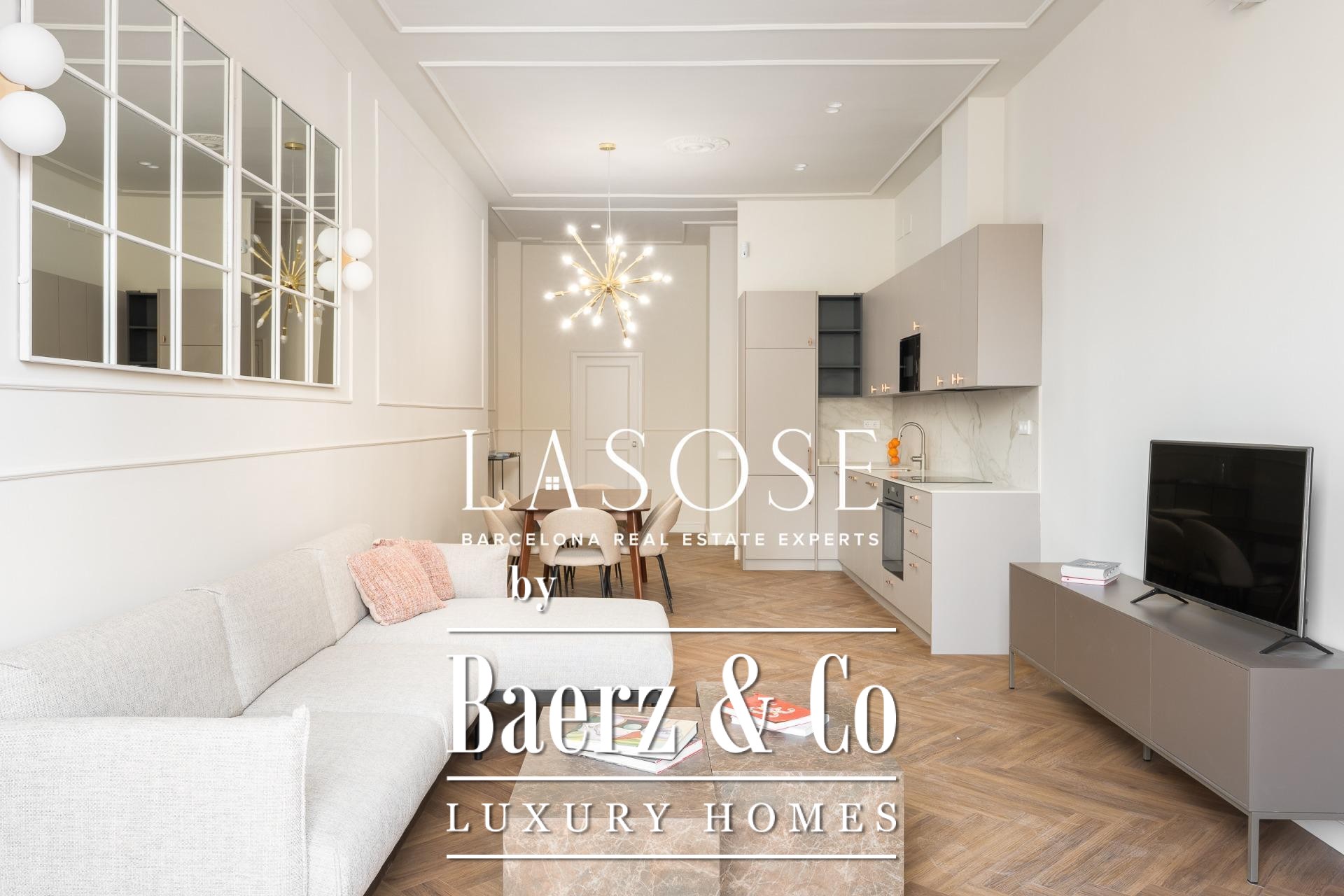 L'appartement à Barcelone se réinvente dans cette résidence exceptionnelle de 118 m², résultat d'une rénovation minutieuse au sein d'un immeuble historique de 1850, aujourd'hui classé au Patrimoine Local. Ce bien réalise une harmonie rare entre le caractère architectural préservé et les standards du luxe contemporain. Dès l'entrée, un sentiment d'espace et de raffinement vous accueille, avec un séjour et une salle à manger ouverts, baignés de lumière naturelle par de généreuses fenêtres donnant sur le Paseo Isabel II. Le mobilier de créateur et les finitions haut de gamme subliment chaque instant passé ici.