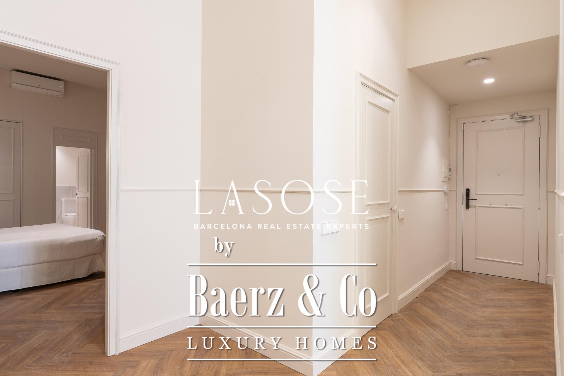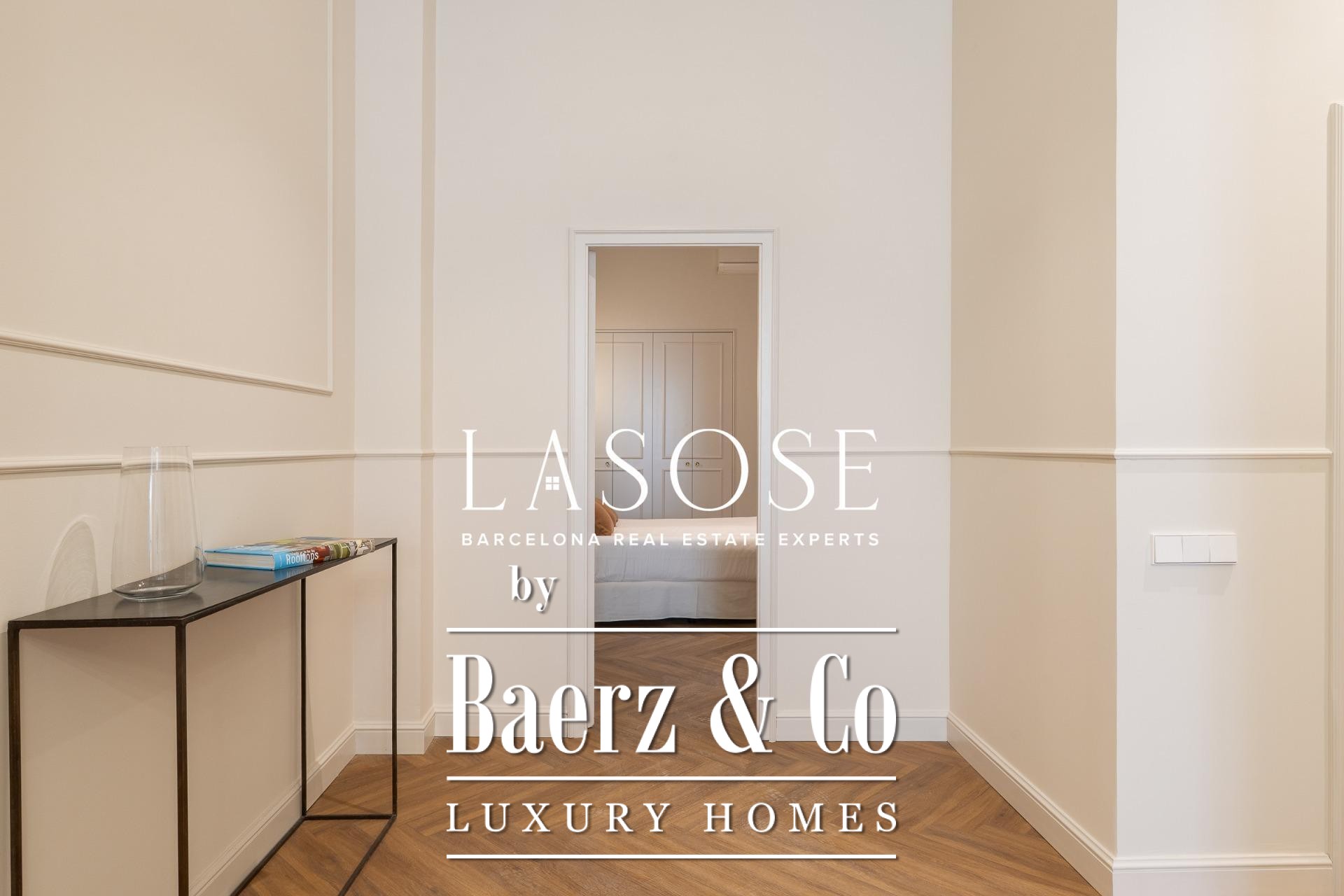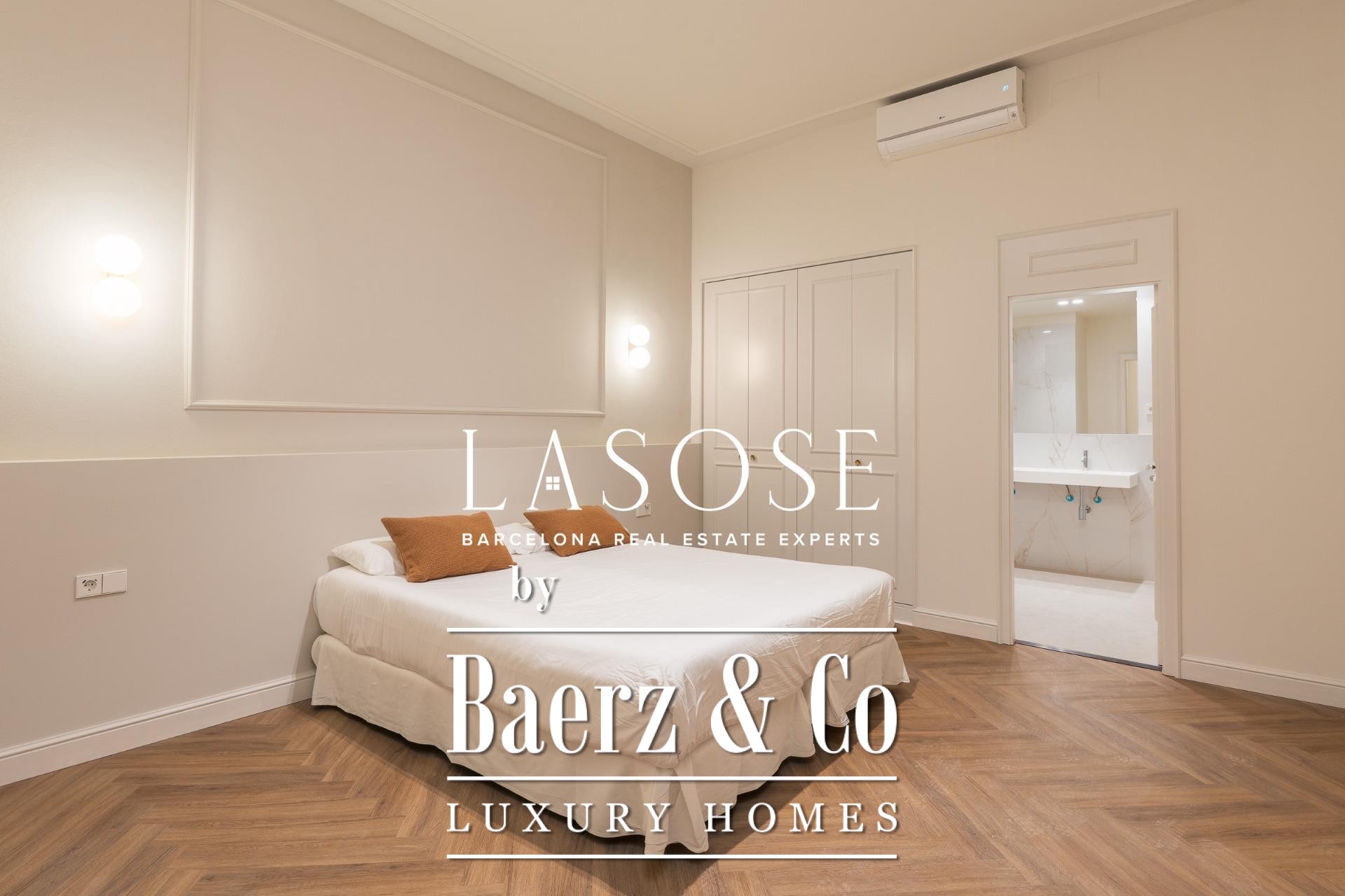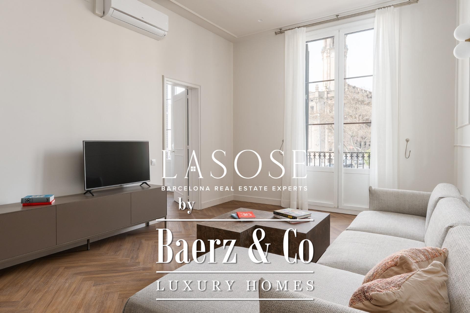 L'appartement à Barcelone se réinvente dans cette résidence exceptionnelle de 118 m², résultat d'une rénovation minutieuse au sein d'un immeuble historique de 1850, aujourd'hui classé au Patrimoine Local. Ce bien réalise une harmonie rare entre le caractère architectural préservé et les standards du luxe contemporain. Dès l'entrée, un sentiment d'espace et de raffinement vous accueille, avec un séjour et une salle à manger ouverts, baignés de lumière naturelle par de généreuses fenêtres donnant sur le Paseo Isabel II. Le mobilier de créateur et les finitions haut de gamme subliment chaque instant passé ici.