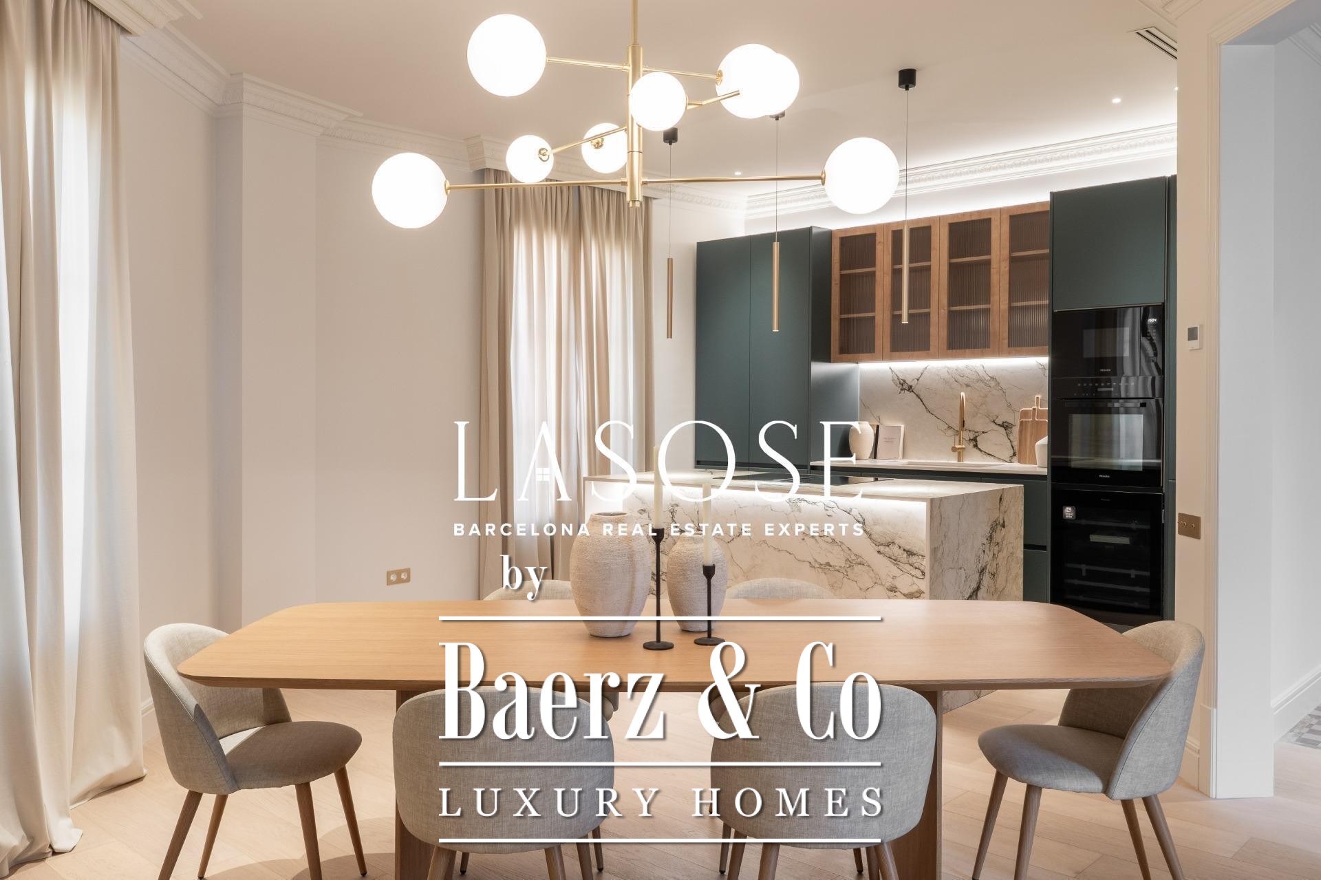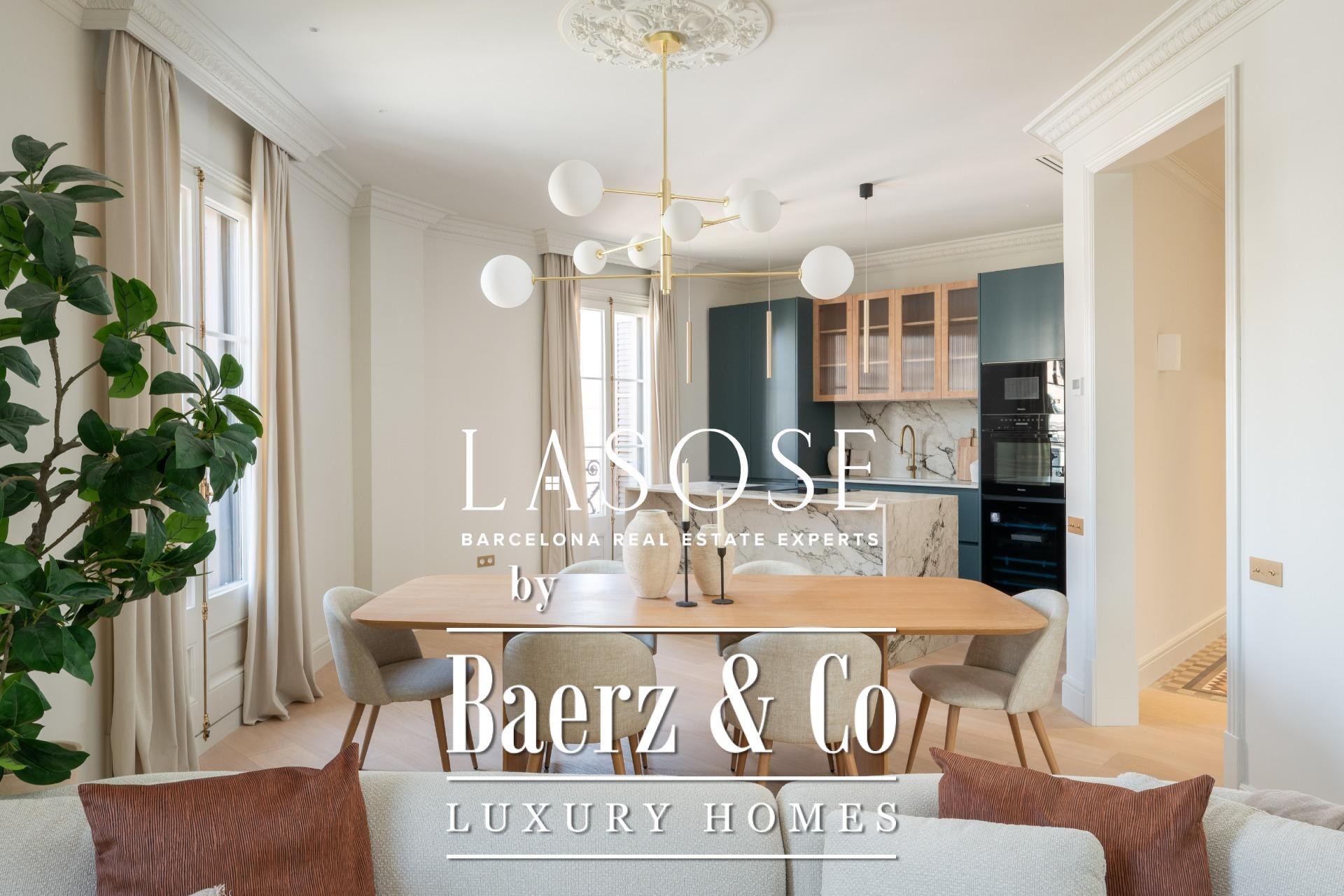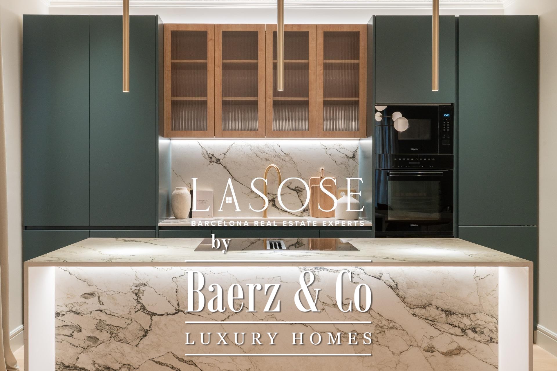 Le penthouse a fait l’objet d’une rénovation intégrale avec des matériaux haut de gamme, tout en préservant certains éléments d’origine tels que les sols en carreaux hydrauliques et les menuiseries en bois. L’intérieur se compose de trois chambres doubles, dont deux en suite, ainsi que de trois salles de bains complètes. L’espace salon-salle à manger spacieux s’ouvre sur une cuisine design de type américaine avec îlot central, appareils Miele et Liebherr, plans de travail Neolith et meubles laqués. Balcons, cellier et buanderie indépendante ajoutent au confort du quotidien. L’immeuble propose également un ascenseur et un service de conciergerie, soulignant l’engagement envers le confort et la sécurité.