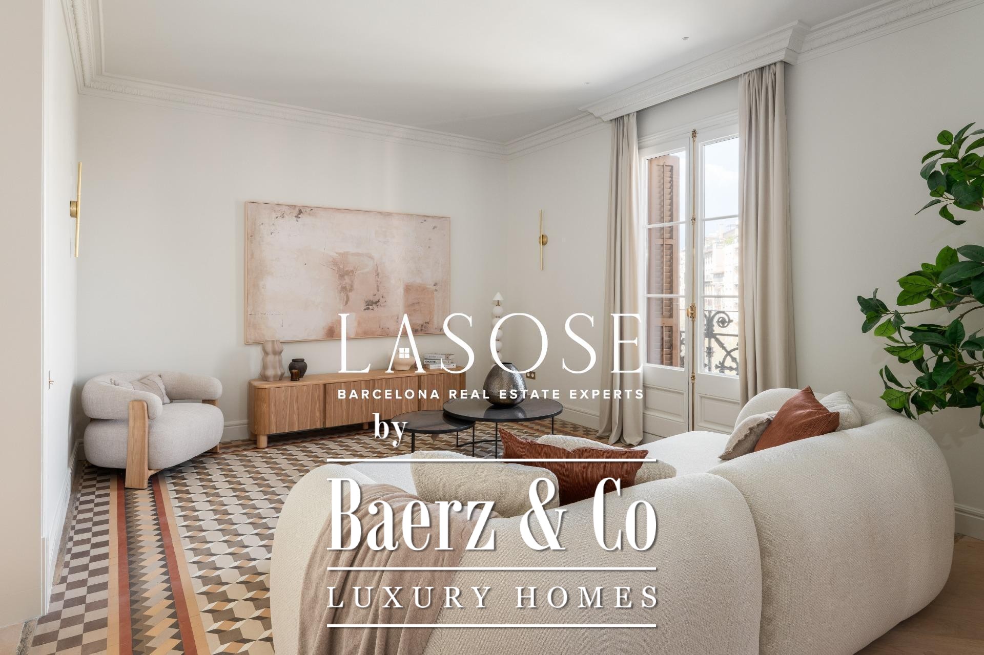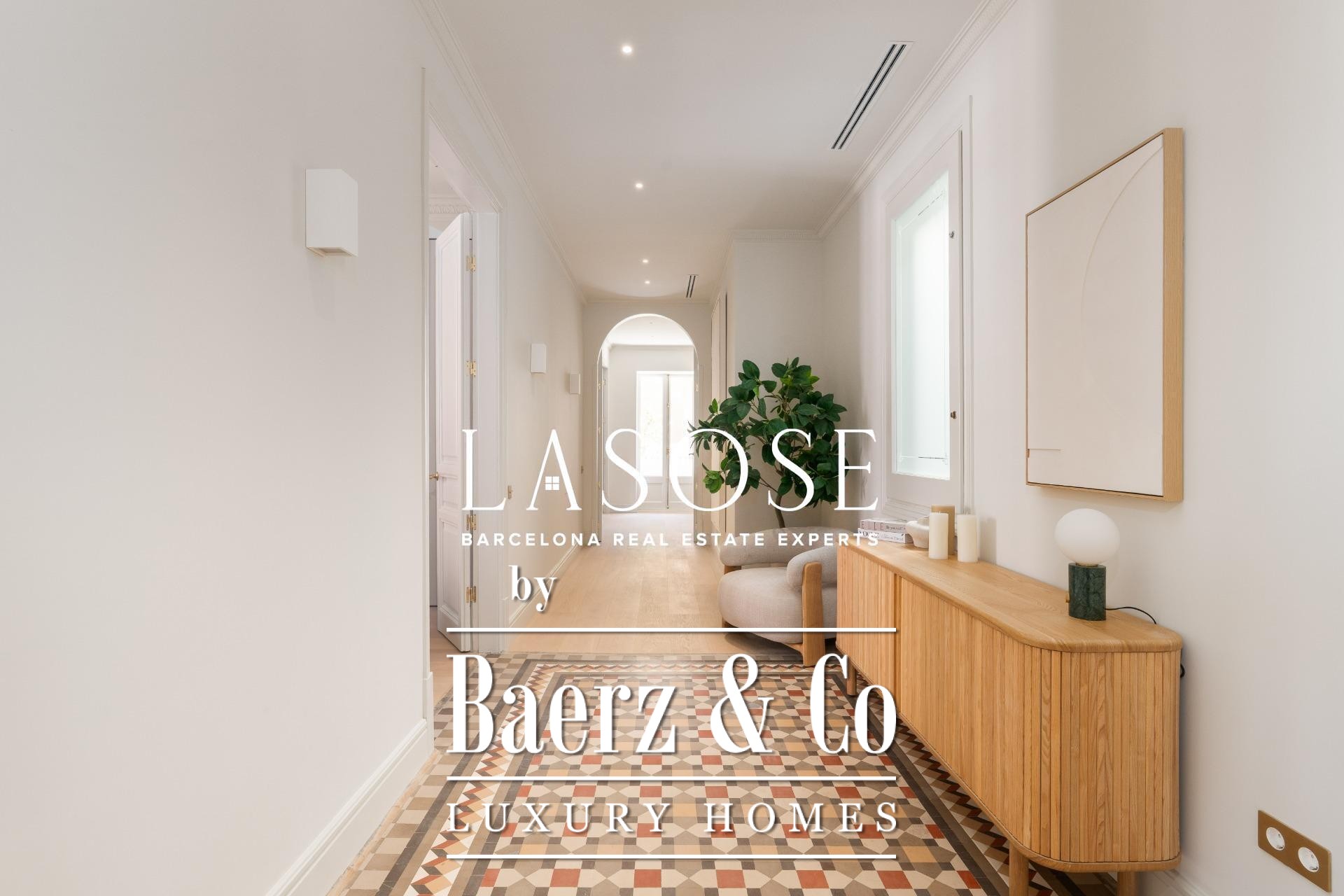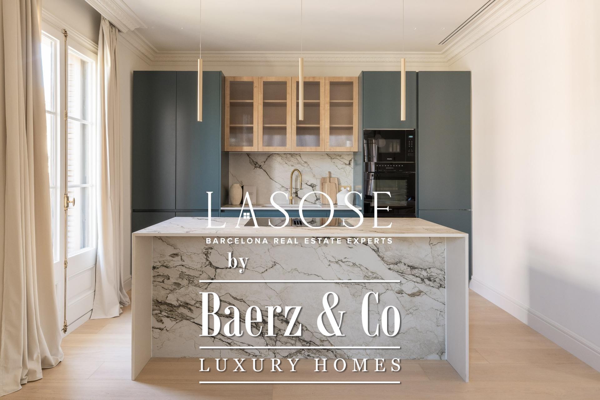 Le penthouse a fait l’objet d’une rénovation intégrale avec des matériaux haut de gamme, tout en préservant certains éléments d’origine tels que les sols en carreaux hydrauliques et les menuiseries en bois. L’intérieur se compose de trois chambres doubles, dont deux en suite, ainsi que de trois salles de bains complètes. L’espace salon-salle à manger spacieux s’ouvre sur une cuisine design de type américaine avec îlot central, appareils Miele et Liebherr, plans de travail Neolith et meubles laqués. Balcons, cellier et buanderie indépendante ajoutent au confort du quotidien. L’immeuble propose également un ascenseur et un service de conciergerie, soulignant l’engagement envers le confort et la sécurité.