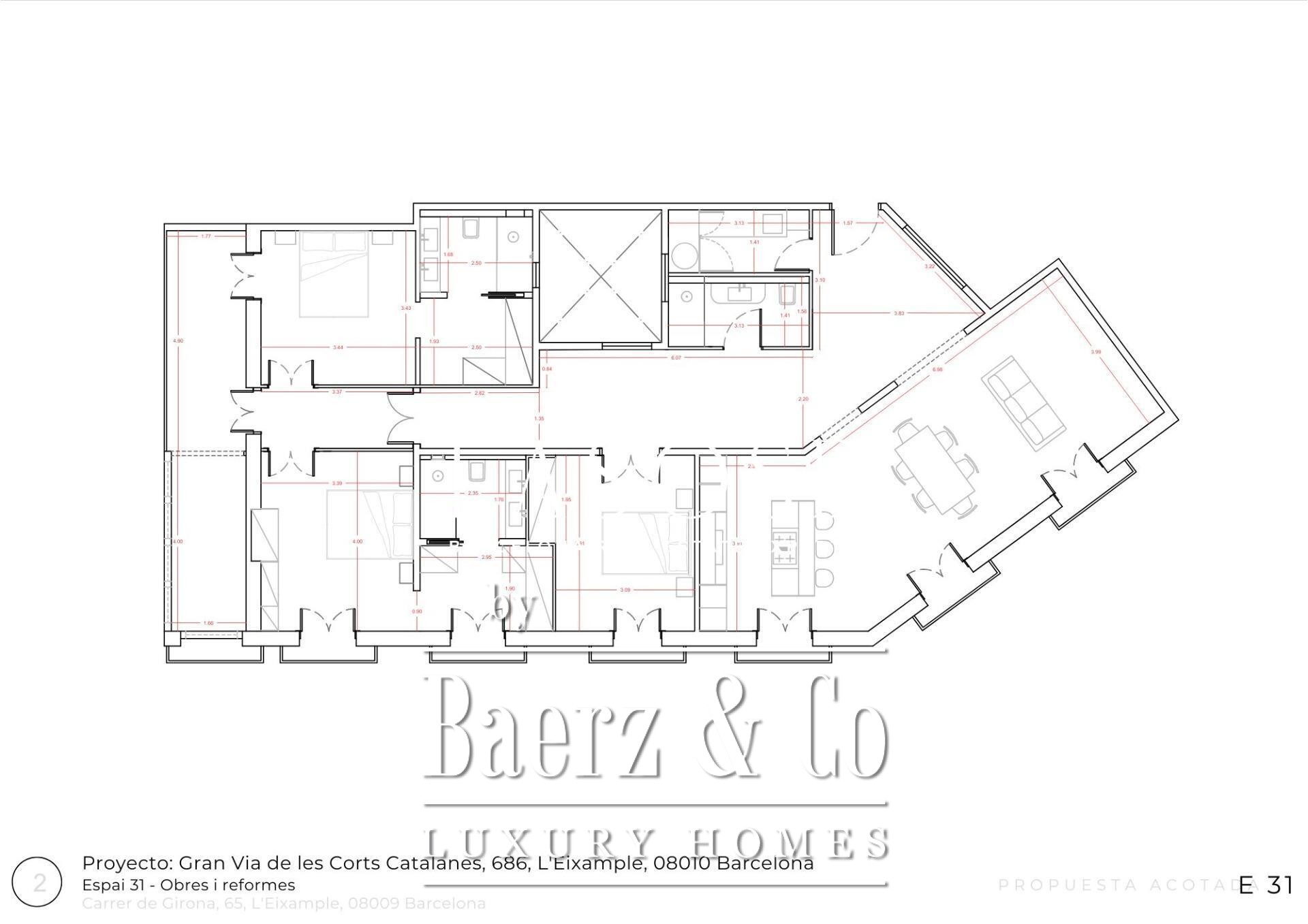 Le penthouse Barcelona Quadrat d'Or s’élève à l’angle prisé de la Calle Girona et de la Gran Via de les Corts Catalanes, offrant 201 m² de vie raffinée agrémentés d’une terrasse de 20 m². Cette résidence allie histoire et design contemporain, à quelques pas du Passeig de Gràcia et de la Plaça Catalunya. Entouré d’hôtels, de théâtres, de restaurants, d’écoles, de boutiques exclusives et parfaitement desservi par les transports en commun, vous êtes ici au cœur du mythique Quadrat d'Or de Barcelone.