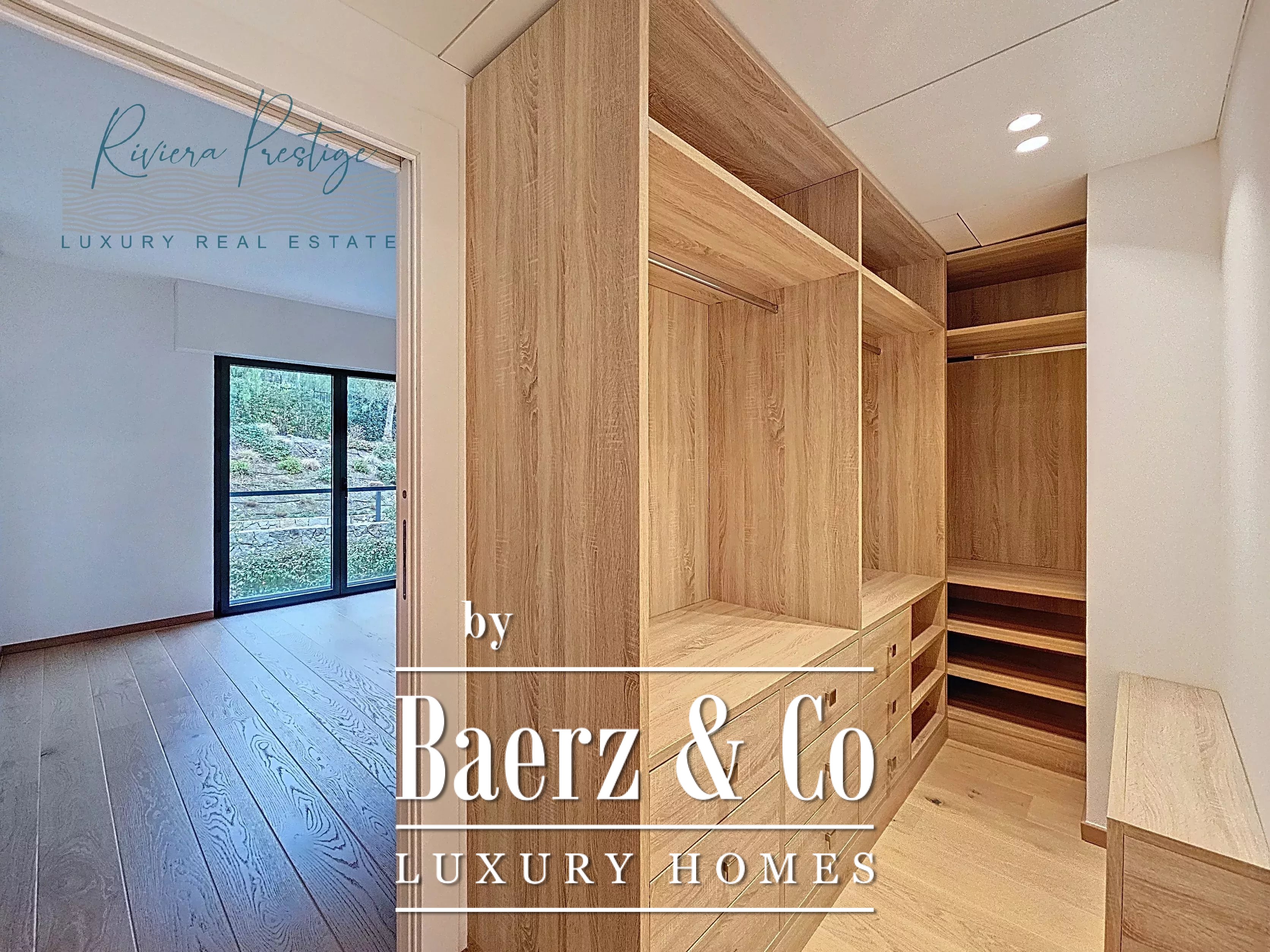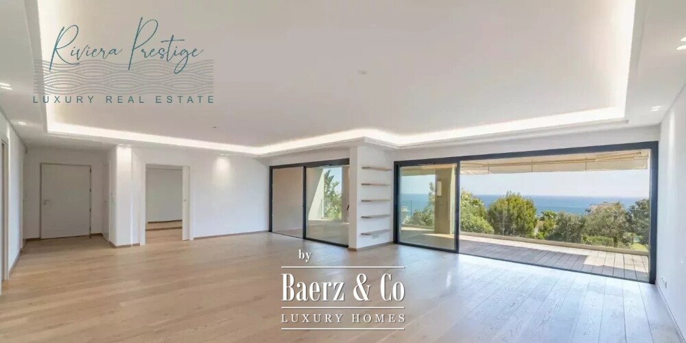 Une large terrasse plein sud d’environ 50 m² relie l’intérieur à l’immensité de la mer, inondant le double séjour de lumière naturelle. La sobriété des lignes et l'équilibre des proportions distinguent chaque espace, depuis l’entrée, la vaste zone de réception de 57 m², jusqu’à la cuisine séparée entièrement équipée et une buanderie fonctionnelle.