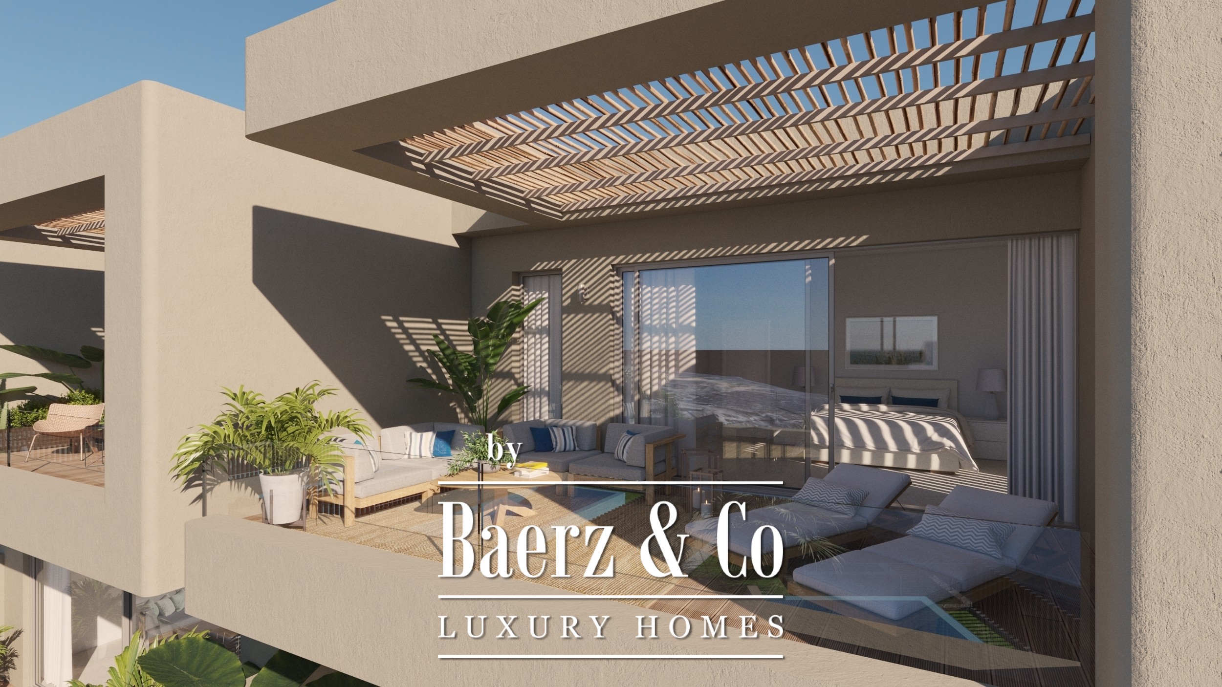 A l’intérieur, une chambre parentale avec salle de bain attenante, un WC invités, une buanderie et une pièce de rangement viennent renforcer le confort au quotidien. Deux places de parking assurent sécurité et praticité. Situé au sein d’une collection de 41 résidences de luxe, ce penthouse préserve l’intimité, tandis que les espaces verts et aires de jeux à proximité offrent une délicate connexion à la nature. Les panoramas marins subliment le décor, bercés par la lumière et le bruit des vagues. Un nouveau golf est en projet juste au-dessus de la résidence, annonçant de belles perspectives de vie à venir.