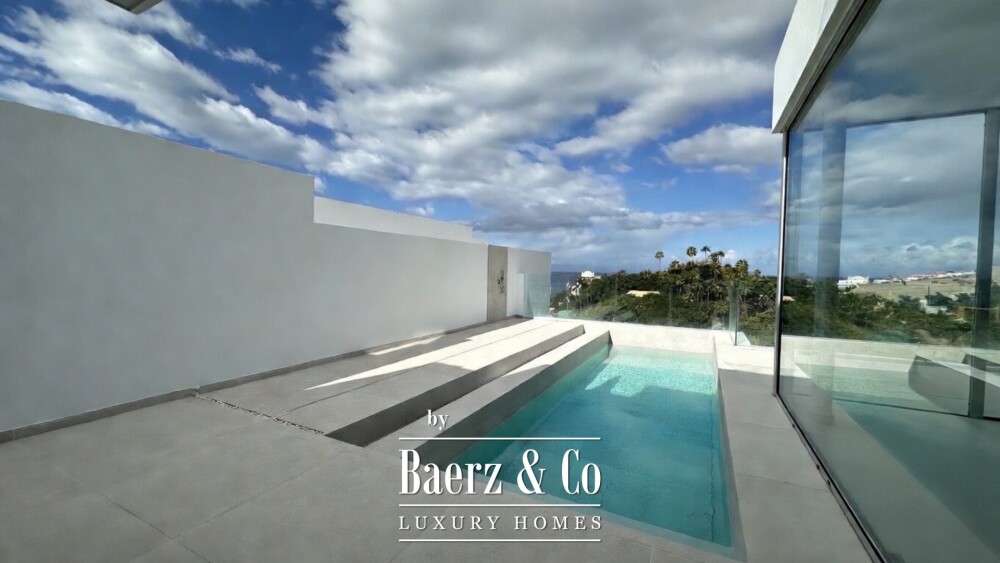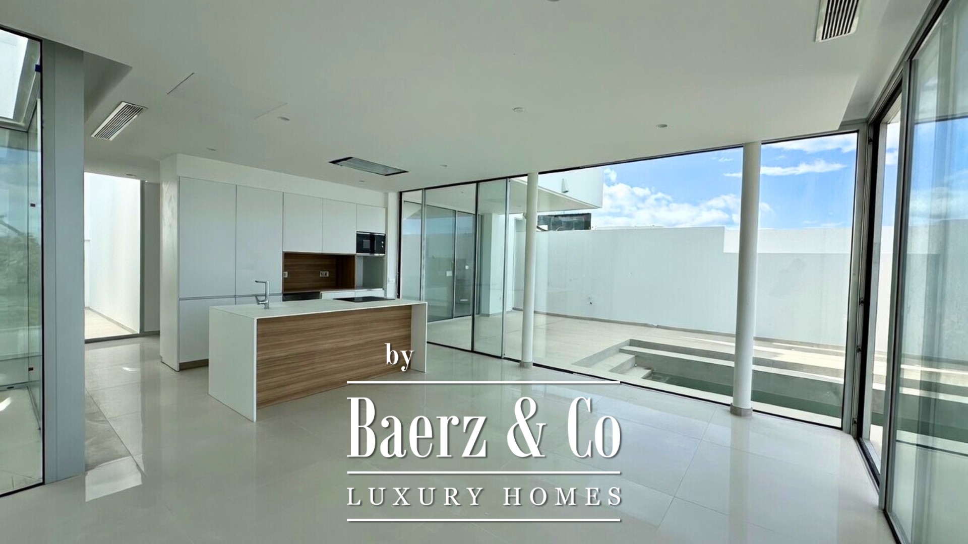 La piscine privée de 7,5 x 3 mètres, la douche extérieure et la vaste terrasse créent une expérience immersive entre intérieur et extérieur. Au niveau inférieur, une salle multifonction, deux chambres supplémentaires, deux salles de bains complètes et une buanderie dédiée offrent confort et polyvalence. Les espaces verts, agrémentés de plantes exotiques et de palmiers, enveloppent la villa d’une atmosphère paisible et raffinée.