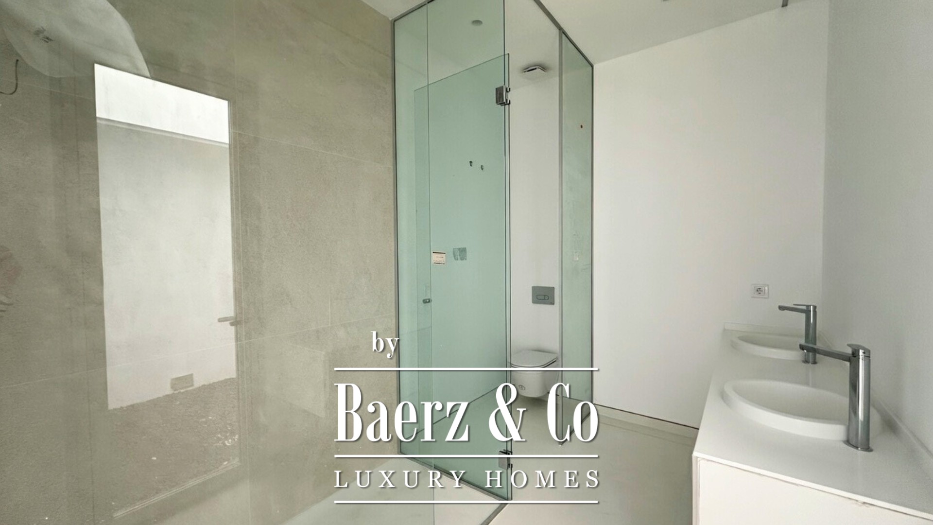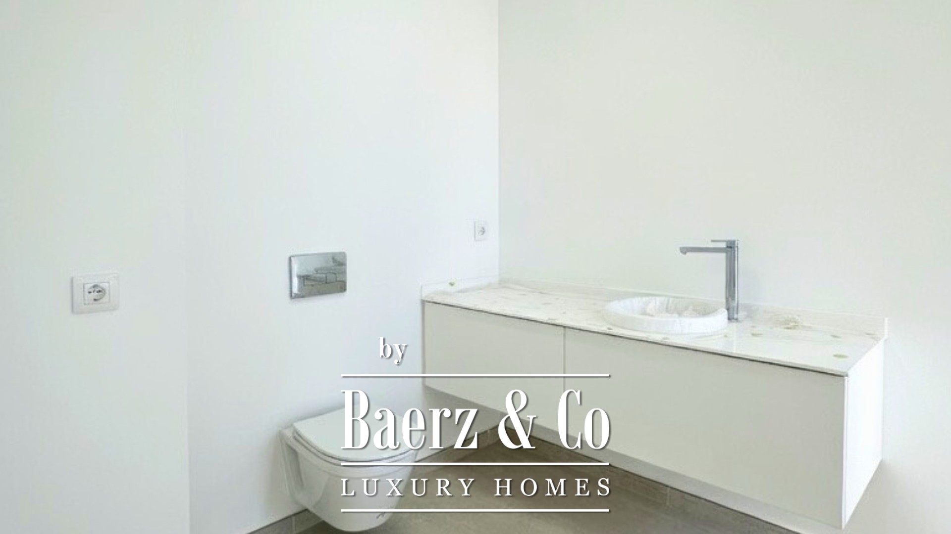 Dès l’entrée, l’espace principal dévoile un salon baigné de lumière naturelle grâce à de grandes baies vitrées coulissantes. La cuisine ouverte avec ilot central s’intègre harmonieusement à l’espace de vie. Ce niveau comprend la suite principale avec salle de bains privative, dressing et accès à une terrasse privée, ainsi qu’une seconde chambre en suite, dotée d‘armoires intégrées et d’une terrasse isolée. Un WC invités complète élégamment l’espace.