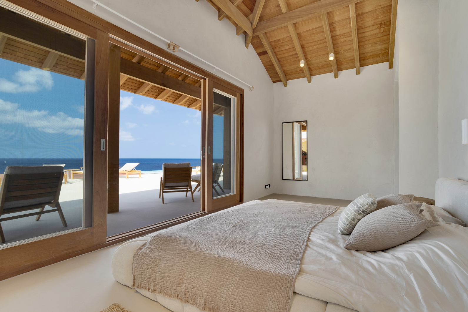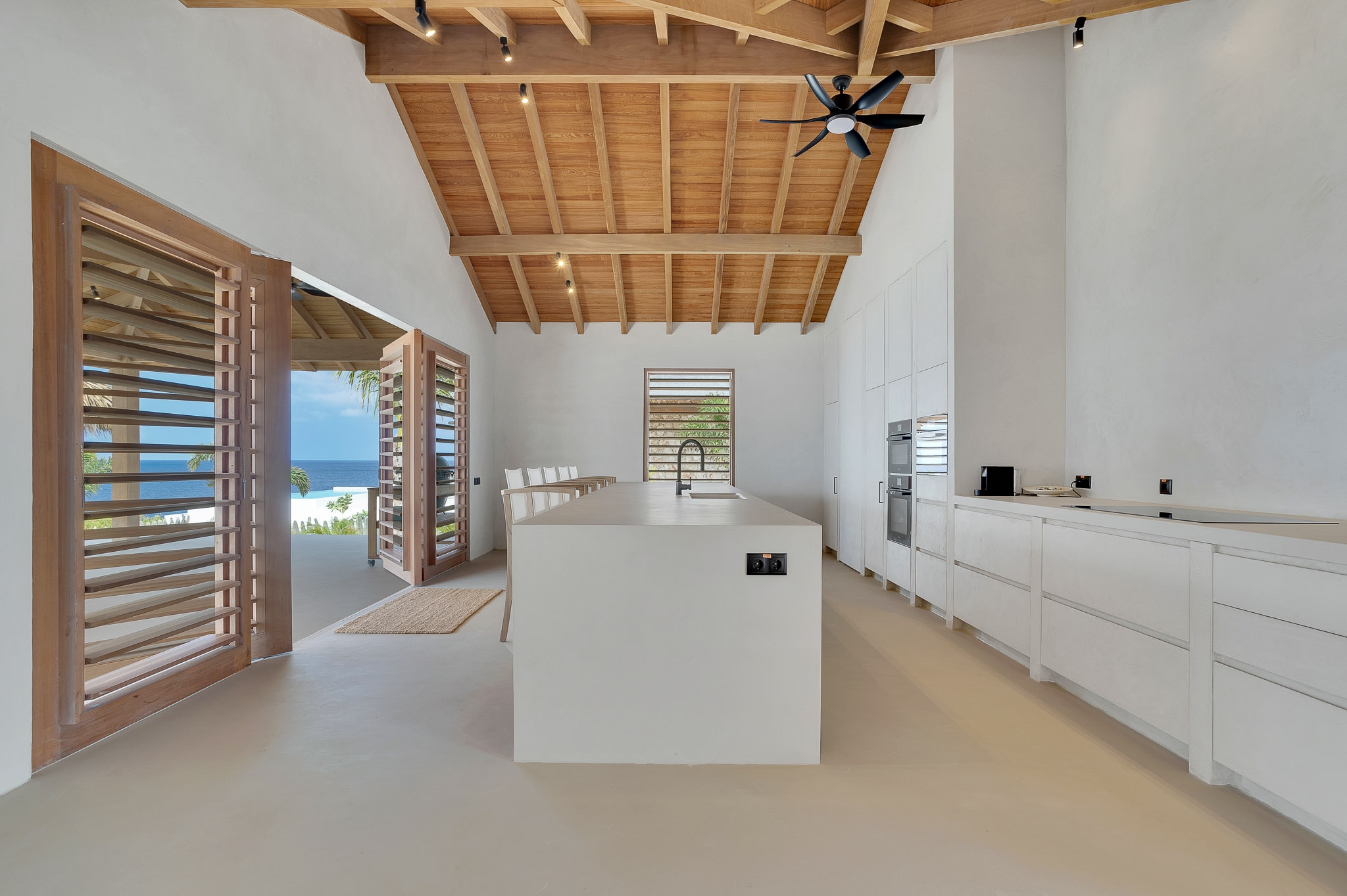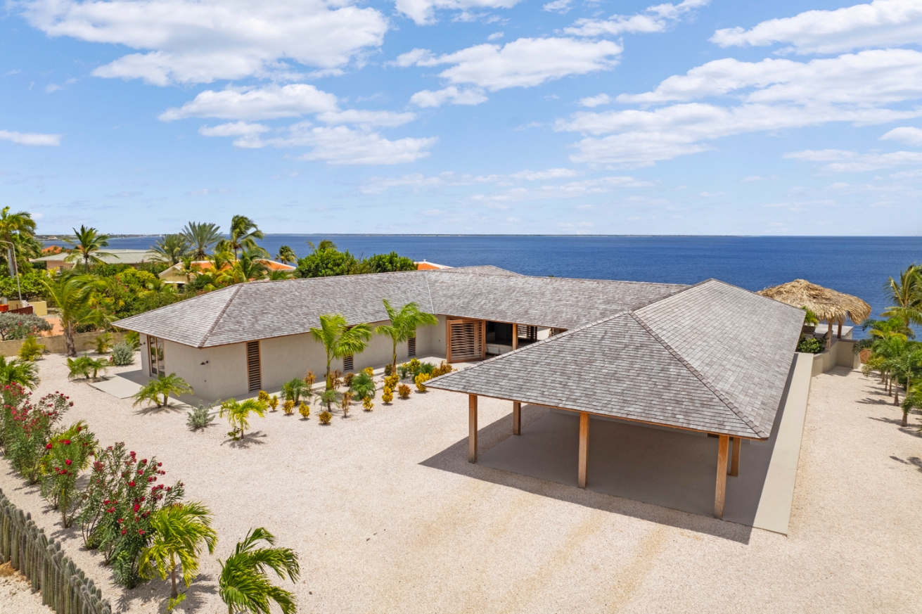 Un revêtement exclusif confère une unité esthétique à l’intérieur, accentuant la sérénité des lieux. Deux parkings couverts complètent la villa, idéalement située en bord de mer des Caraïbes au cœur de la nature grandiose de Bonaire. Cette villa de luxe à vendre à Kralendijk offre un niveau rare d’intimité, de design et de potentiel d’investissement, constituant ainsi une adresse d’exception pour des séjours familiaux ou pour une stratégie locative haut de gamme.