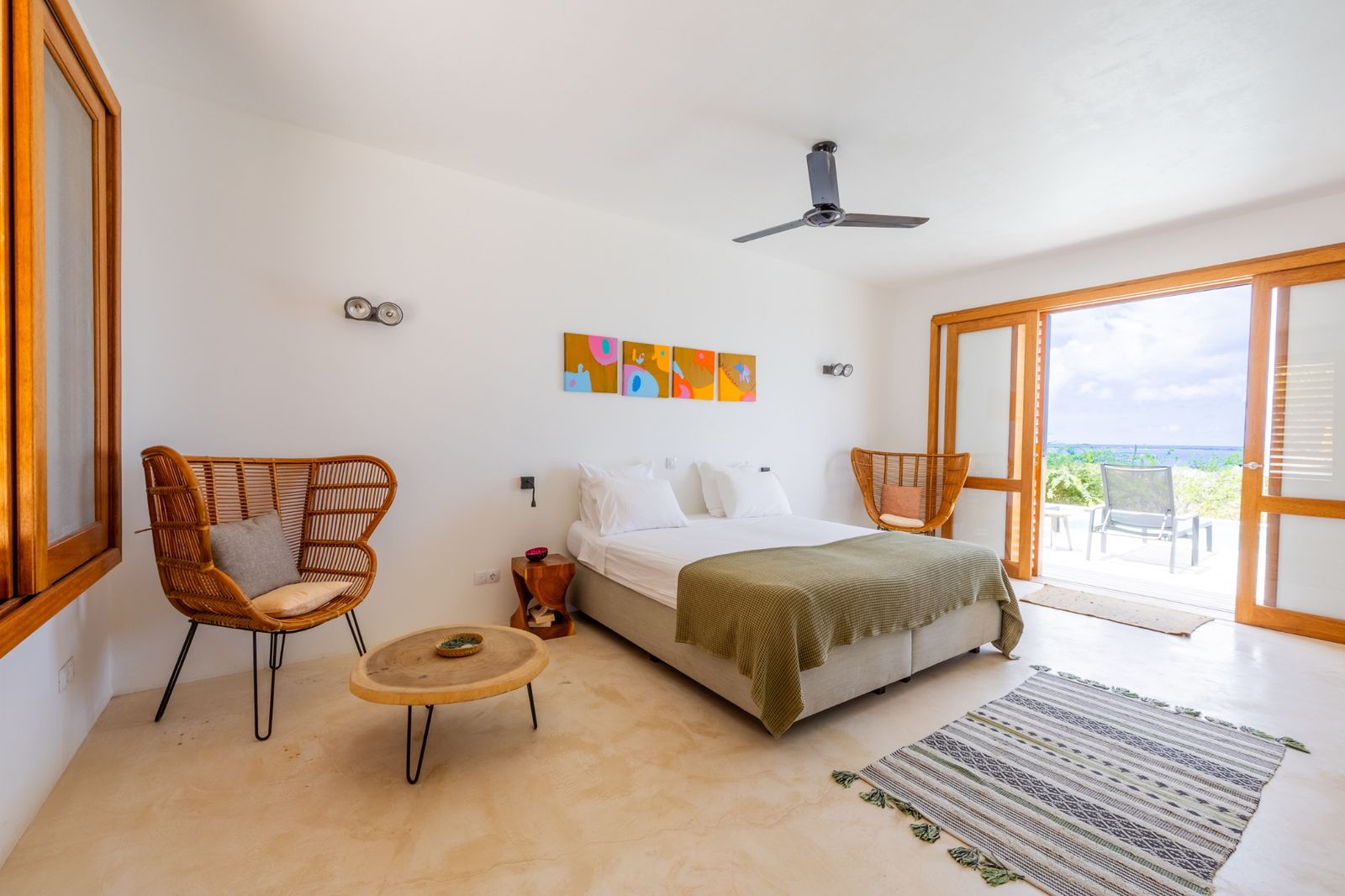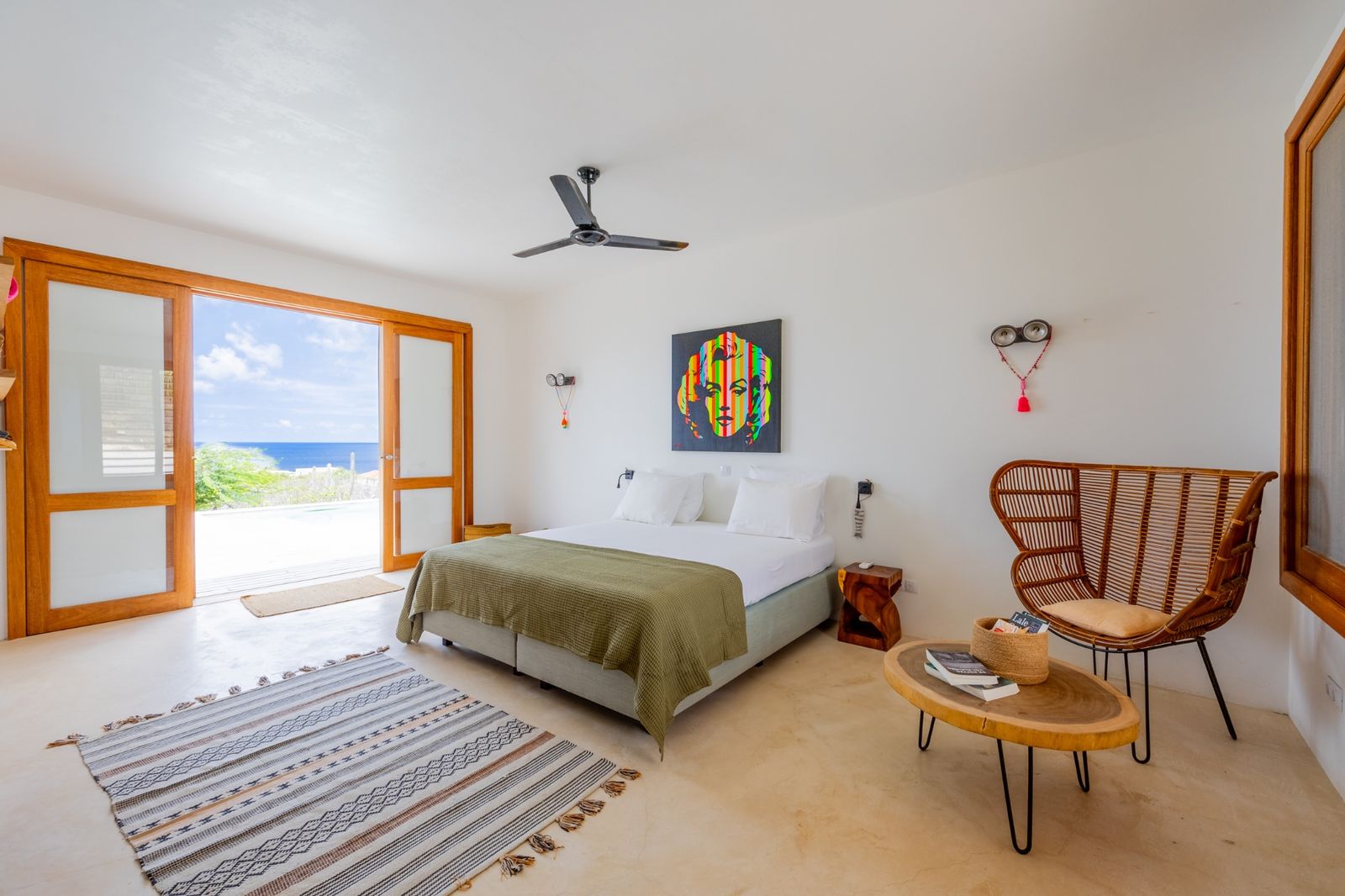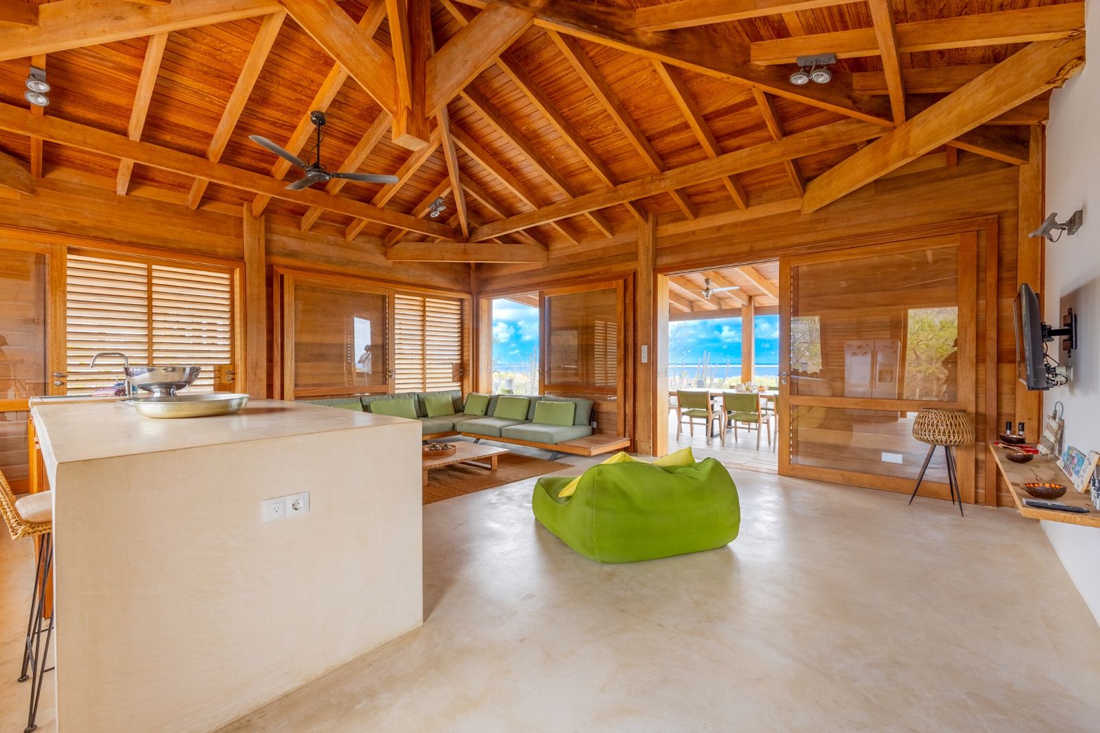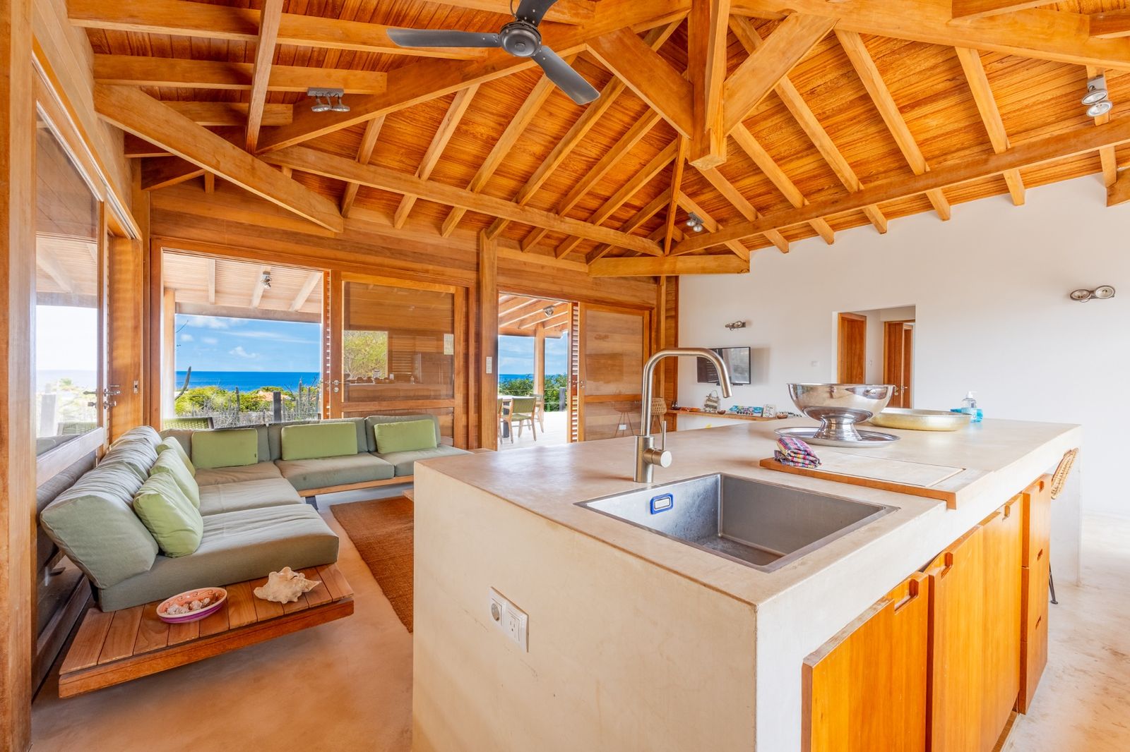 L’architecture de la propriété privilégie l’ouverture, laissant entrer la lumière et la brise caribéennes par des fenêtres à volets, moustiquaires et vitrages. La pièce à vivre centrale s’ouvre sur une cuisine moderne avec îlot, tandis que trois généreuses chambres disposent chacune d’une salle de bain attenante, pour une intimité et un confort optimaux.