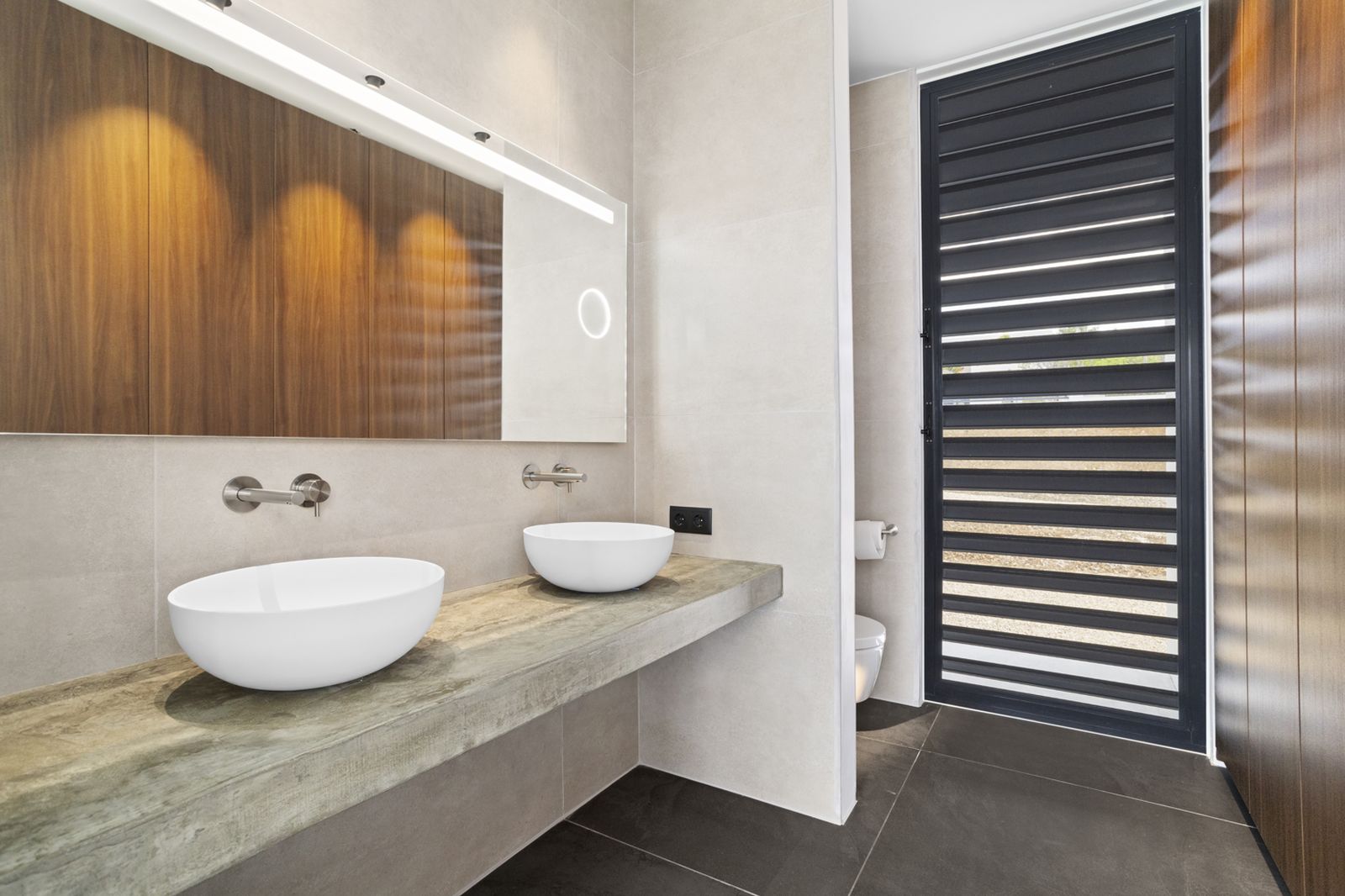 La résidence principale dispose de trois chambres spacieuses, conçues pour le repos, desservies par trois salles de bains méticuleusement aménagées ainsi qu’un WC invités. Une pièce supplémentaire avec entrée indépendante permet de multiples usages : suite d’amis, bureau ou espace de tranquillité. L’intérieur harmonise mobilier sur mesure et commodités modernes, sublimés par l’intégration discrète d’un système domotique GIRA/TCI et d’un WiFi Mesh TP-Link.