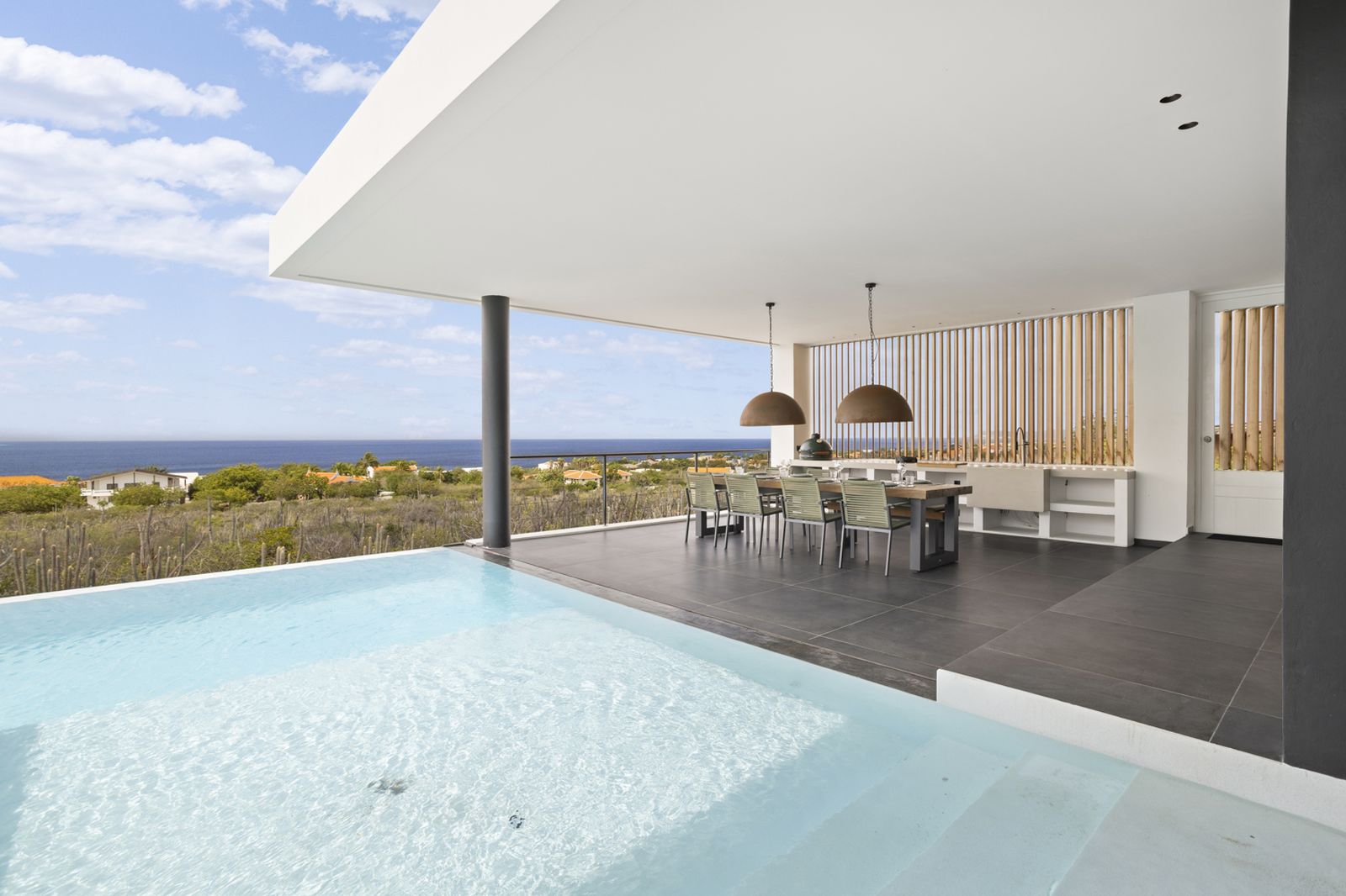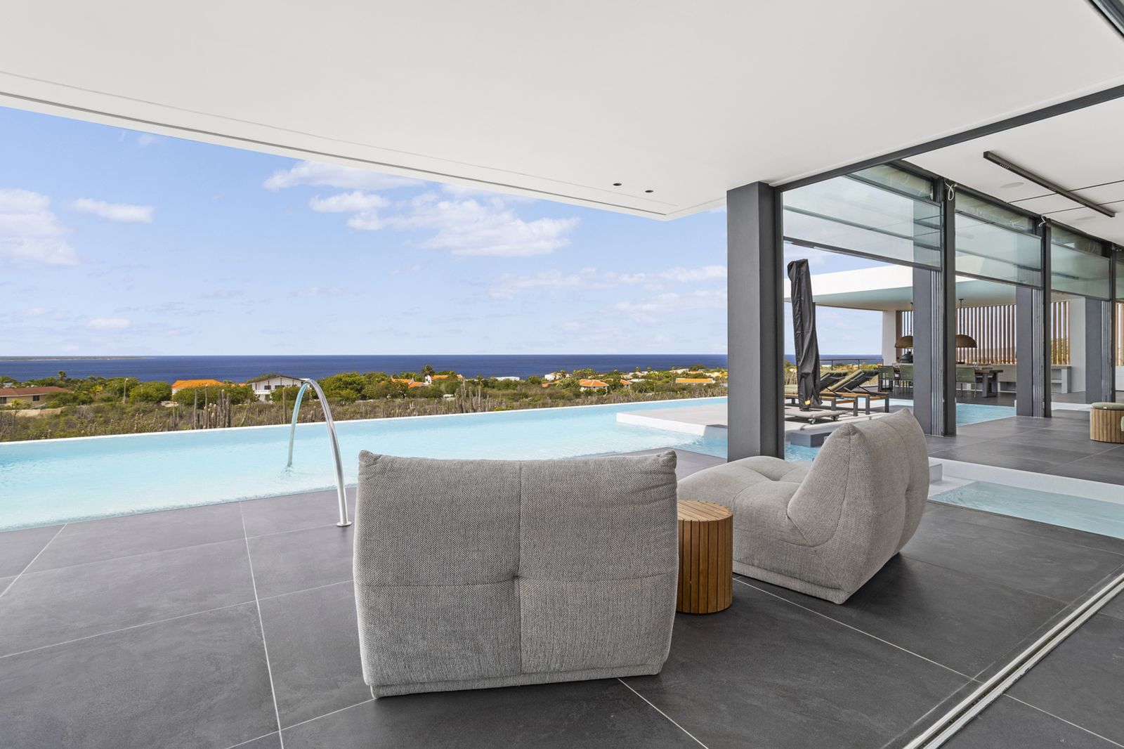 Villa à vendre à Kralendijk : une interprétation raffinée de l’art de vivre caribéen, nichée au sommet des magnifiques collines de Sabadeco Crown West. Récemment réalisée, cette villa offre 600 m² de surface habitable sur un terrain de 1 944 m². L’architecture contemporaine s’allie à des vues panoramiques sur l’océan, créant une atmosphère de sérénité et d’espace dès l’arrivée. Les baies vitrées s’étendent de Bopec au nord jusqu’aux Montagnes de Sel au sud, inondant chaque pièce de lumière et maintenant un lien constant avec la nature environnante.