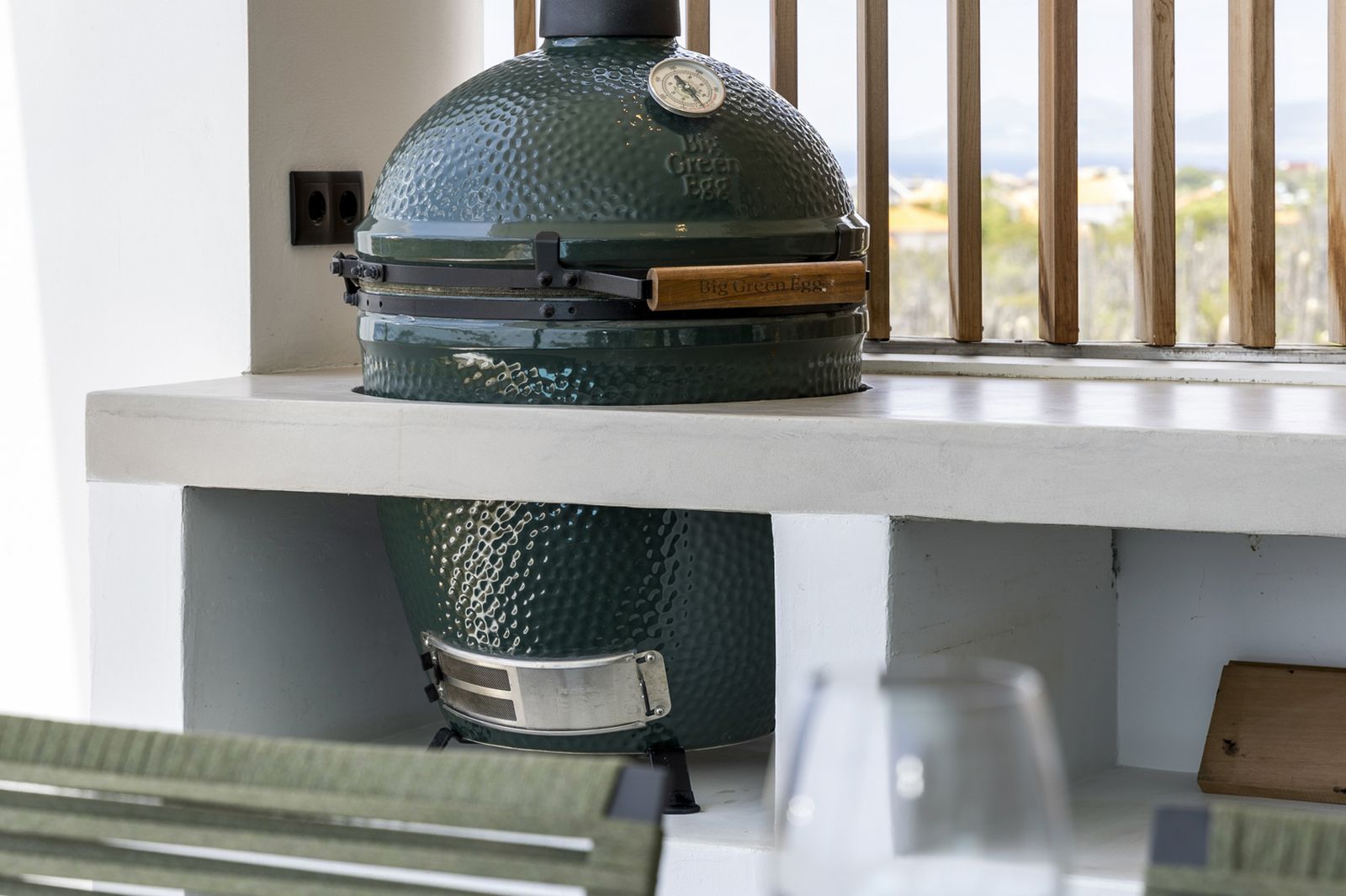 Outdoor kitchen with Green Egg (large) and wok burner.