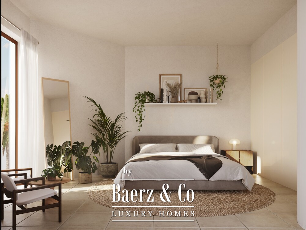 La distribution intérieure comprend deux chambres et trois salles de bains, une cuisine équipée d’appareils contemporains et un équilibre entre espaces intérieurs et extérieurs privatifs. Le bien est livré non meublé, prêt à être aménagé selon vos envies, avec une livraison prévue pour avril 2026. Les résidents bénéficient d’une piscine chauffée commune entourée de terrasses ensoleillées, d’un jardin paysager, d’une salle de sport, d’un local de rangement et d’un parking souterrain.