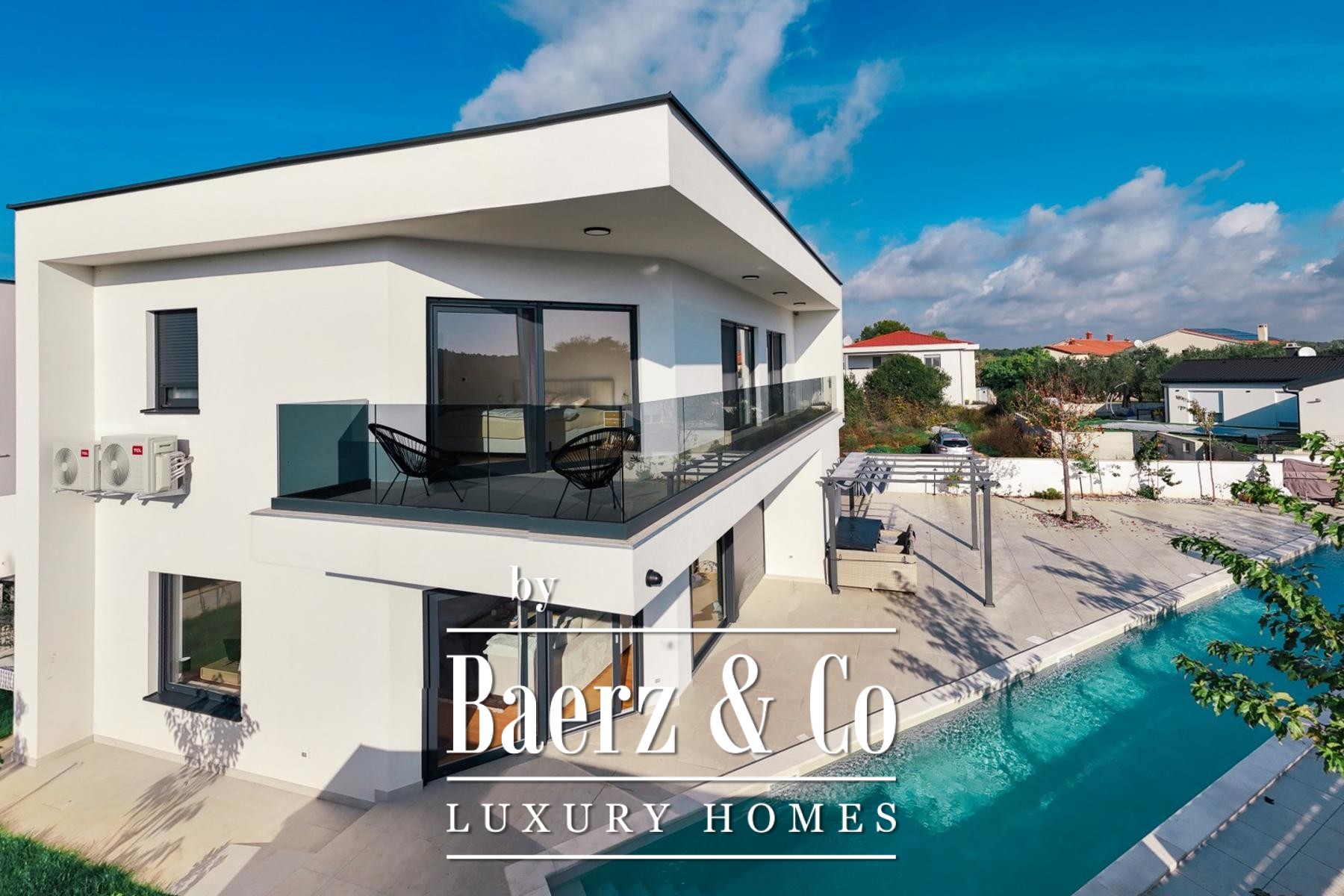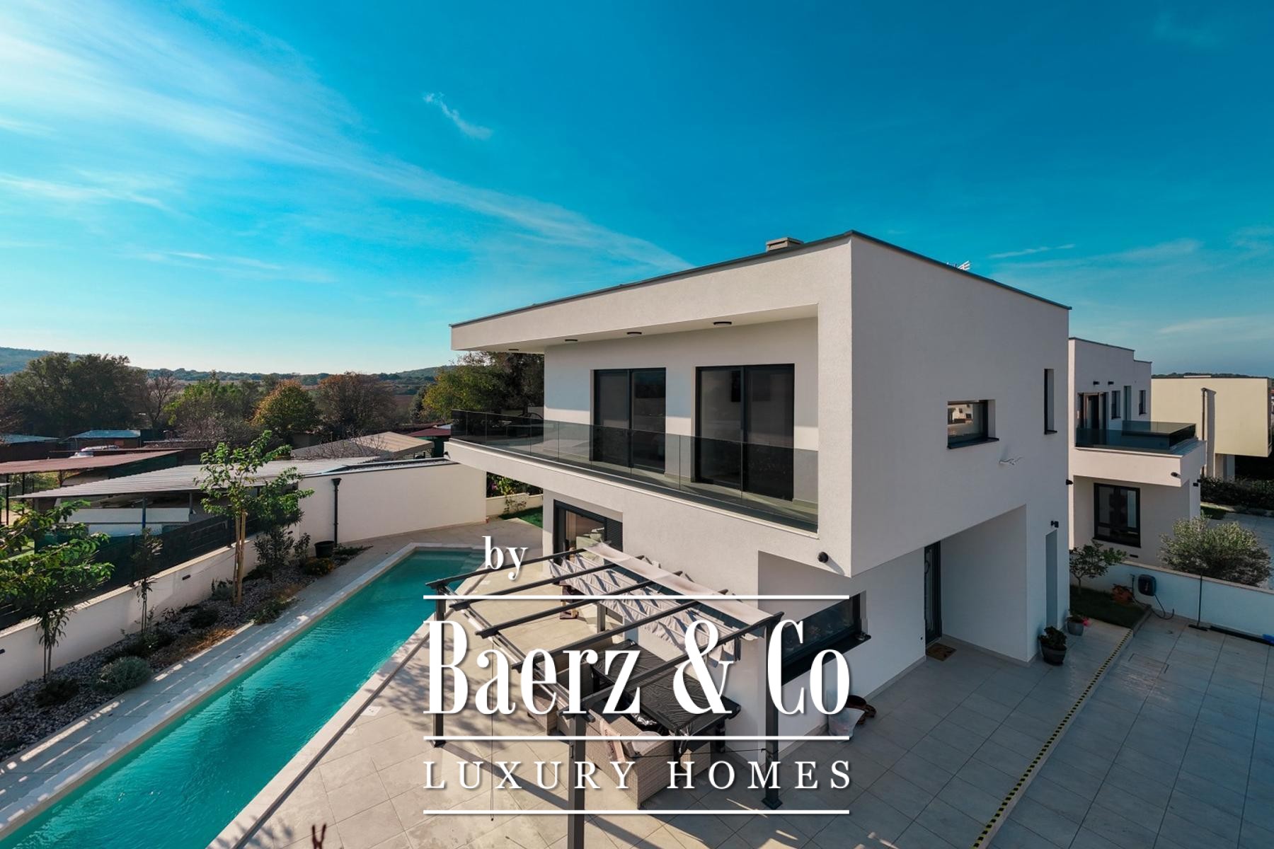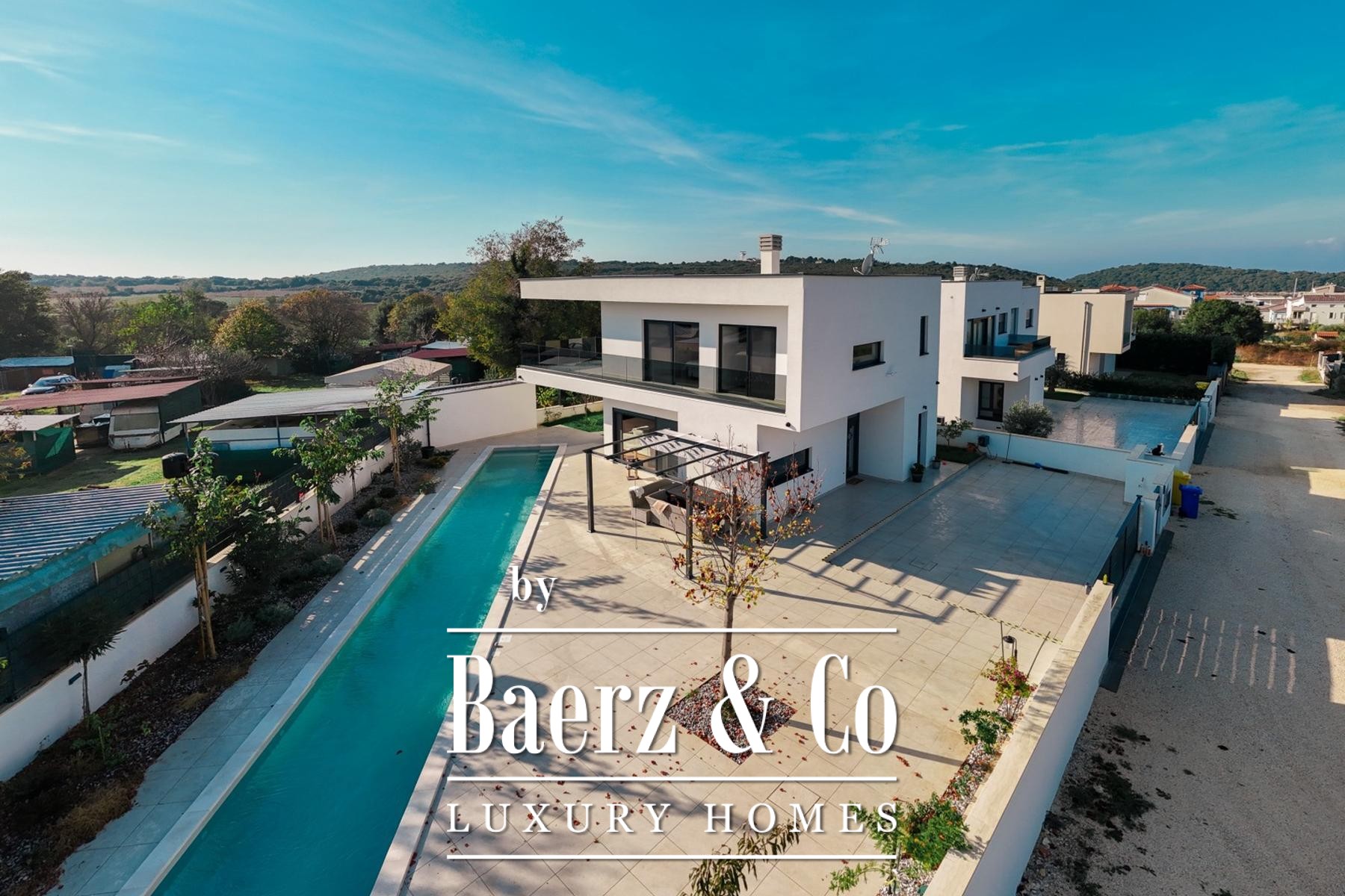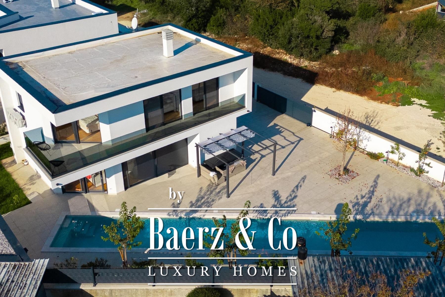 La villa moderne Medulin allie design contemporain et sérénité méditerranéenne au sein du prestigieux quartier de Volme. À seulement cinq minutes à pied de la mer cristalline, cette construction neuve offre 190 m² habitables sur un terrain paysager de 500 m², incarnant un art de vivre côtier inspirant en Croatie.