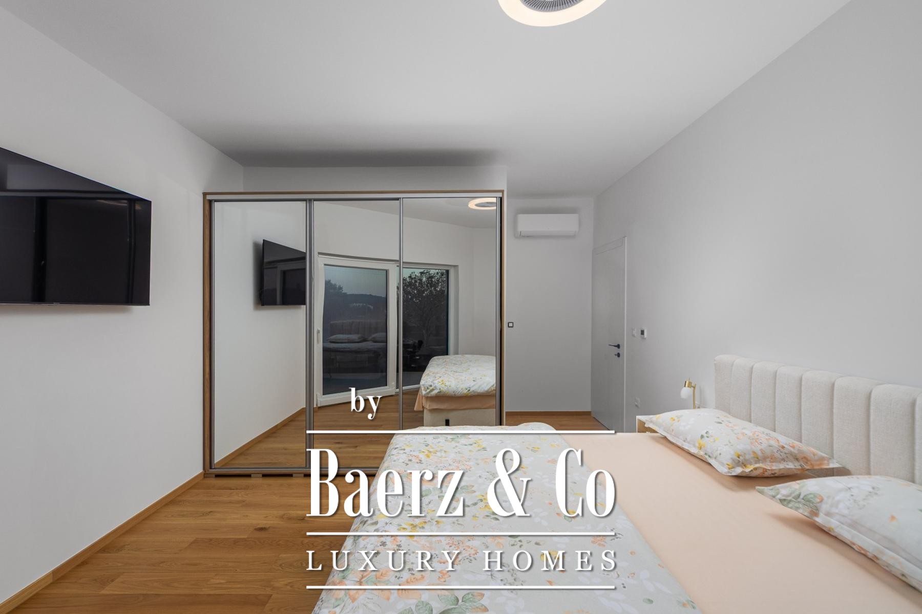 À l’étage, trois grandes chambres s’ouvrent sur des terrasses offrant vue sur la piscine et la verdure, avec parquet en chêne et climatisation Bosch pour votre confort. Deux salles de bains élégantes garantissent intimité et bien-être moderne. L’orientation est, sud et ouest assure une luminosité optimale tout au long de la journée.