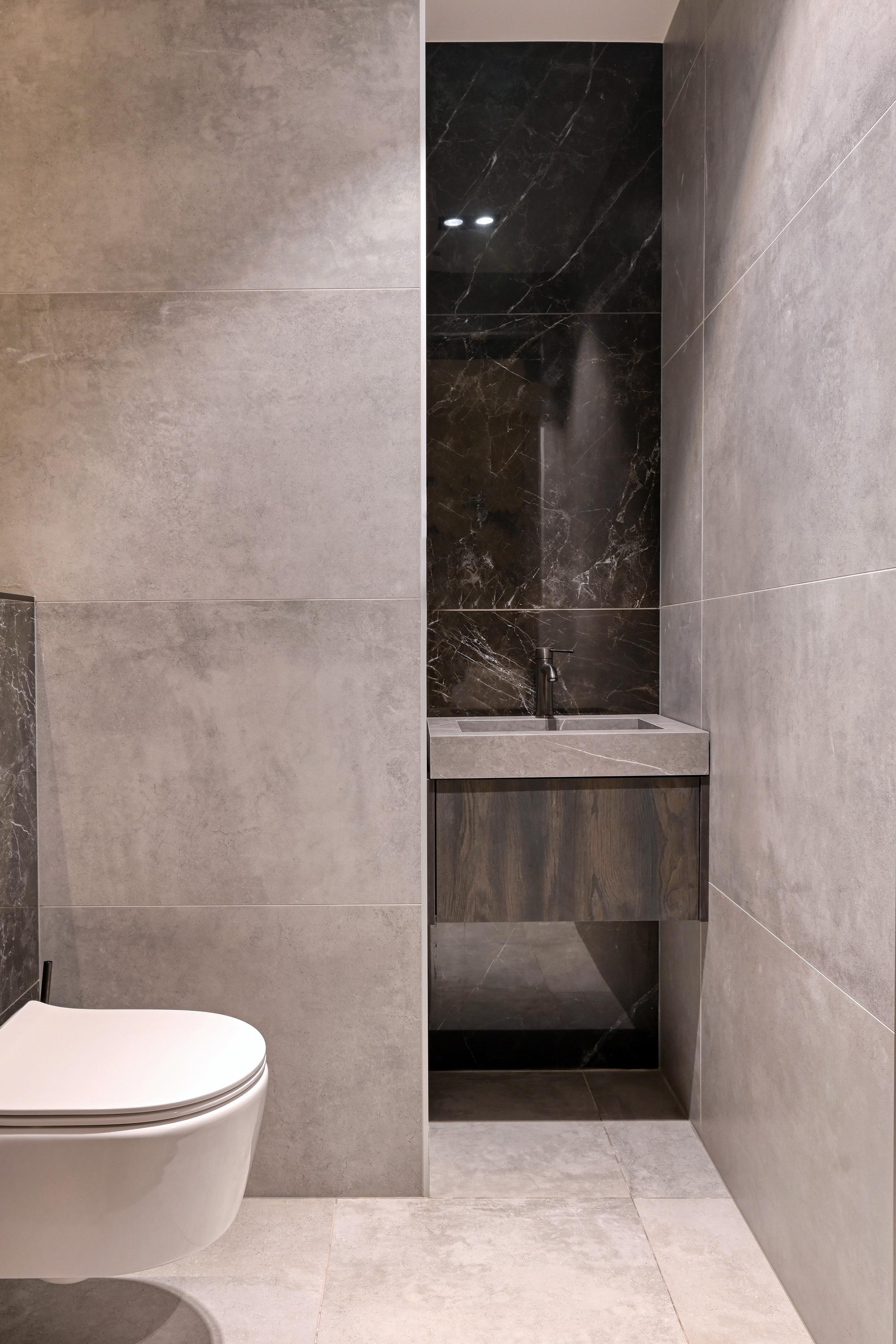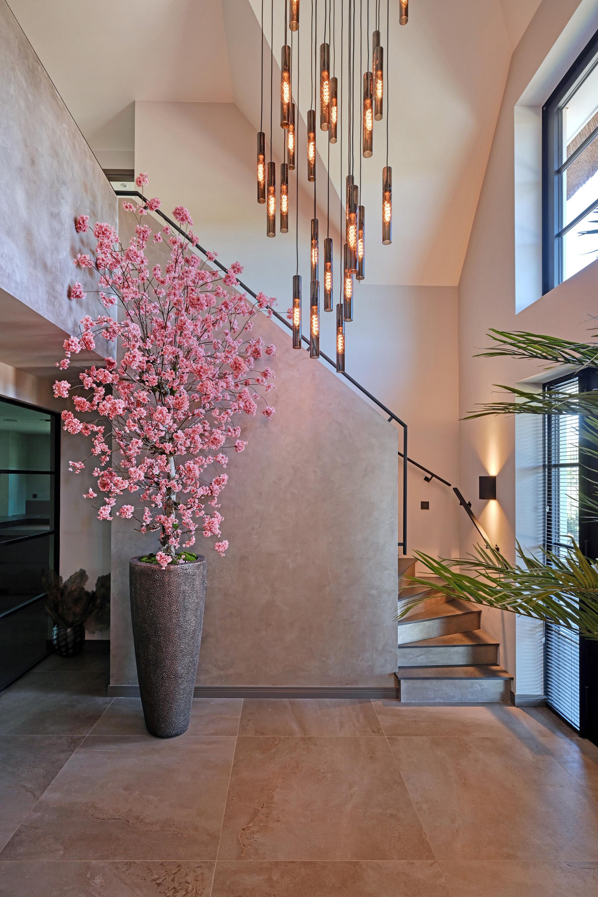 Upon entering, you’ll find a spacious entryway with a loft and a beautiful staircase; it immediately becomes clear that this villa was designed with a sense of space and elegance. Steel doors with smoked glass provide access to the living room.