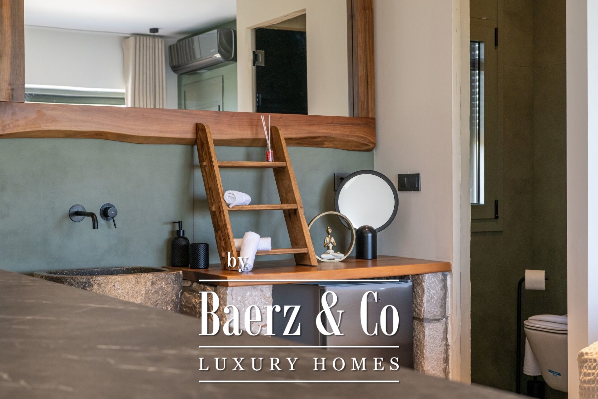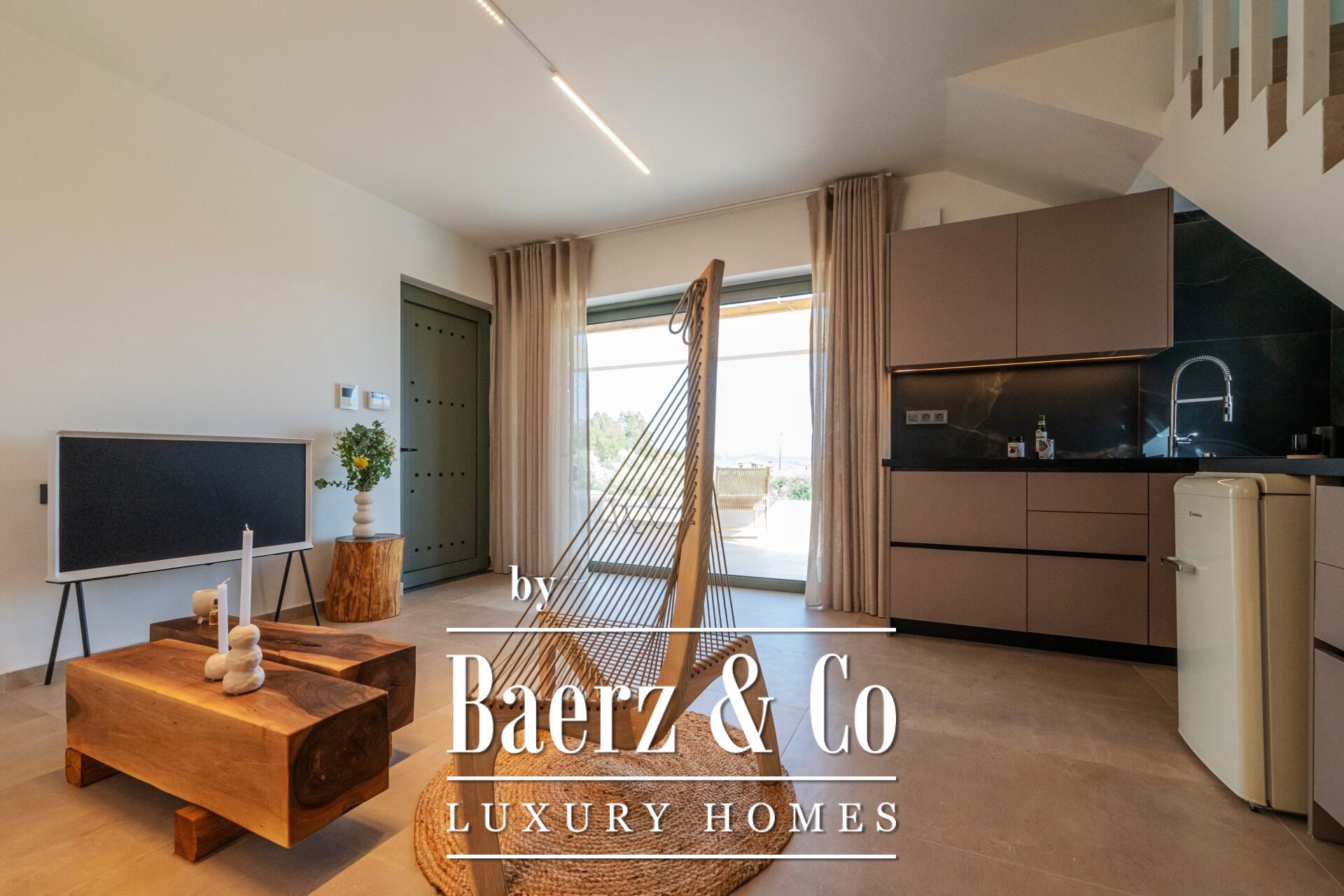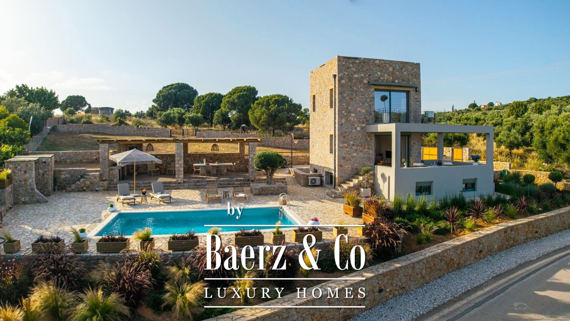 La villa en pierre Tragana offre une expérience unique de vie méditerranéenne contemporaine. Cette villa de luxe récemment construite se situe dans une enclave privilégiée et paisible de Messénie, mêlant architecture en pierre intemporelle et vues dégagées sur l'immensité bleue. Déployée sur 140 m² au sein d'un terrain privé de 750 m², la résidence s’illustre par son orientation sud-est, laissant pénétrer la lumière naturelle dans chaque pièce tout au long de la journée.