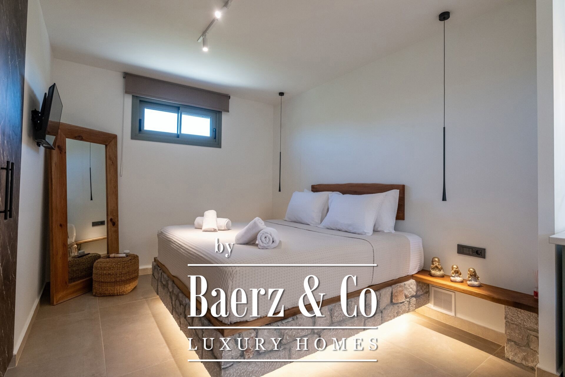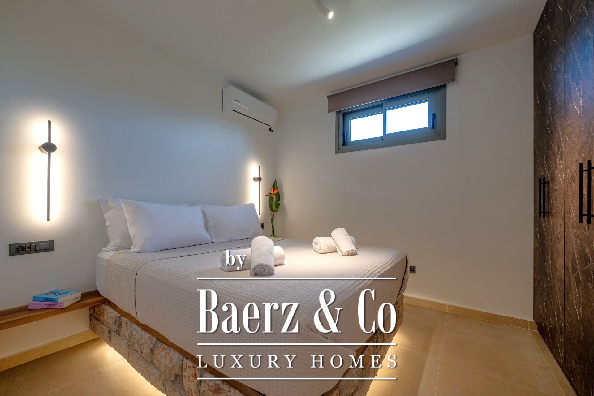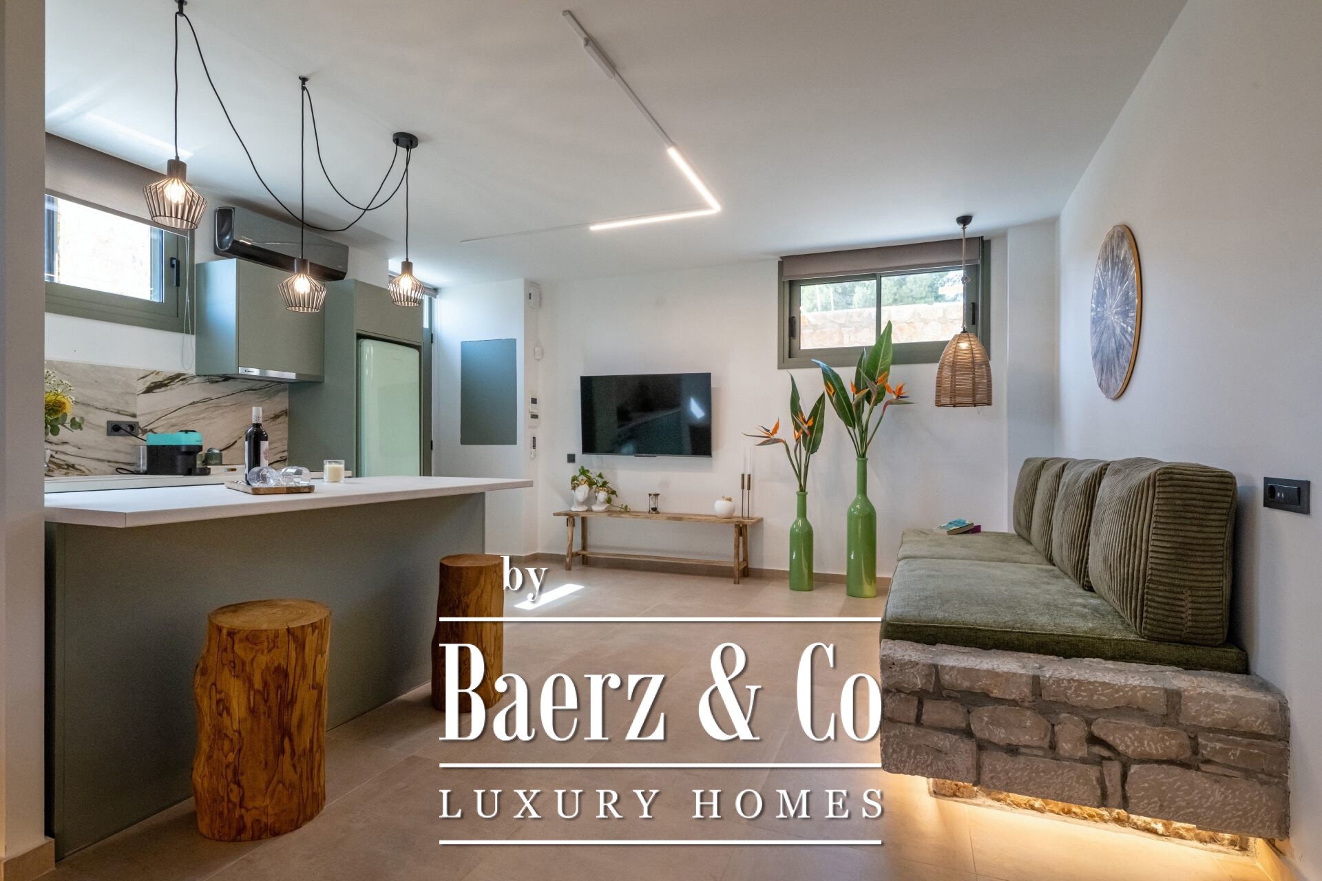 À l'extérieur, l’aménagement paysager évoque une atmosphère de resort. Une superbe piscine de 32 m² s'accompagne d’une vaste terrasse de 50 m² pour les repas en plein air. Des éléments tels qu’un muret en pierre, un jardin raffiné, une douche et un WC extérieurs, ainsi que deux places de stationnement privées derrière un portail électrique, créent un cadre sécurisé et serein. Les équipements modernes comprennent la climatisation, un chauffe-eau solaire, une classe énergétique A, des fenêtres à double vitrage et un système de sécurité complet avec alarme et caméras. La propriété est livrée entièrement meublée et équipée, apte à offrir un confort immédiat.
