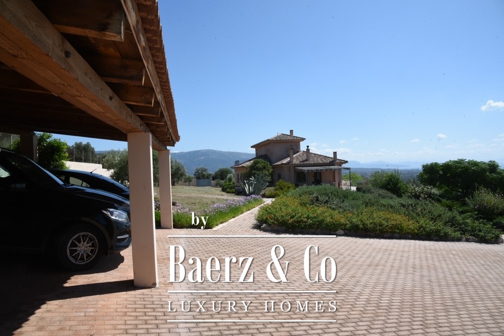 Gelegen in het rustige landschap van Amarynthos biedt deze elegante villa in Toscaanse stijl een verfijnde combinatie van mediterrane charme en modern comfort. De woning werd gebouwd in 2011, is uitstekend onderhouden en beschikt over een woonoppervlak van 365 m² verdeeld over drie niveaus, met een onbelemmerd uitzicht op zowel de zee als de omliggende bergen.