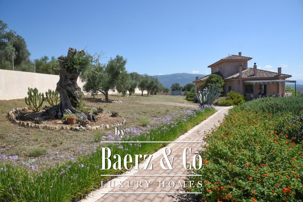 Ook het exterieur is indrukwekkend. De villa ligt op een prachtig aangelegd perceel van 5.000 m² met volwassen bomen, verzorgde gazons en bloeiende tuinen rondom een fraai zwembad. Er is overdekte parkeergelegenheid voor vier auto’s, evenals een technische ruimte en een extra buitengebouw dat eenvoudig kan worden omgevormd tot een gastenverblijf. Twee afgesloten ingangen met elektrische poorten garanderen privacy en gemakkelijke toegang.