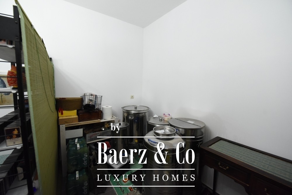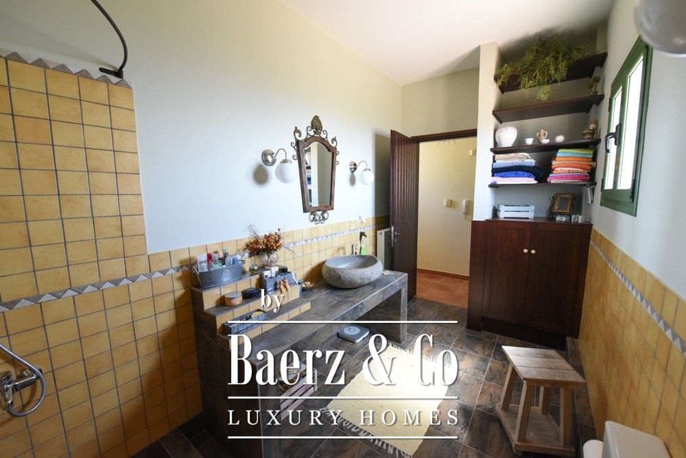 Het interieur wordt gekenmerkt door royale ruimtes en een warme, tijdloze uitstraling. Twee ruime woonkamers, elk met een ingebouwde keuken, creëren een perfecte balans tussen dagelijks comfort en stijlvol ontvangen. De villa beschikt over vijf slaapkamers, drie badkamers, een gastentoilet en twee inloopkasten, allemaal ontworpen met oog voor functionaliteit en elegantie.