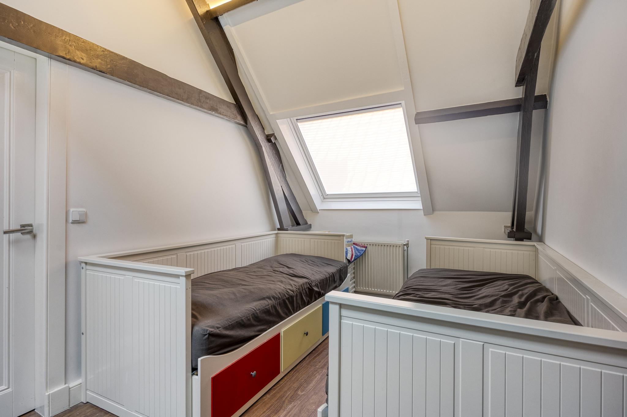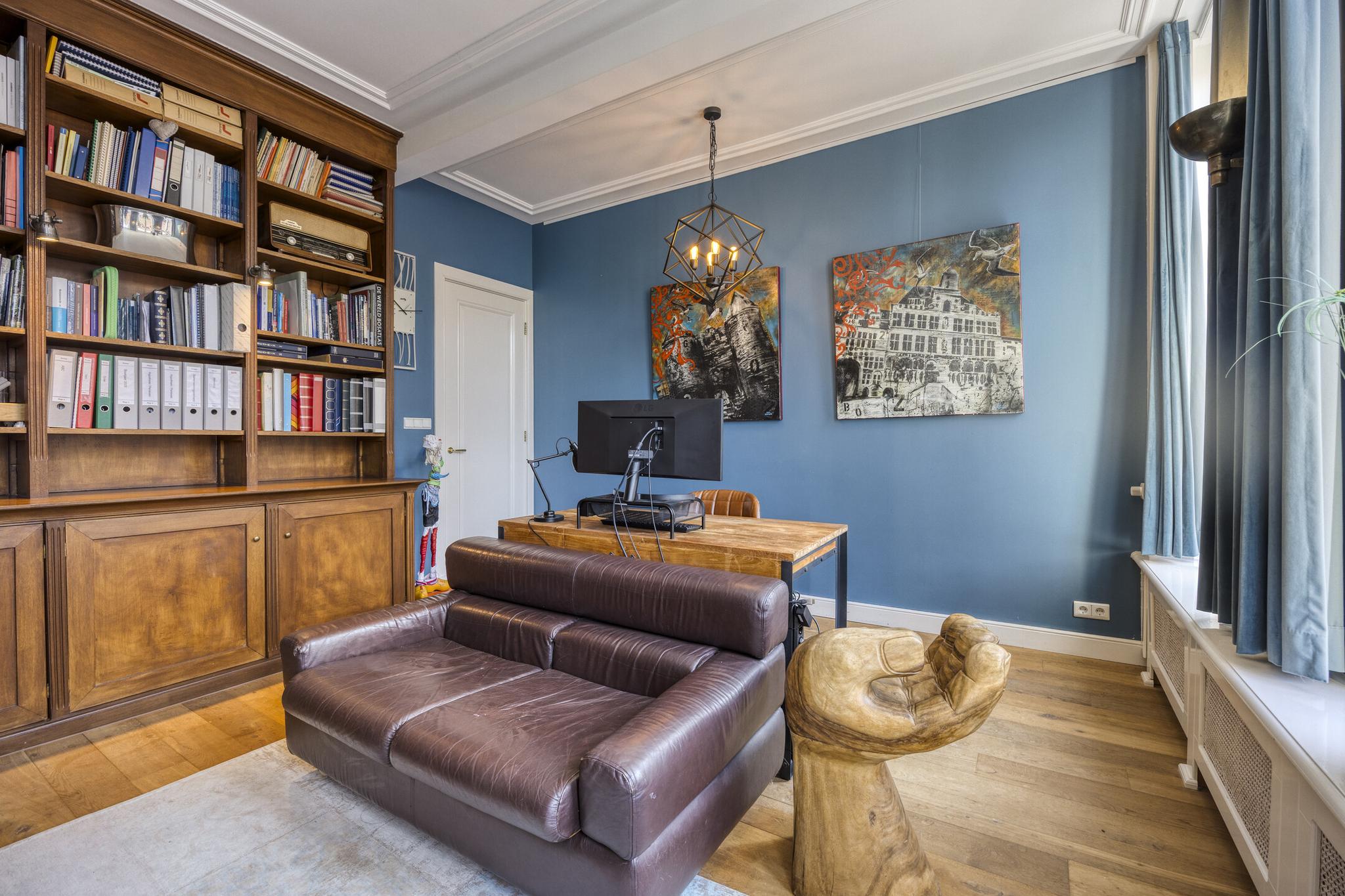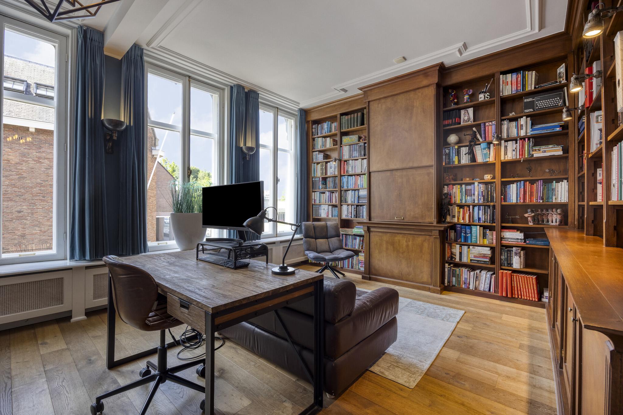 De verdieping is ingedeeld d.m.v. 2 royale slaapkamers waarvan de kamer voor in gebruik is als werkkamer en de kamer achter in gebruik is als hoofdslaapkamer met toegang tot de badkamer en ruime inloopkast.