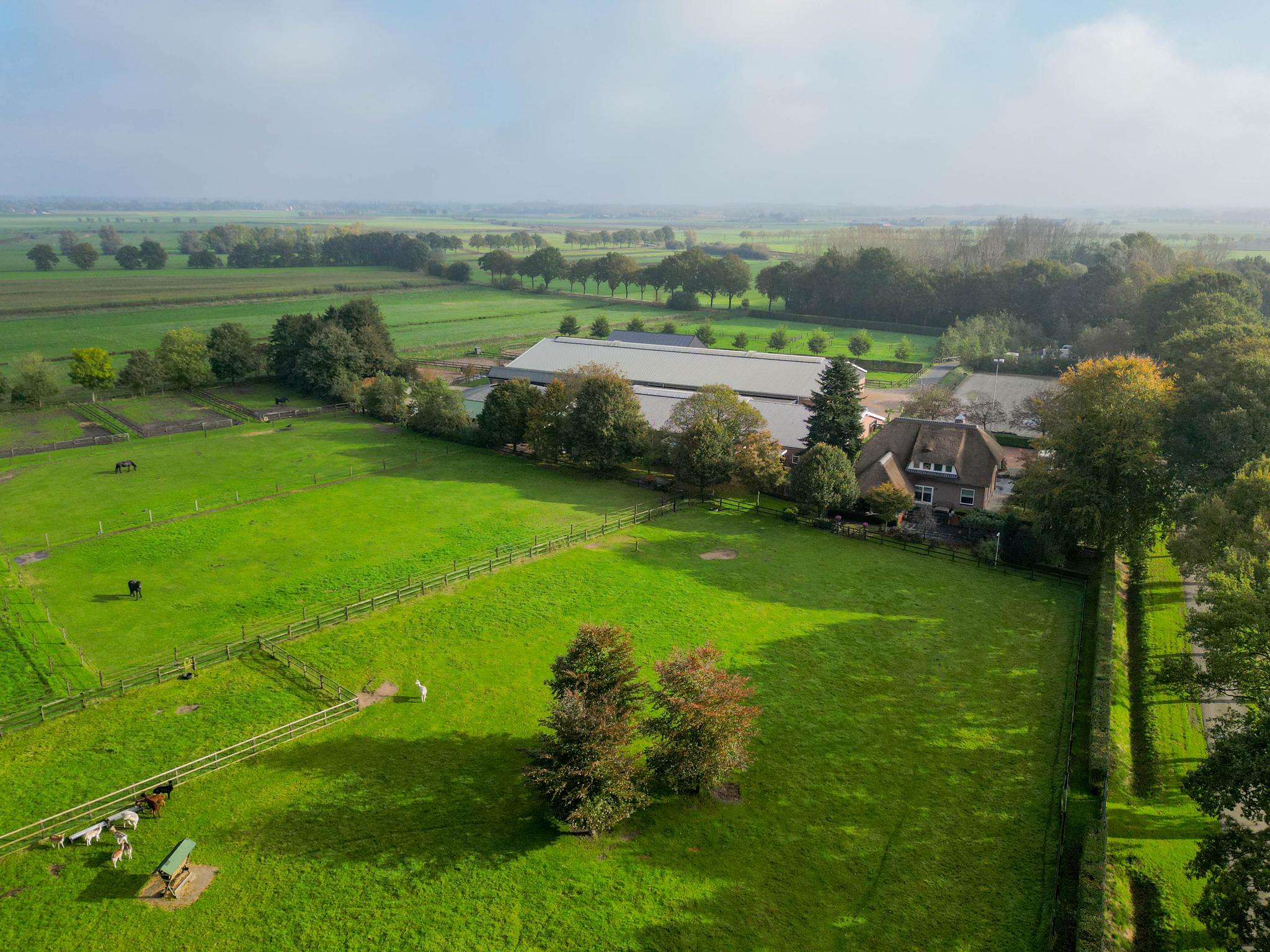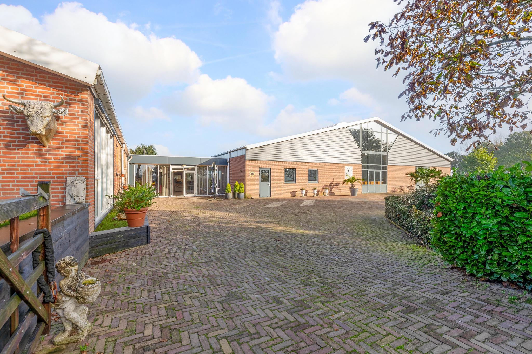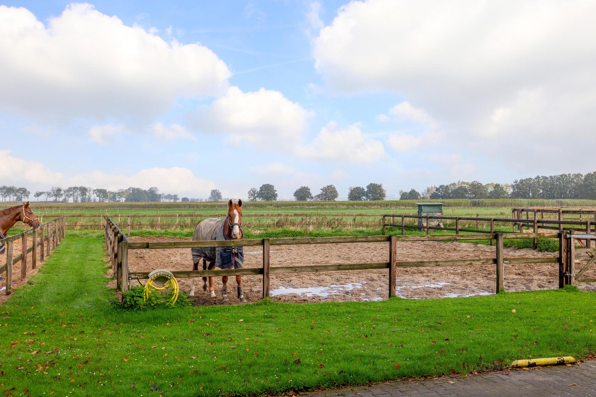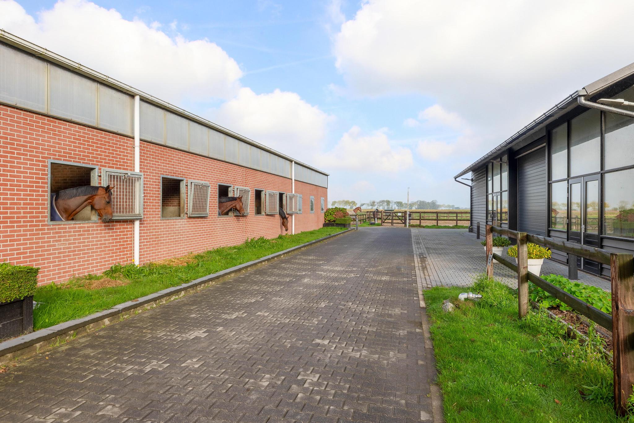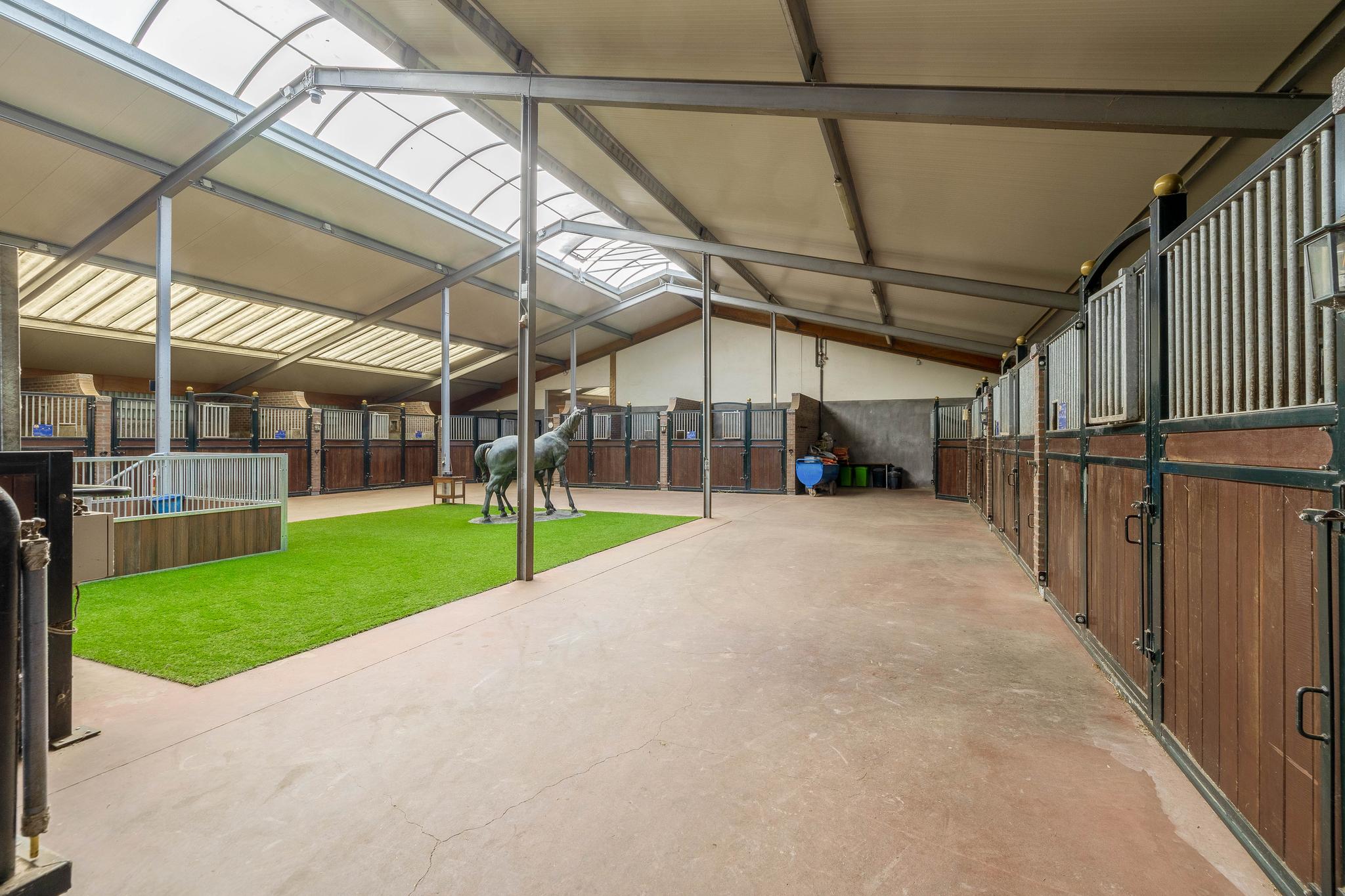 Complete hippische accommodatie o.a. uitgerust met een vrijstaand woonhuis, appartement, kantoorgedeelte, een rijhal met binnenpiste en in totaal 31 paardenboxen, een buitenpiste, overdekte stapmolen, longeercirkel, diverse paddocks, weiland, een opslag/veldschuur en een vrijstaande loods.