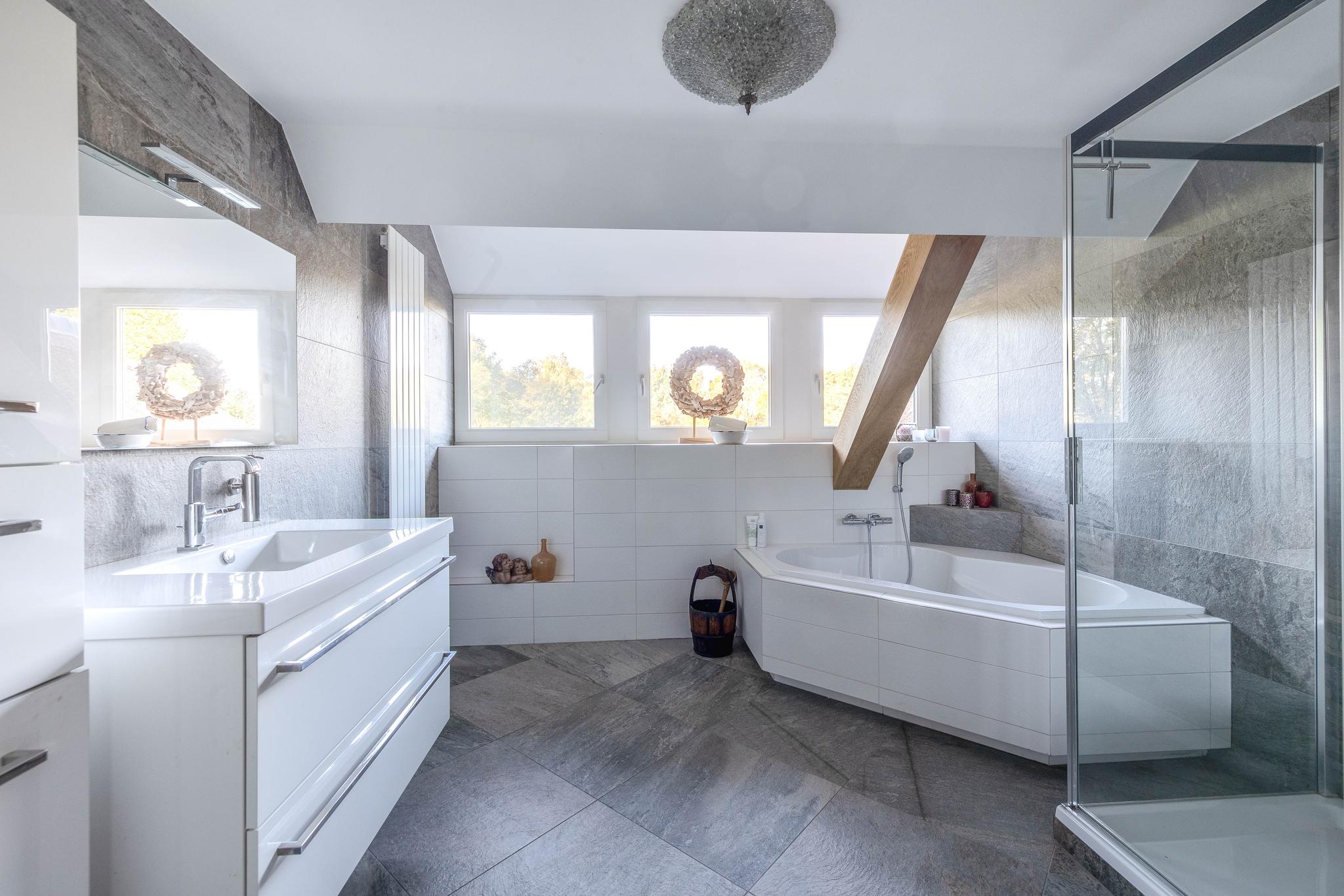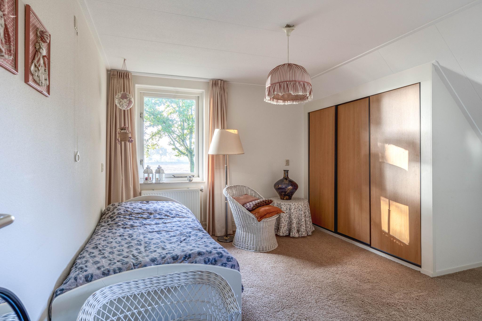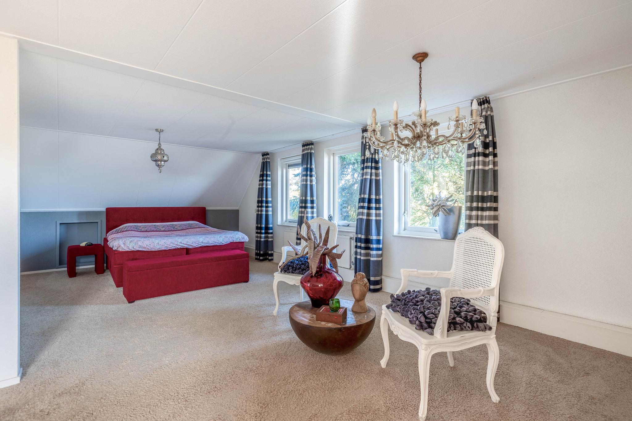 De royale overloop biedt toegang tot 3 ruime slaapkamers en een badkamer. Slaapkamer I is voorzien van vloerbedekking, spuitwerk wanden en een spuitwerk plafond. Vanuit deze kamer is er middels een vaste trap toegang tot de bergzolder. De ruimte is verder voorzien van een praktische inbouwkast. Slaapkamer II is eveneens afgewerkt met vloerbedekking, spuitwerk wanden en een spuitwerk plafond. Vaste schuifkasten zorgen voor opbergruimte. De ruime badkamer is geheel betegeld en verder uitgerust met een ligbad, inloopdouche, wastafel met meubel en een designradiator. De toiletruimte is geheel betegeld en voorzien van een zwevend toilet. De zeer ruime ouderslaapkamer was voorheen verdeeld in 2 slaapkamers. Dit is relatief eenvoudig weer te realiseren. De kamer is afgewerkt met vloerbedekking, spachtelputz wanden en een spuitwerk plafond. Een praktische vaste kast en schuifkasten zorgen voor opbergruimte. Vele raampartijen zorgen voor veel natuurlijke lichtinval.