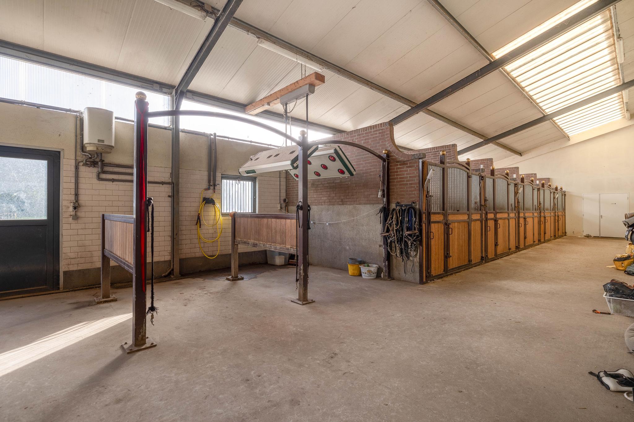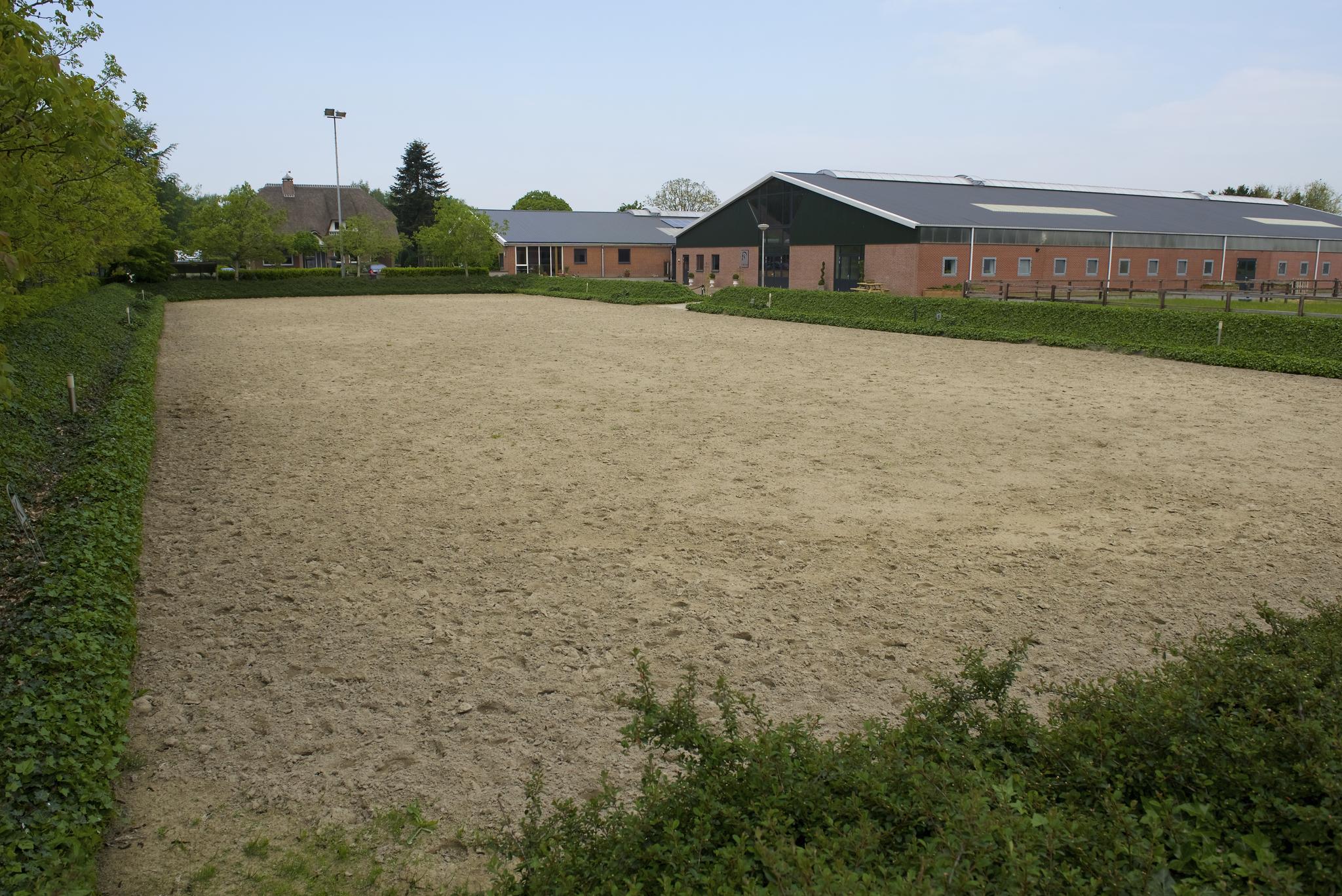 De hippische accommodatie bestaat o.a. uit een vrijstaande rijhal met een binnenpiste (ca. 20mtr. x 60mtr), een paardenstal met een ontvangstgedeelte en in totaal 31 paardenboxen verdeeld over 2 stalgedeeltes, een kantoorruimte, werkplaats en aangrenzend een appartement.