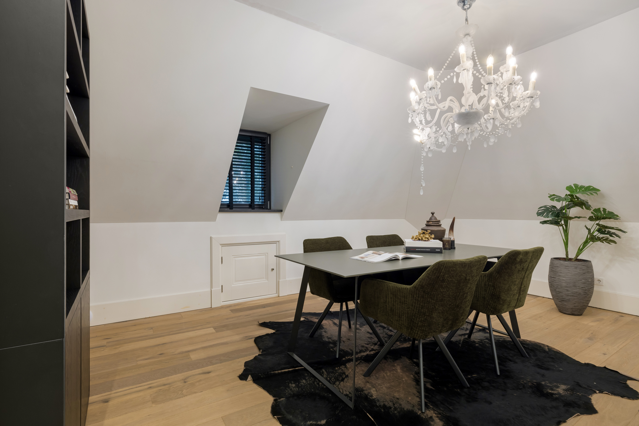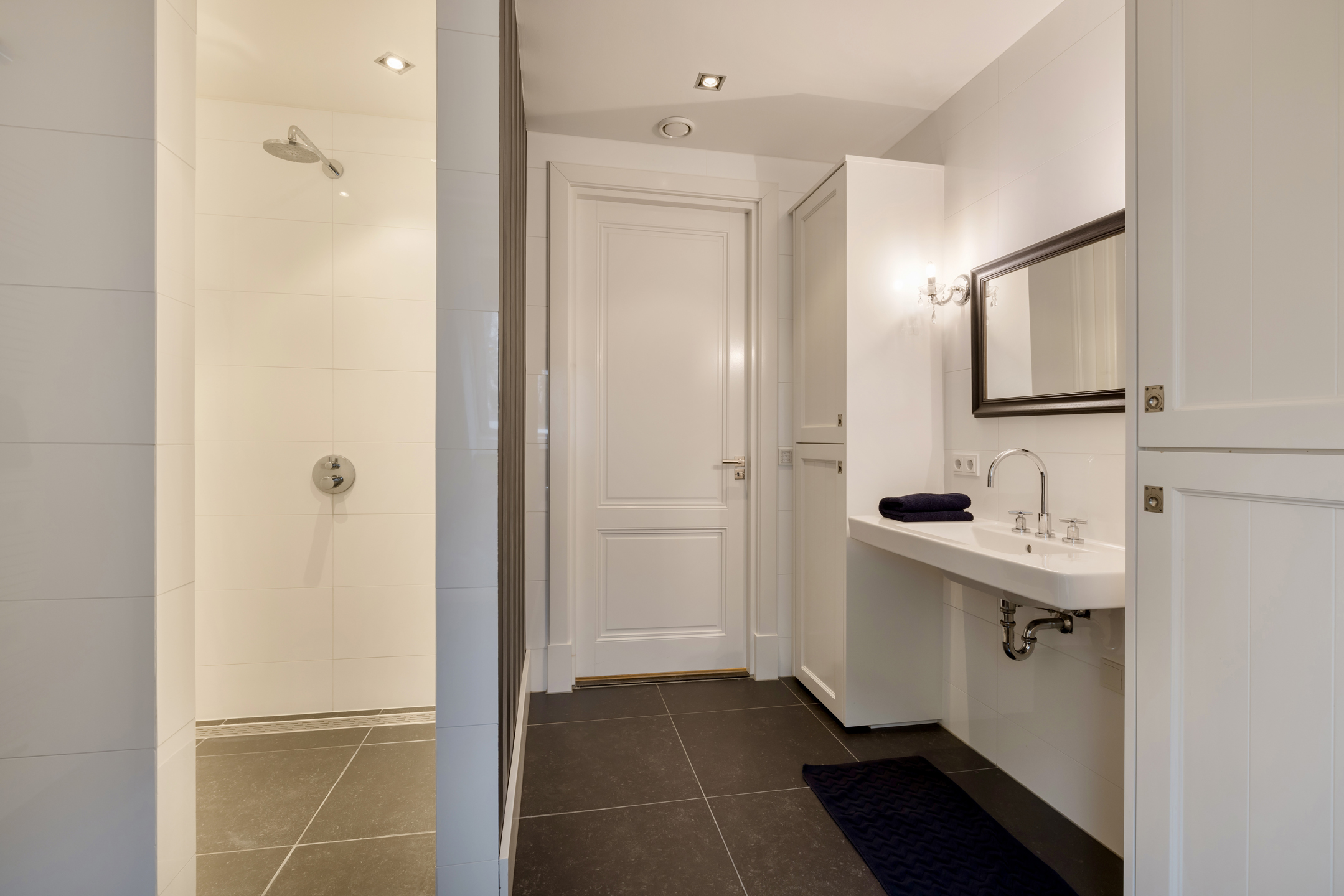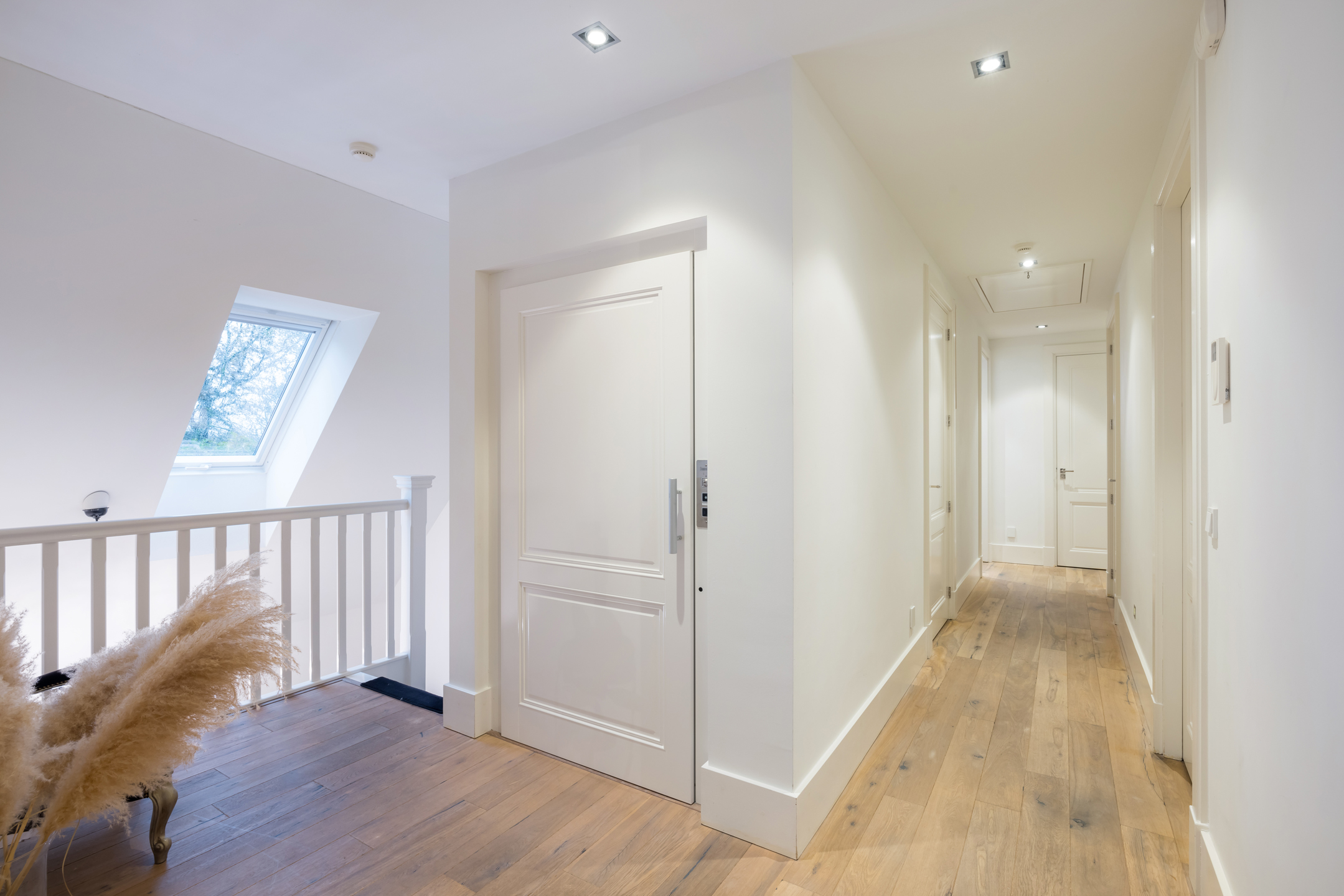 Via de dubbele voordeur bereik je de ruime hal met vaste trap naar boven, toilet, garderobe en deuren naar de kelder, de personenlift en de living. De living is sfeervol, chique en rustgevend met doorkijk naar de prachtige tuin en de schitterende haardpartij. Met rechts het kantoor middels en-suite deuren bereikbaar. Ga je naar links dan bereik je de open keuken met hier veel werkblad, opbergruimte, een kookeiland en alle denkbare keukenapparatuur die de echte liefhebber van de kookkunst zich maar kan wensen. De volgende apparatuur is hier aanwezig: stoomoven, oven, combi-oven, warmhoudlade, 6-pits gasfornuis, 2 x vaatwasser en een quooker. Wat het nog meer bijzonder maakt dat in de keuken een kleine goederen lift aanwezig is om zowel de kelder als 1ste verdieping van eten en dranken te voorzien. Een koelcel i.p.v. een koelkast ook vrij uniek om je eigen koelkast in te lopen. Aan de achtertuin zijde is direct achter de keuken een fantastische tuinkamer gesitueerd die als eetkamer dienst doet. Uiteraard met overal glas en uitzicht op tuin en landerijen. Pal naast de tuinkamer is een serre aanwezig met een heerlijke buiten houthaard. Deze ruimte kun je volledig openzetten via schuifdeuren zodat je de prachtige tuin naar binnen kunt halen. Last but not least, is dit tophuis ook nog eens levensloop bestendig. Aan de linker voorzijde van de woning is de Masterbedroom gesitueerd, met ruime badkamer en walking-closet. De volledige begane grond heeft een Belgisch natuurstenen vloer met vloerverwarming en koeling maar kan ook verwarmd en gekoeld worden met een airco.