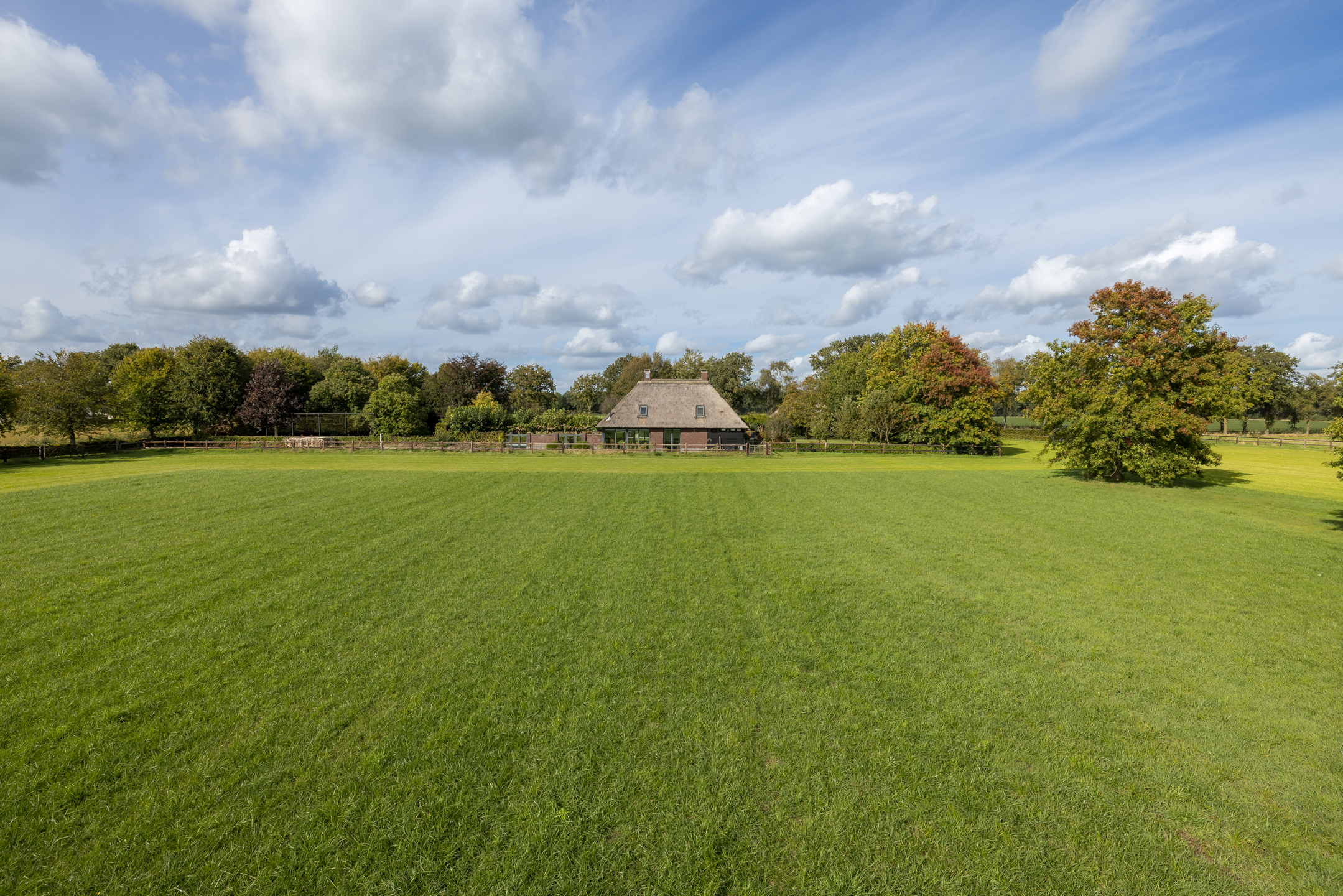 Rechts van de woning is een poort met een pad om bij het grasland te komen. Links van het kavel is een serieuze sloot (loop) waar altijd water aanwezig is, dit is gelegen aan het beekdal van het riviertje de "Leijgraaf". Aan de voorzijde van de woning, aan de overkant van de weg, ligt nog een perceel van 3.085 m² wat er ook bij hoort. Het totale terrein is 44.549 m²/ 4.45 hectare en het mag ook met alle grond verkocht worden. Wij bieden het echter nu aan met 14.550 m².