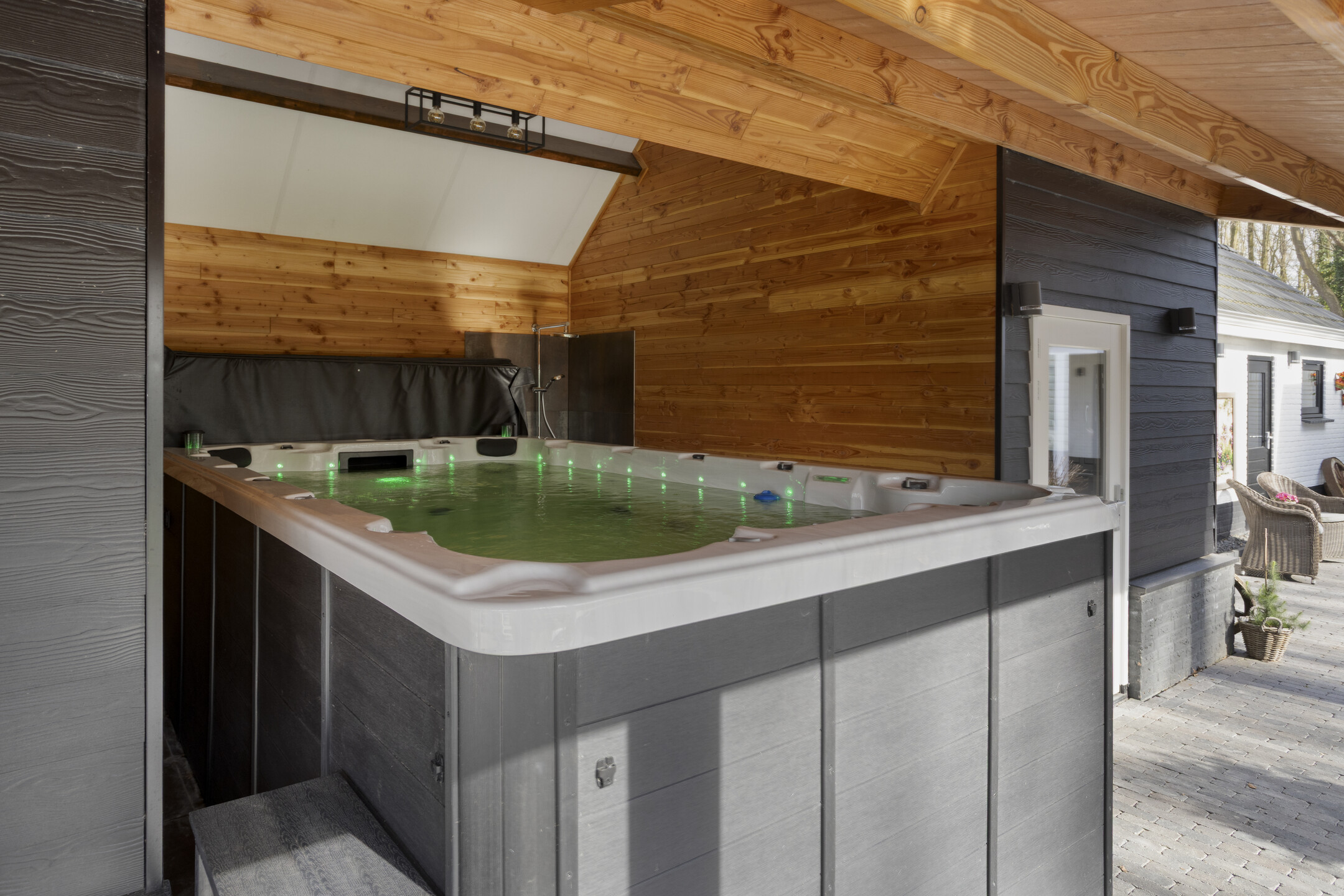 Zo is een kantoor / thuiswerkplek aanwezig, een open deel met luxe zwemspa welke achterblijft (vv. tegenstroming t.b.v. training of ontspanning), bargedeelte met bar, drankkoeling en separaat toilet, fitnessruimte met airconditioning en een (fietsen)berging met tussengroepenkast en bergzolder t.b.v. extra opslag. Mocht u toch een andere indeling of gebruik wensen is het bijgebouw uiteraard naar eigen visie in te delen.