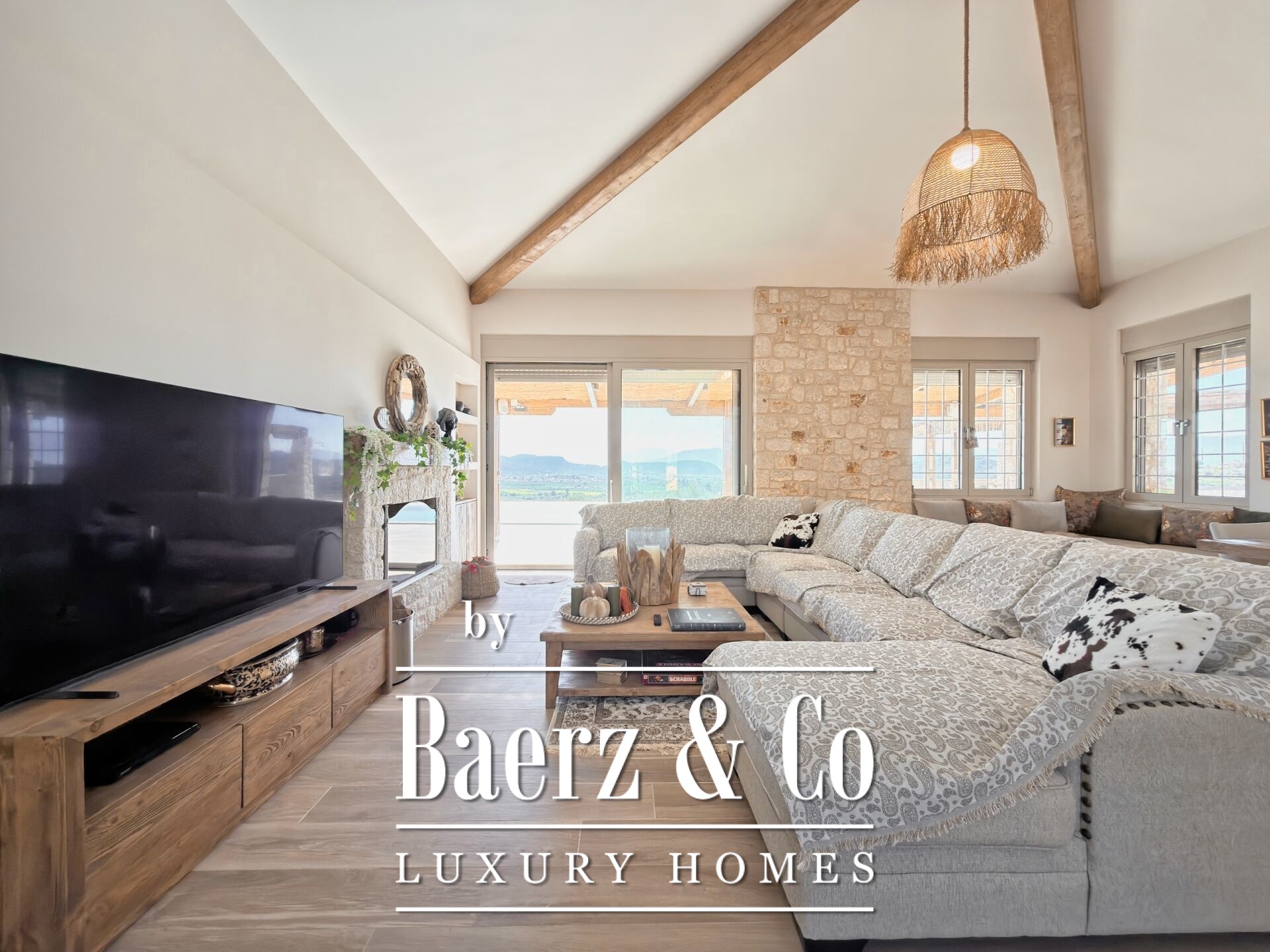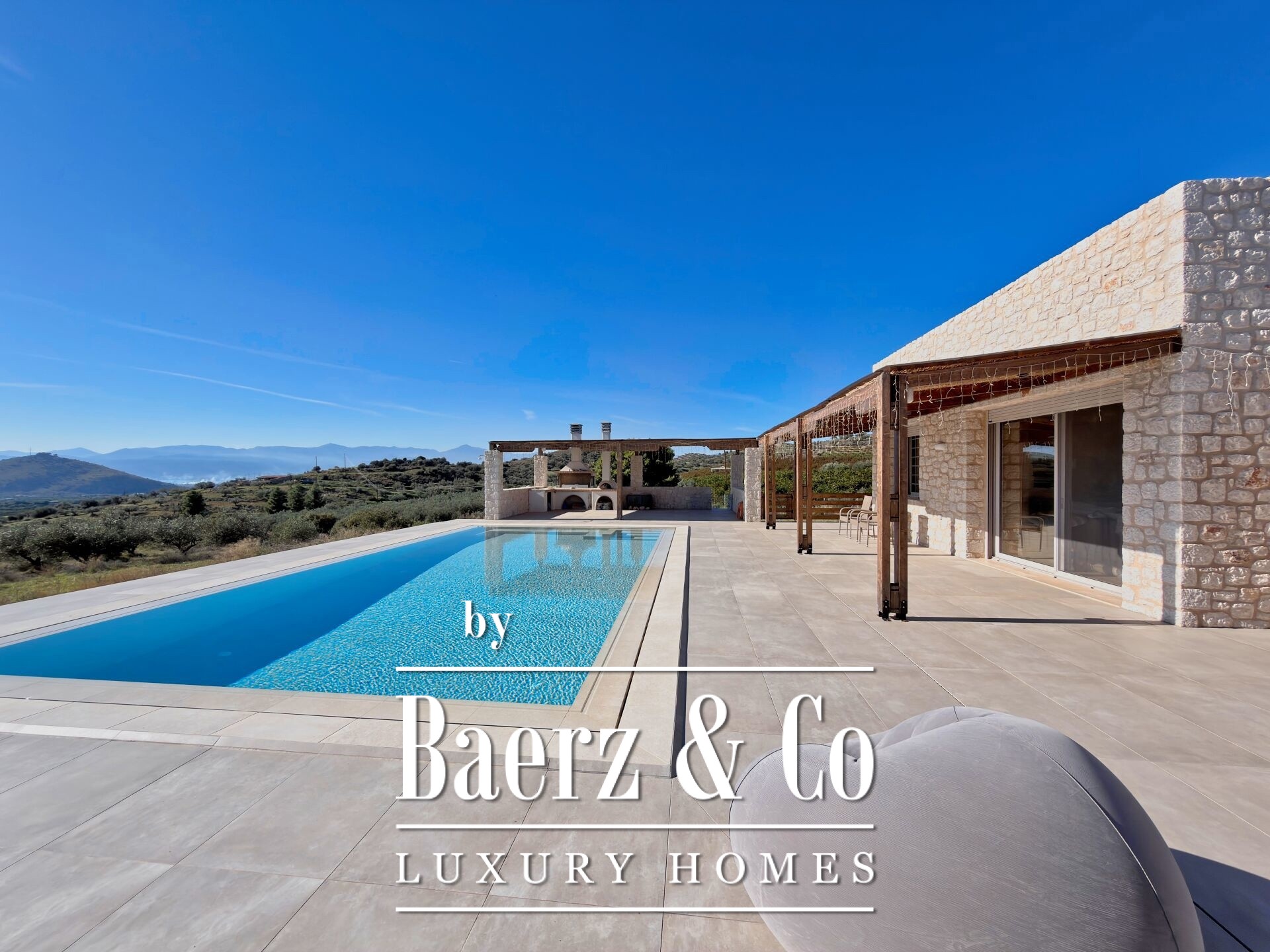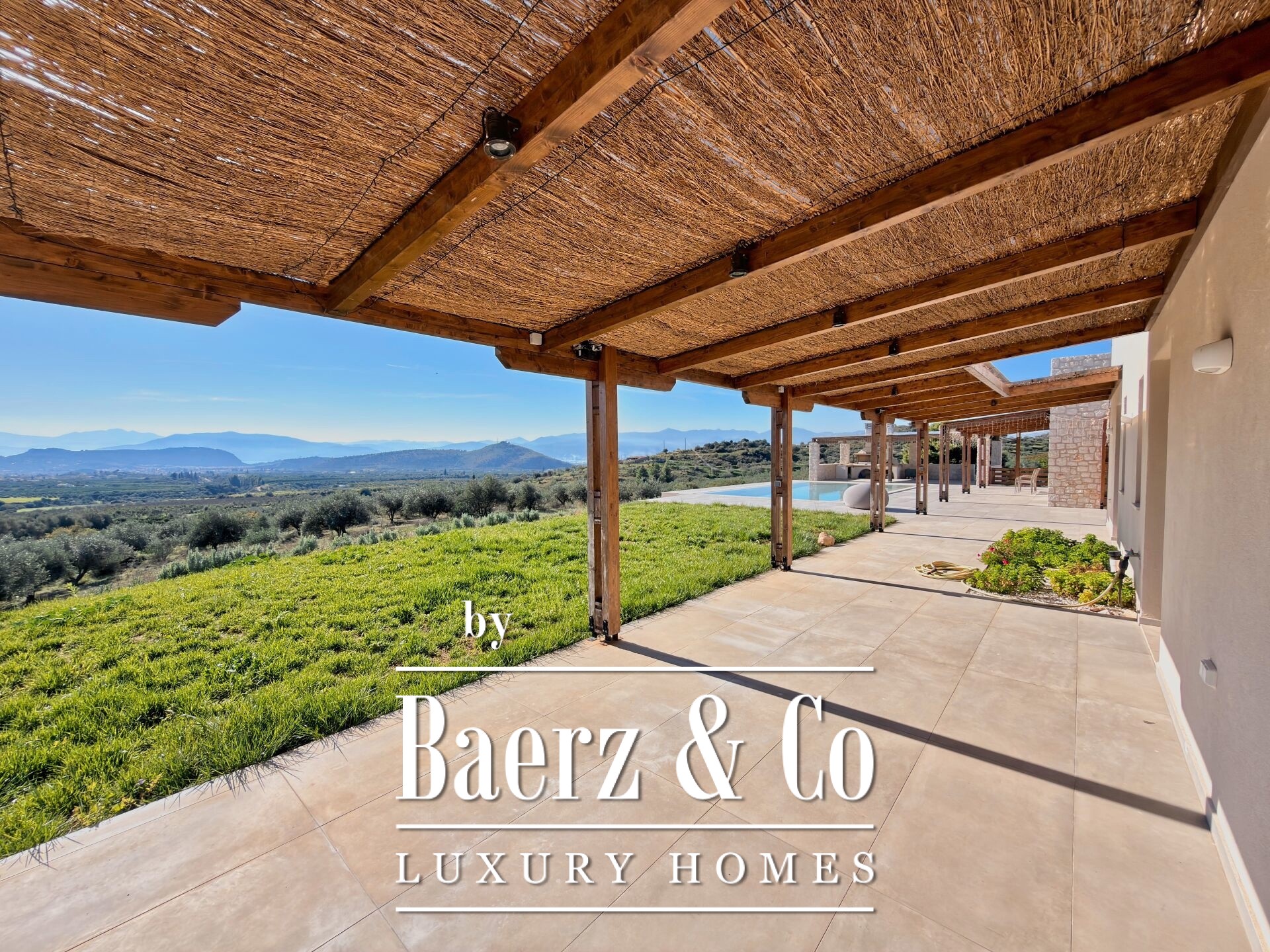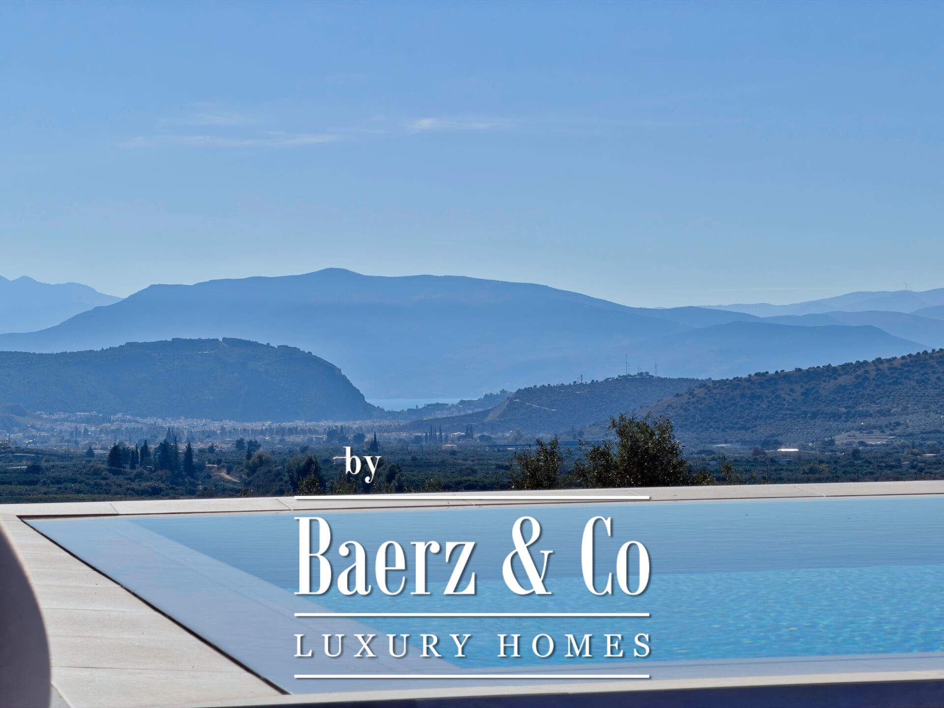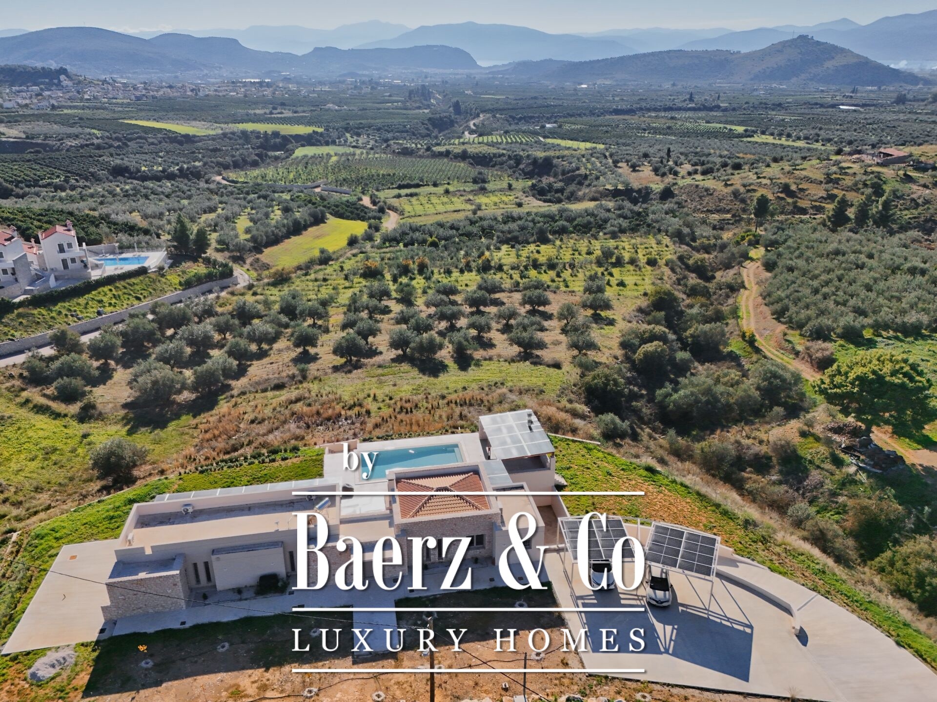 Luxe villa Nafplio biedt een zeldzame kans om te wonen in een eigentijdse residentie op een van de meest rustige en visueel indrukwekkende locaties van Griekenland. Deze gelijkvloerse woning van 232 m² bevindt zich op een royaal perceel van 5.255 m², waar het panoramisch uitzicht over Nafplio en de westelijke oriëntatie het natuurlijke licht diep tot in elke ruimte laat doordringen. Zo ontstaat een openheid die naadloos aansluit bij het omliggende landschap.