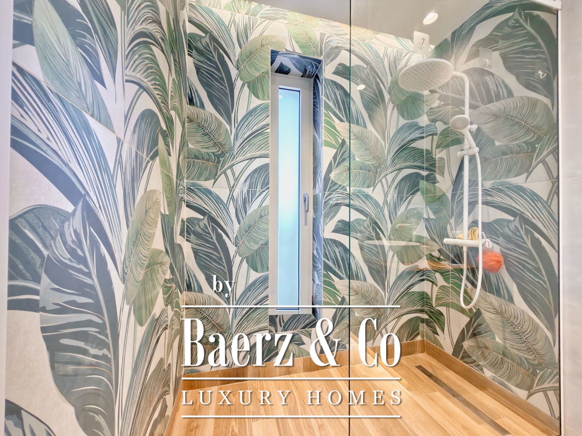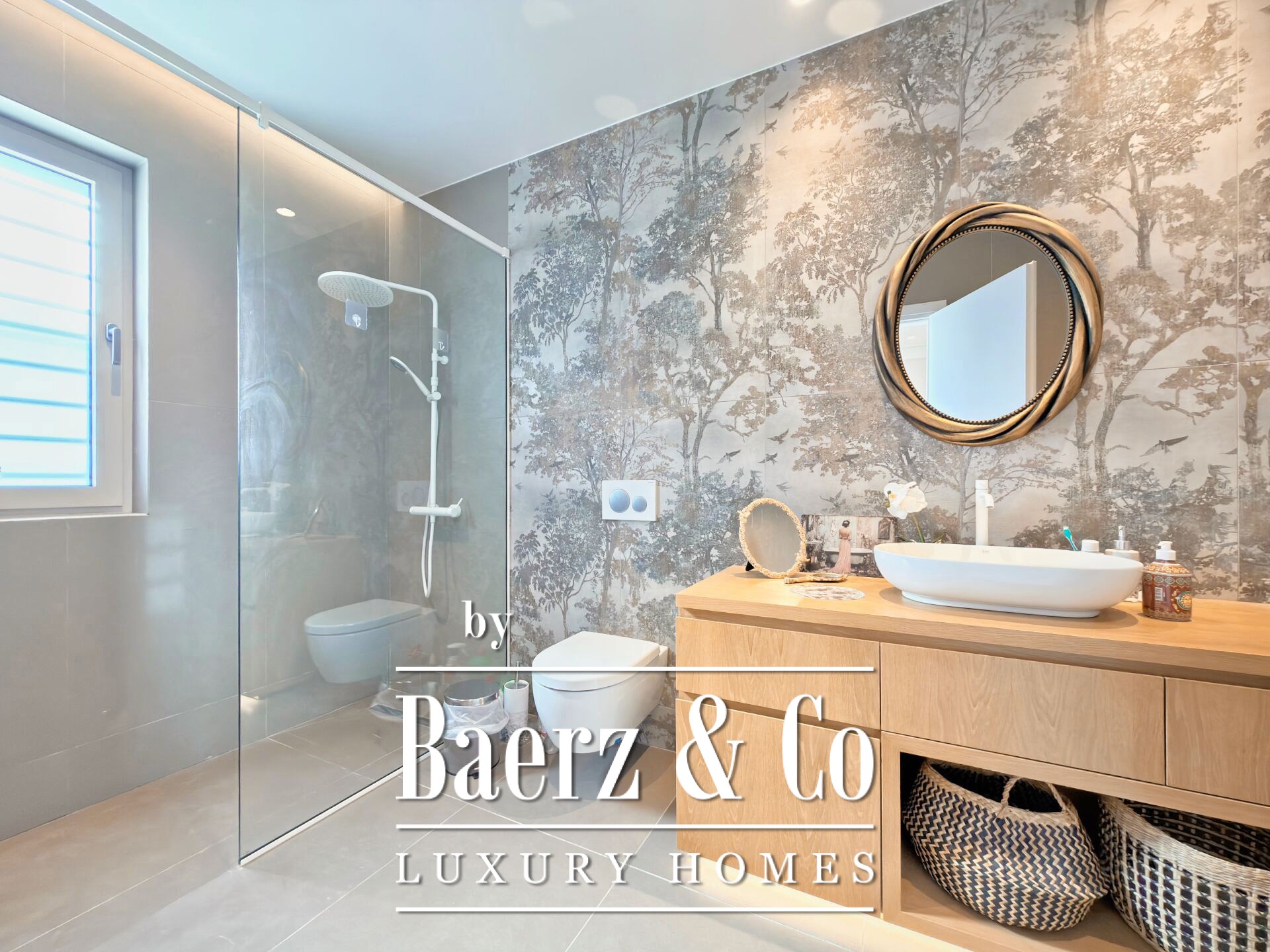 Bij binnenkomst vormt de royale woonkamer het hart van de woning, met een sfeervolle open haard die is opgebouwd uit authentiek natuursteen en doorloopt tot het exterieur. De open keuken, harmonieus verbonden met de leefruimte, combineert comfort met functionele helderheid. Drie ruime masterbedrooms en drie verfijnde badkamers, aangevuld met een extra gastentoilet, bieden optimaal wooncomfort en privacy voor zowel dagelijks gebruik als gastenverblijf. Door het hele huis zorgen dubbele beglazing, energiezuinige ramen, hoogwaardige isolatie en geavanceerde beveiliging voor rust en gemoedsrust.