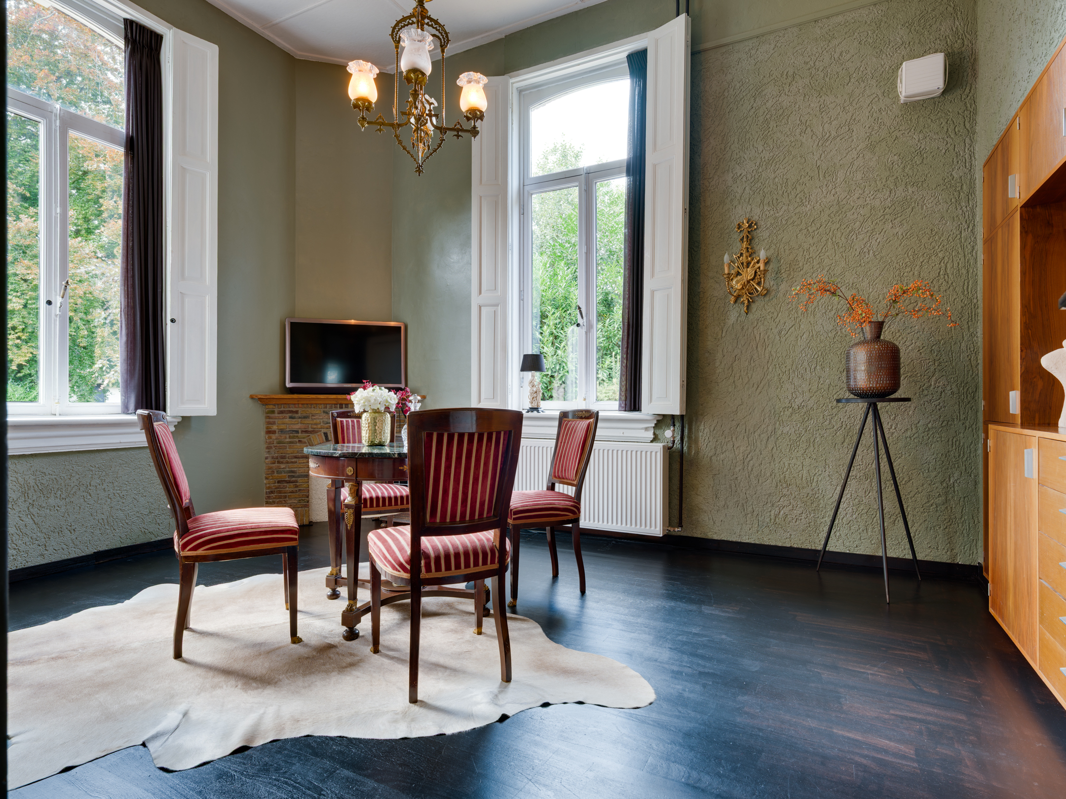 Deze villa ademt historie. Van de neo-renaissancestijl en rijke ornamenten tot de verhalen die door de jaren heen zijn ontstaan. Zo is het pand na de oorlog zelfs nog gevorderd door het Ministerie van Binnenlandse Zaken, en doen er verhalen de ronde over bewoning door zowel bezetters als bevrijders. De kap is destijds verloren gegaan, maar er ligt inmiddels een prachtig historisch verantwoord ontwerp klaar voor herstel van de tweede verdieping.