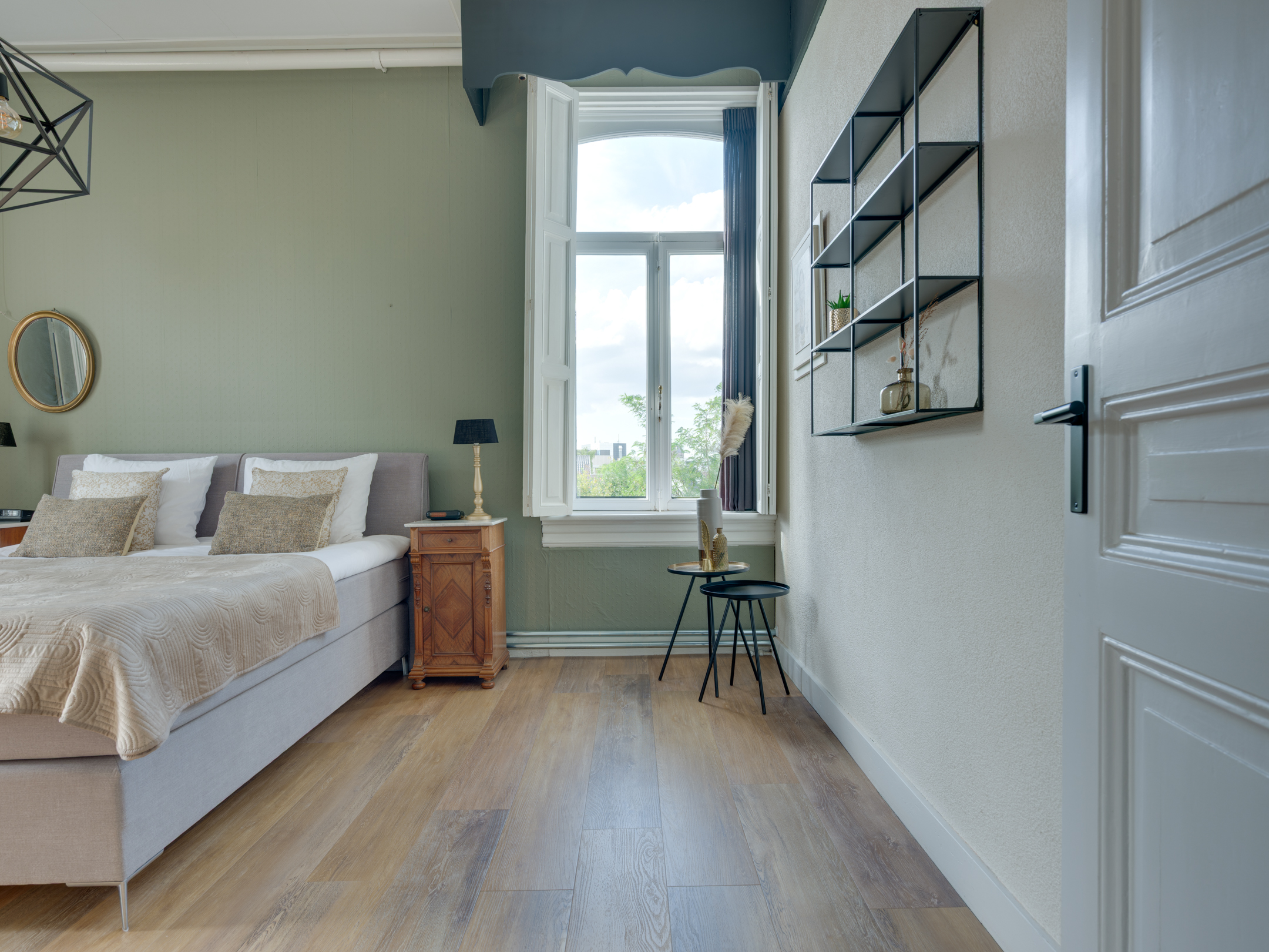 - Vijf royaal bemeten slaapkamers, één met dakterras en uitzicht op de tuin;
