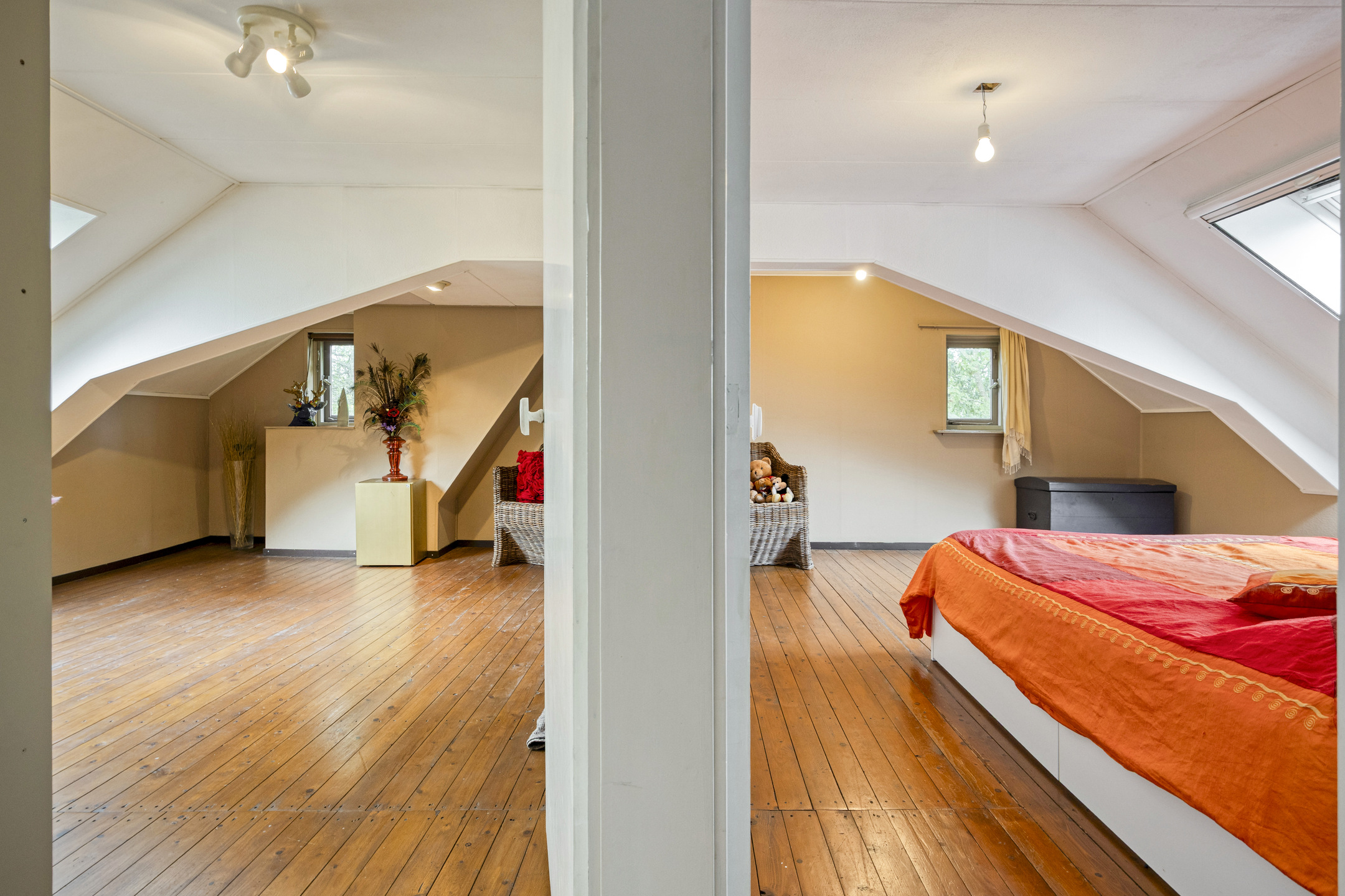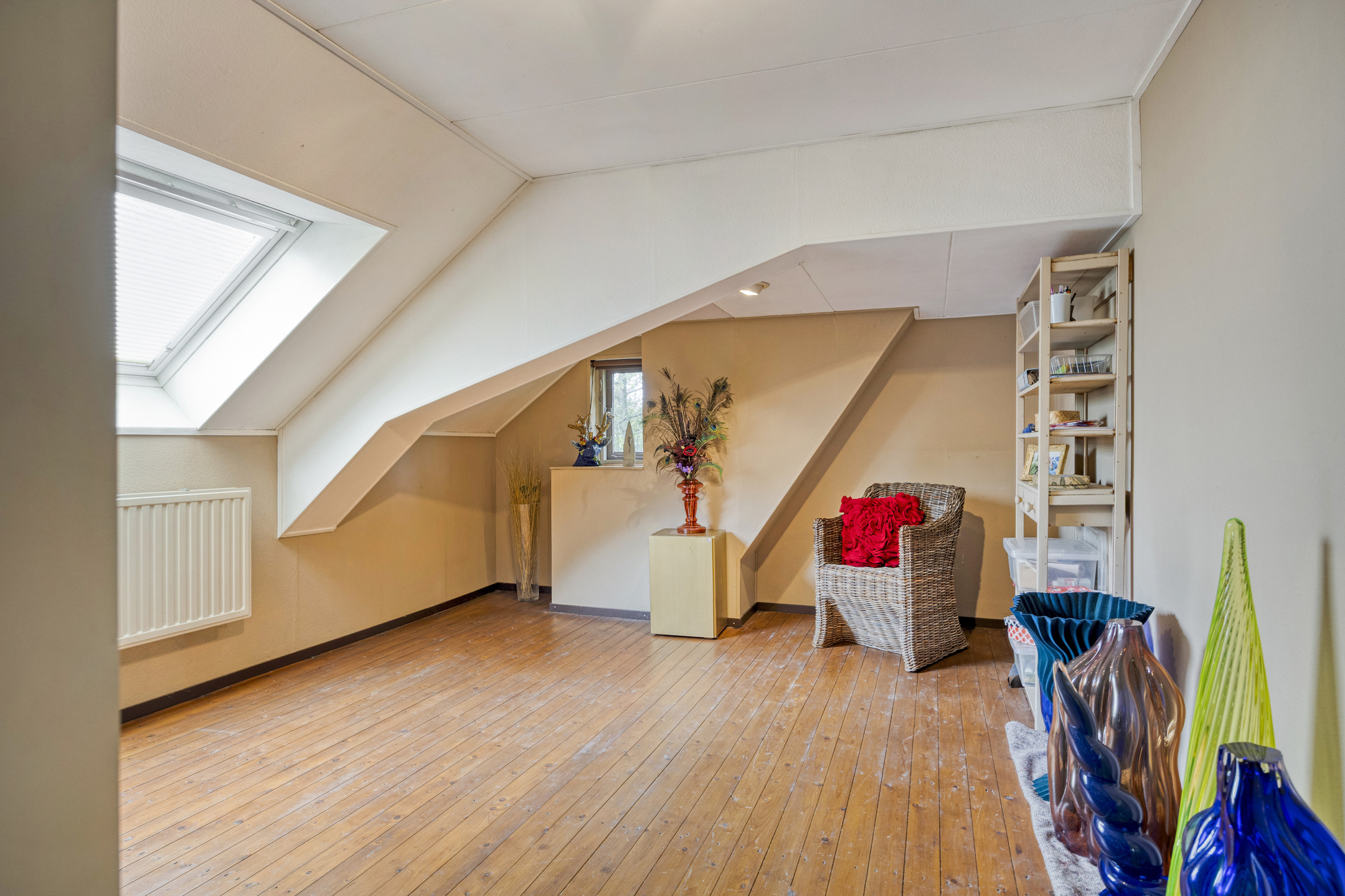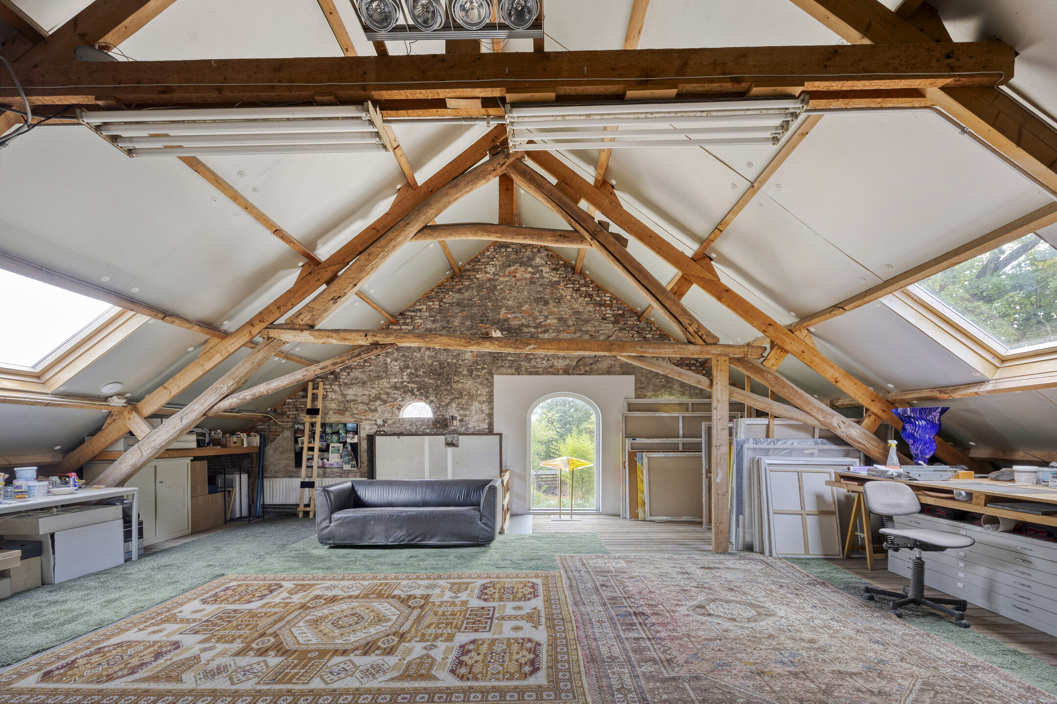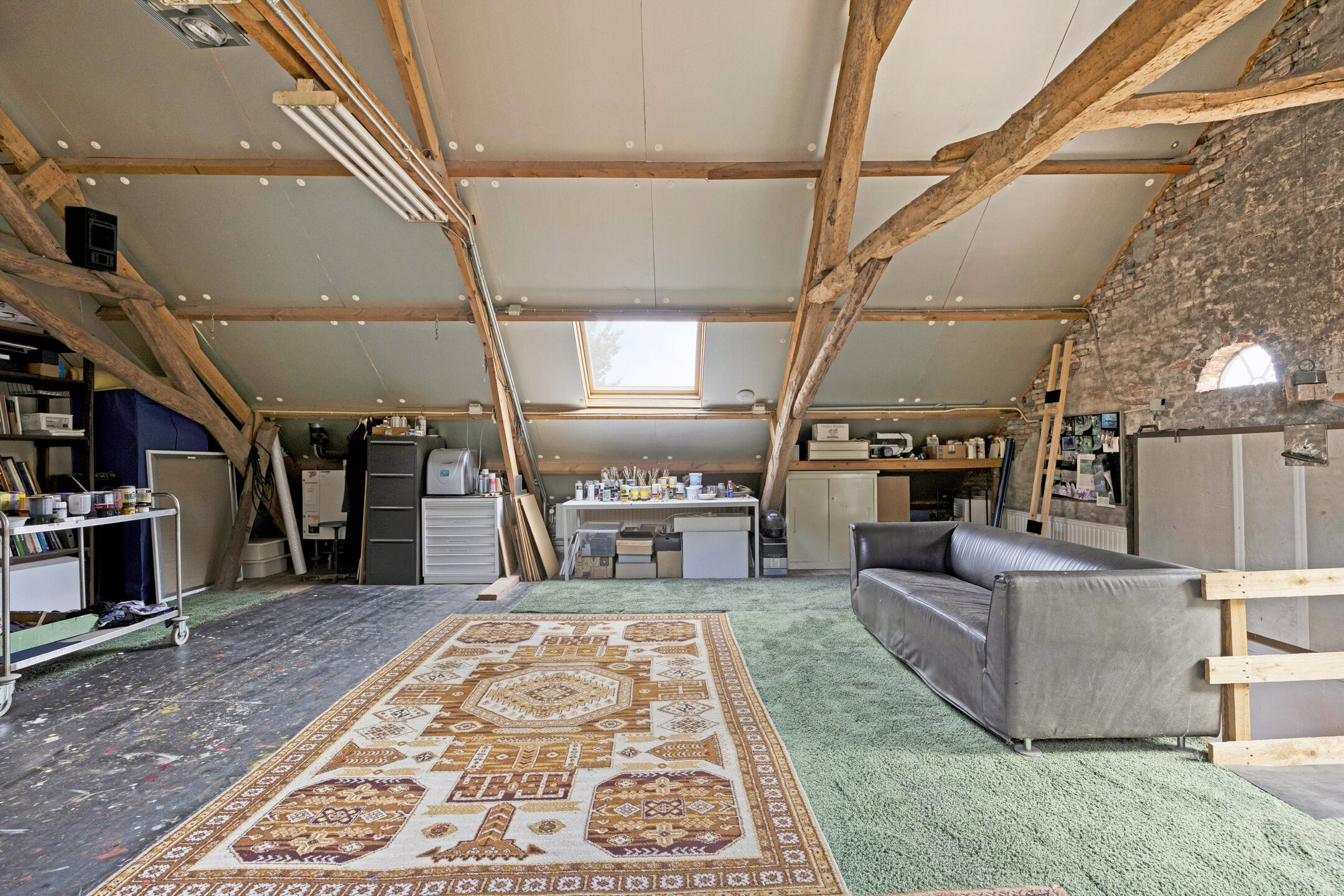multifunctionele ruimte boven het atelier (ca. 63 m²), in te richten voor opslag / kantoor / hobbyruimte, maar ook eenvoudig te splitsen naar meerdere slaapkamers.