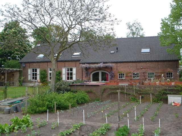 Aangelegd perceel rondom, vv. weide, fruitbomentuin, moestuin, houten veranda, royale oprit, terras bestraat met gebakken klinkers, oprijlaan aangelegd middels kinderkoppen.